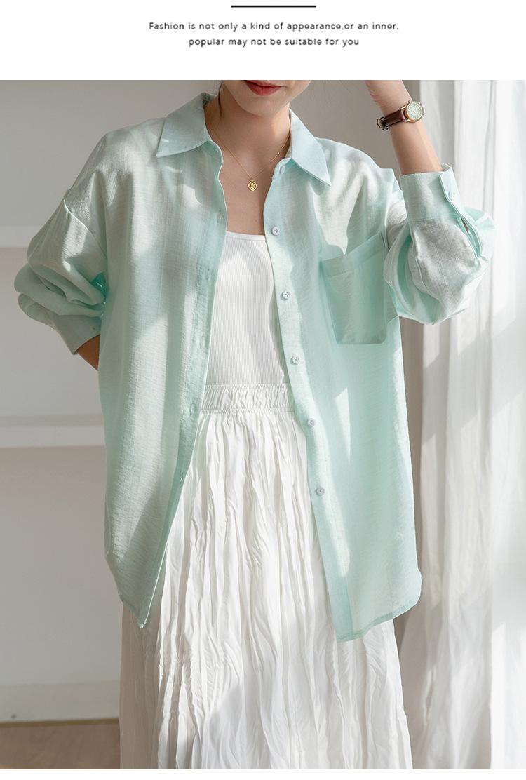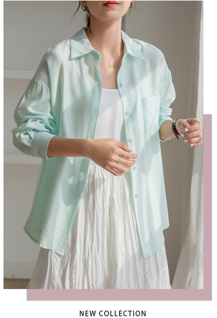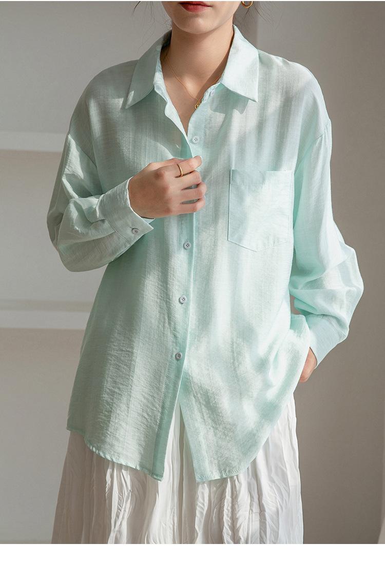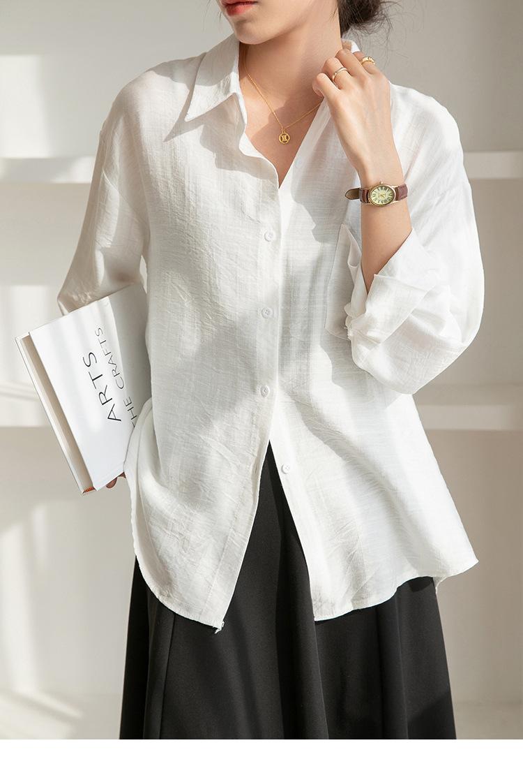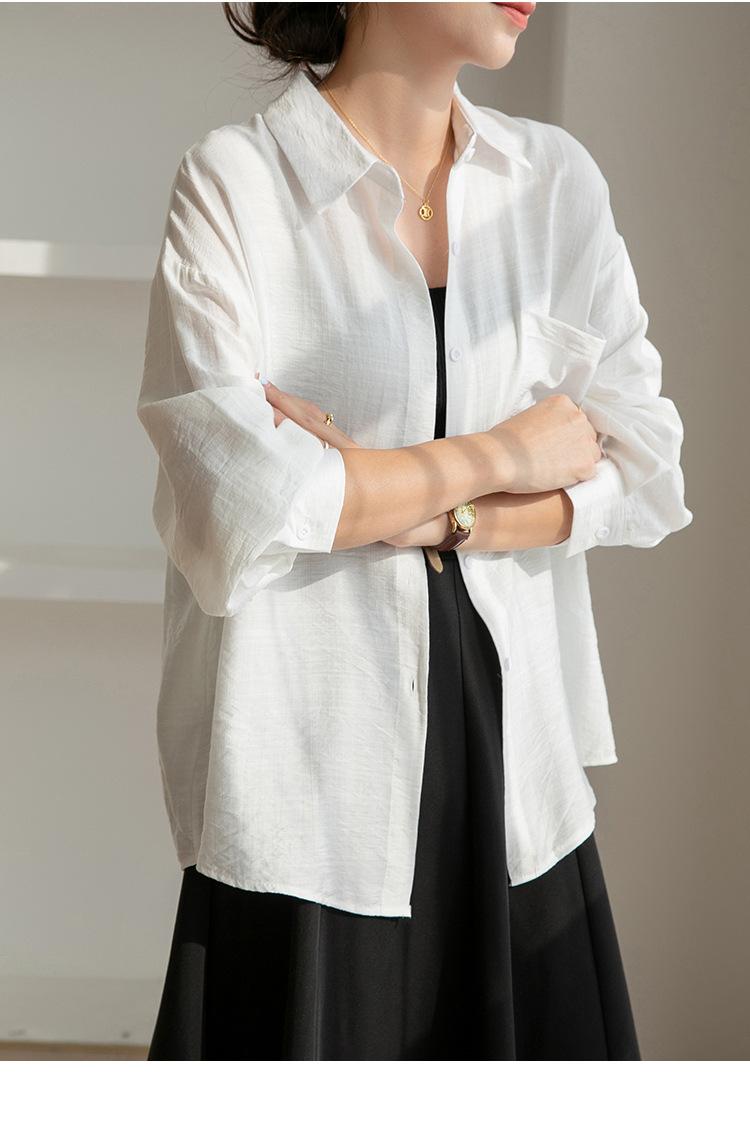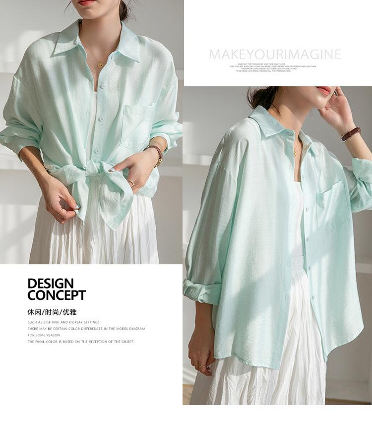 Camisa de Protección Solar Tencel para Mujer Diseño de Verano 2025 Nicho Camisa Delgada de Gasa Top Holgado Drapeado Chaqueta
