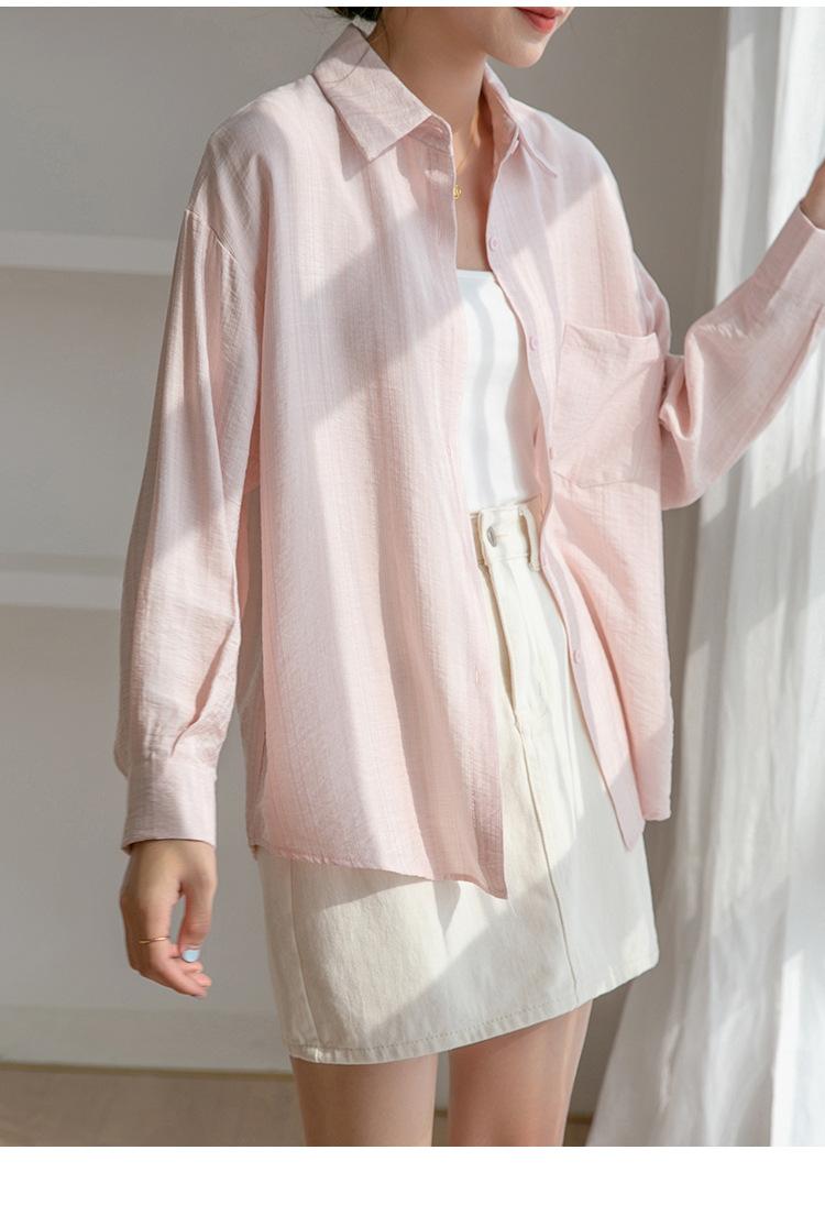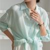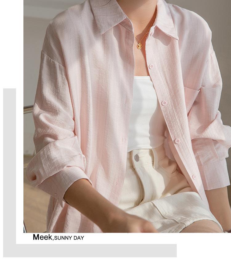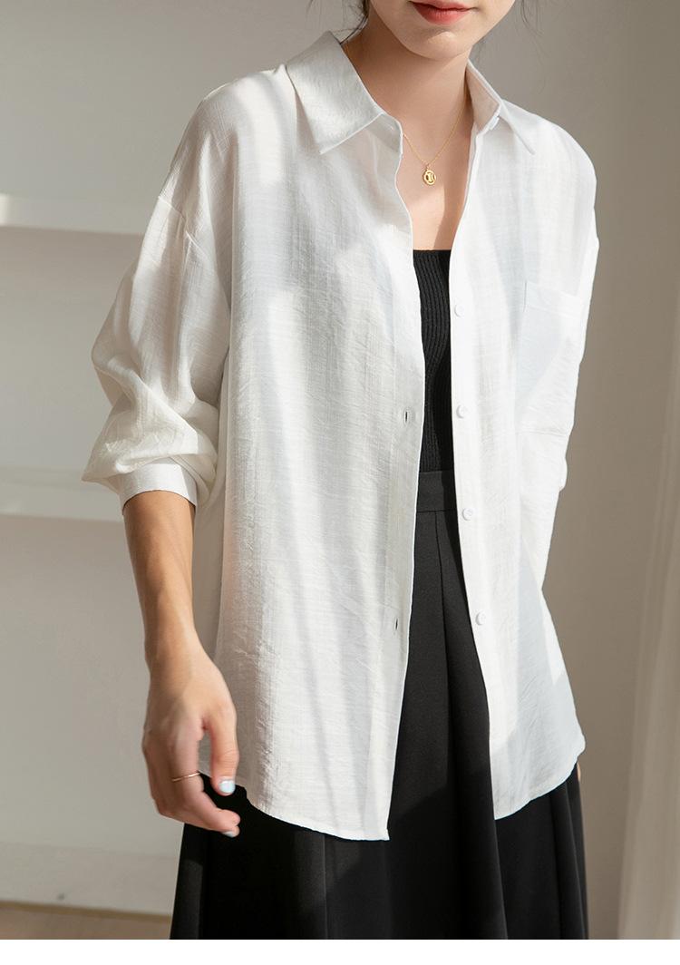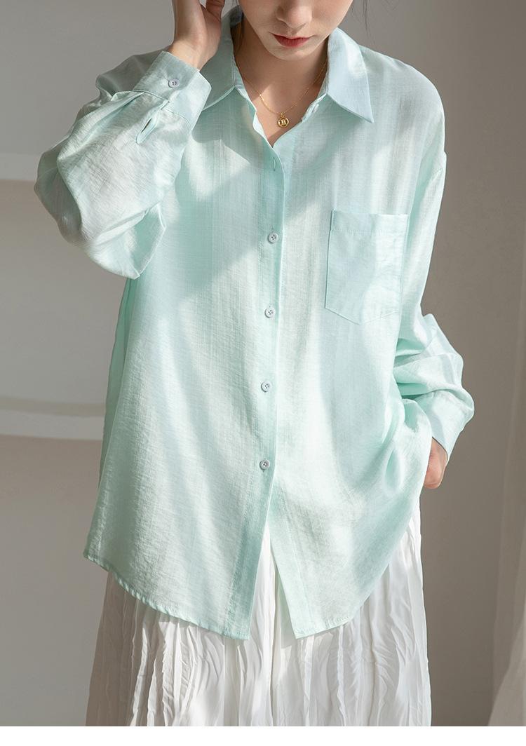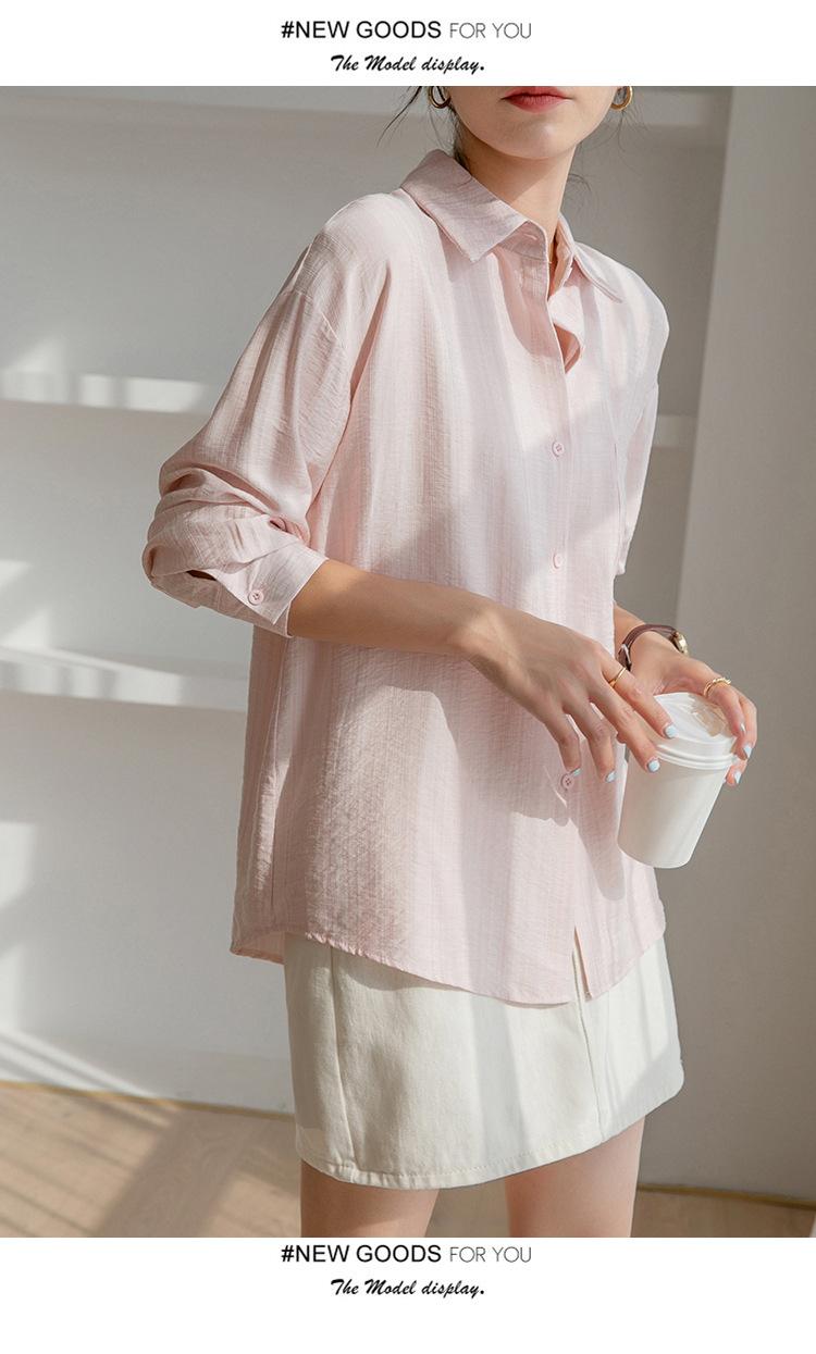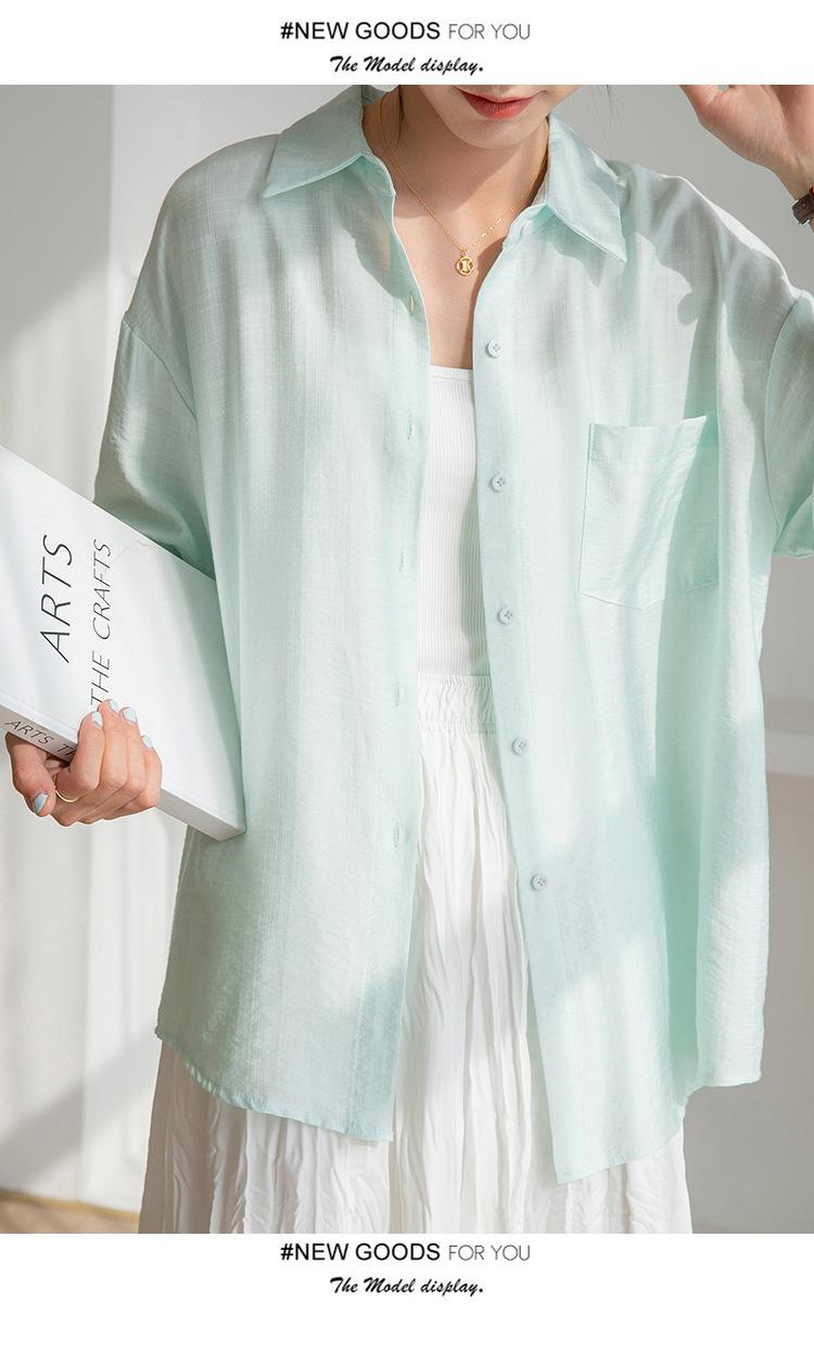 Camisa de Protección Solar Tencel para Mujer Diseño de Verano 2025 Nicho Camisa Delgada de Gasa Top Holgado Drapeado Chaqueta