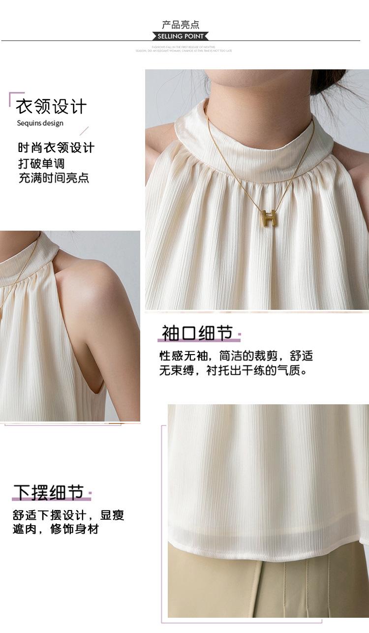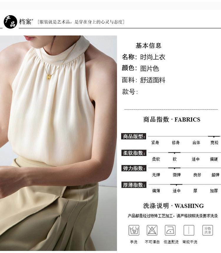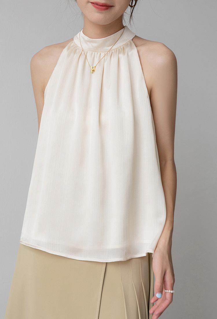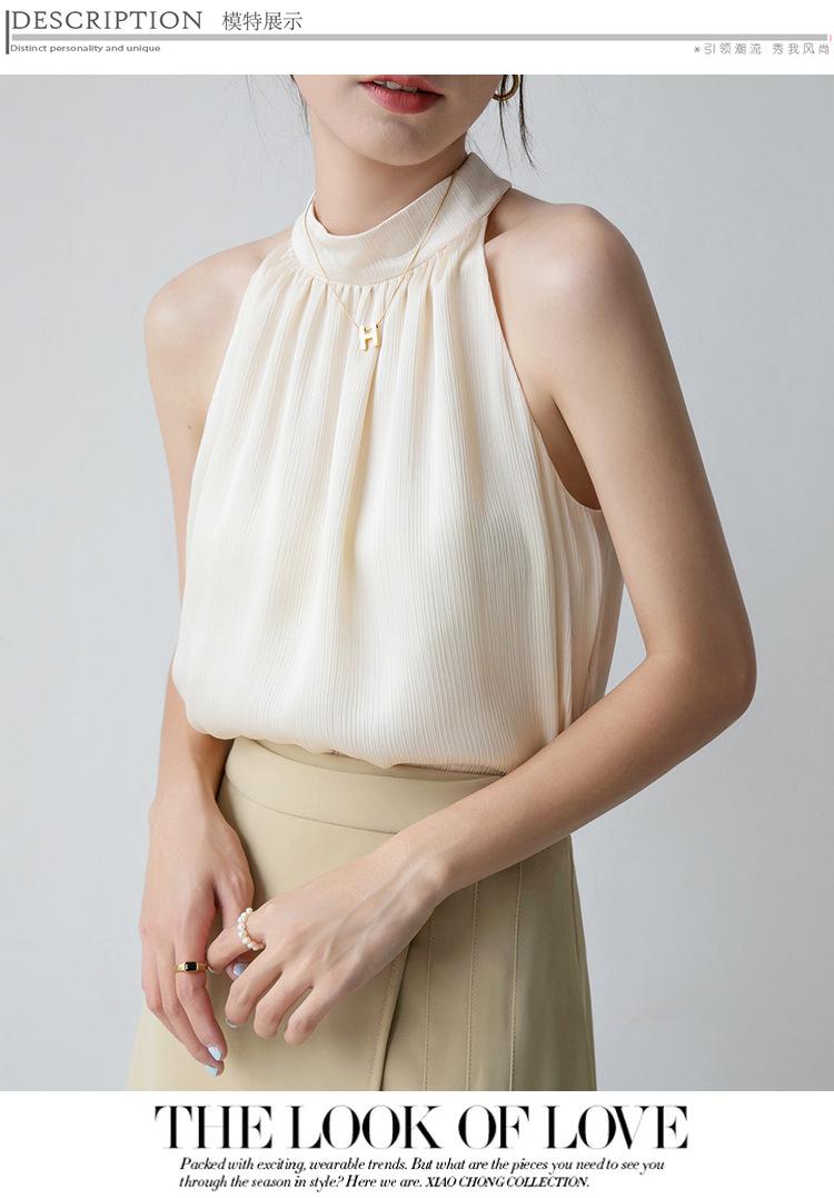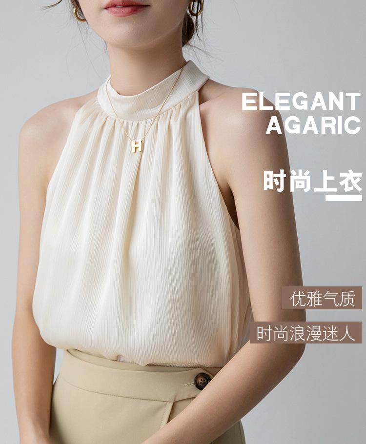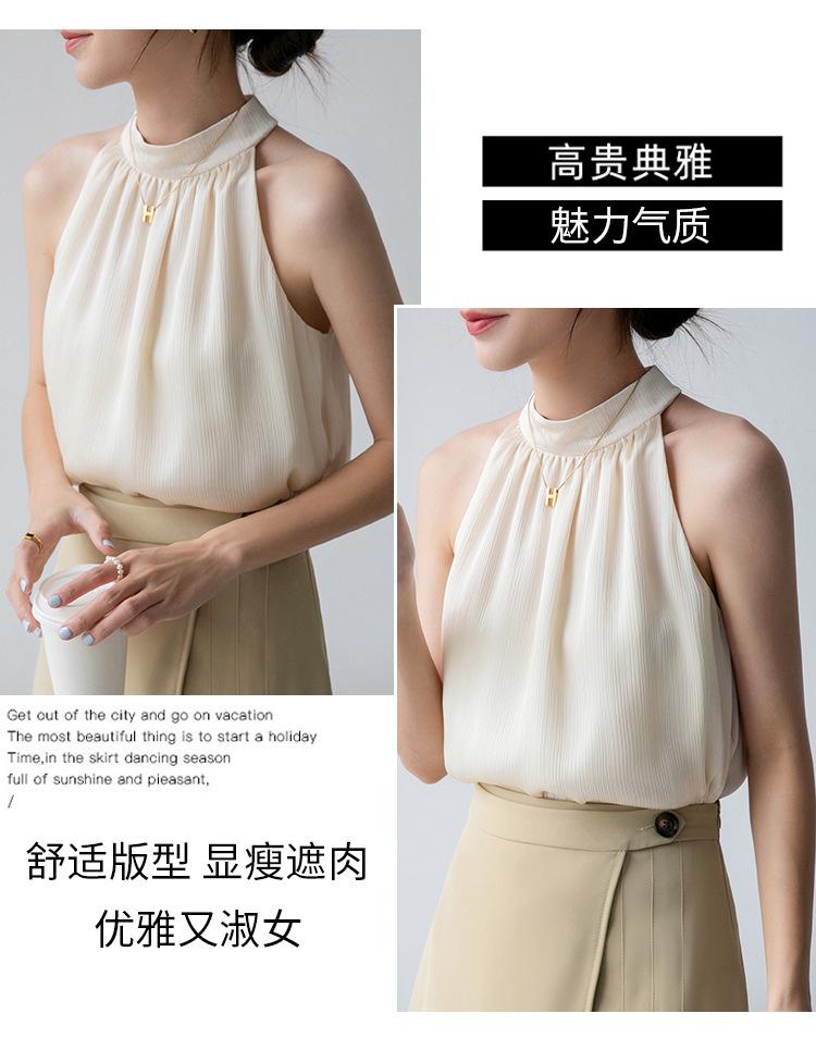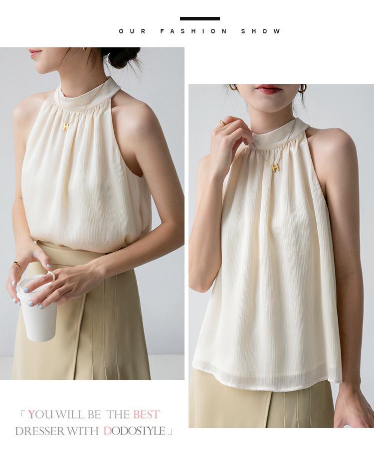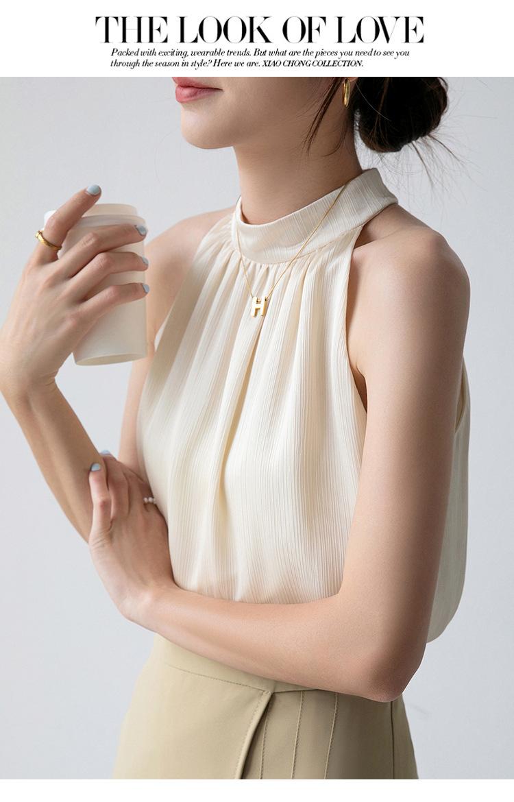 Camisa sin mangas para mujer con cuello colgante para verano, nuevo estilo francés, chaleco pequeño, elegante, ajustado, sexy, chic, color albaricoque, sin espalda, ropa con tirantes