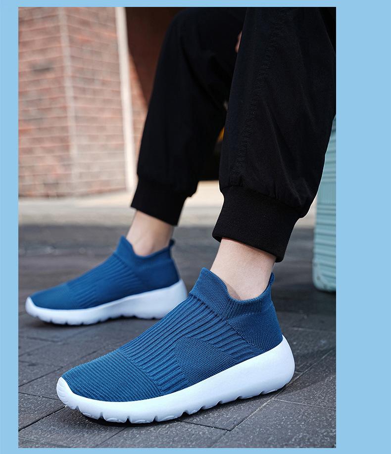 Calcetines tejidos voladores para hombre, zapatillas sin cordones, de malla, de suela gruesa, para verano