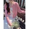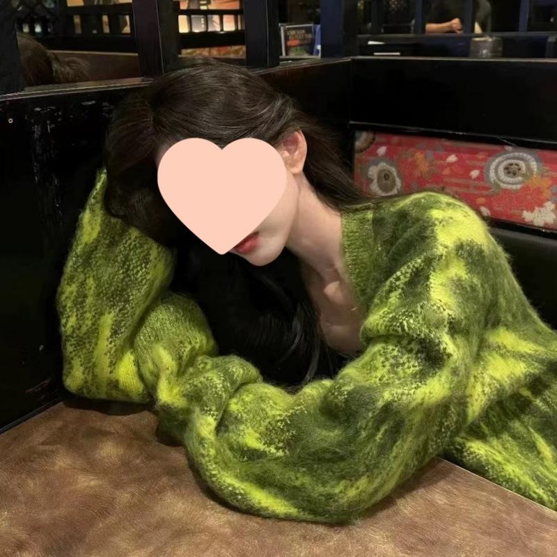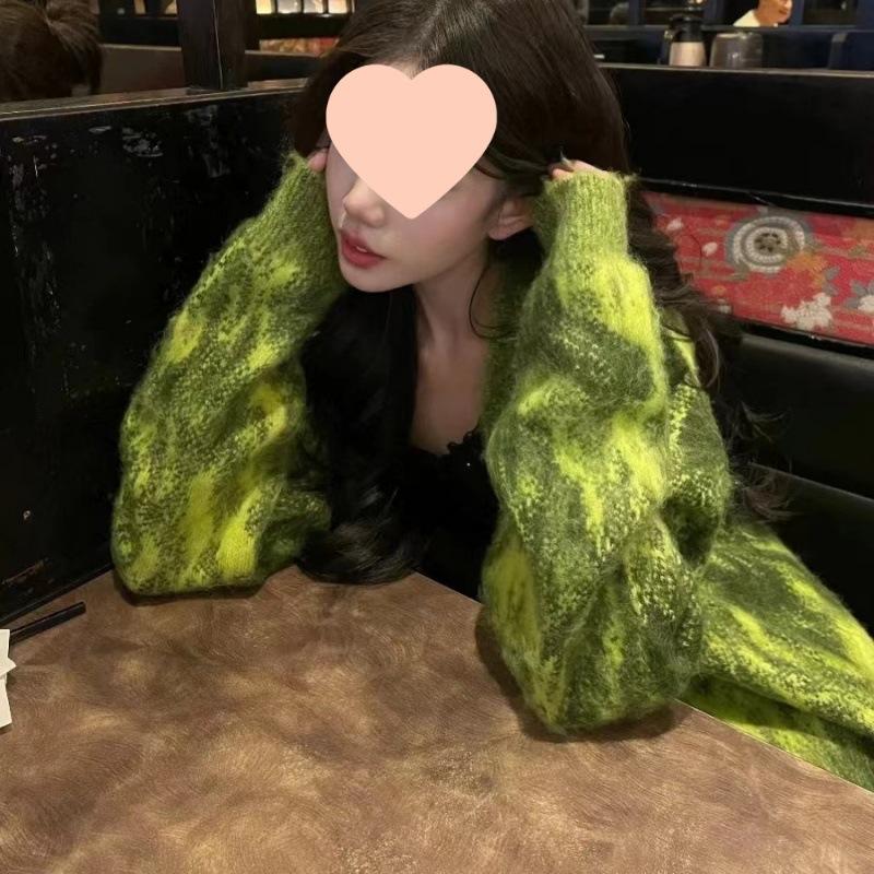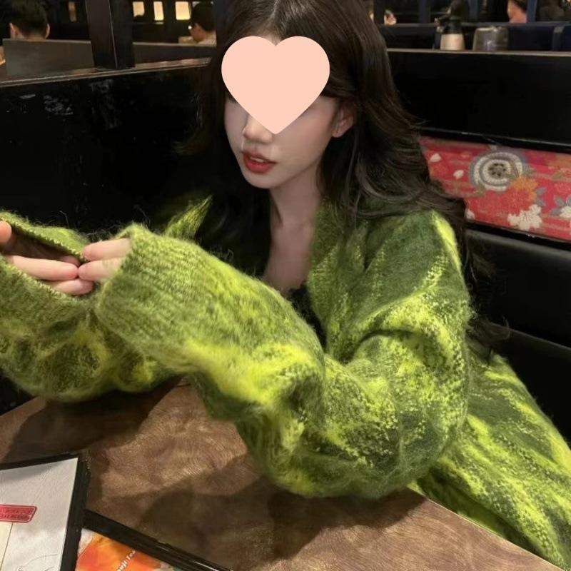 Cárdigan de punto verde teñido anudado de moda para mujer, chaqueta suéter holgada con cuello en V, diseño de nicho, invierno 2024