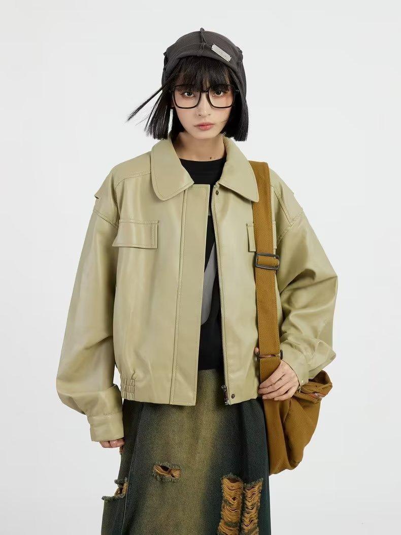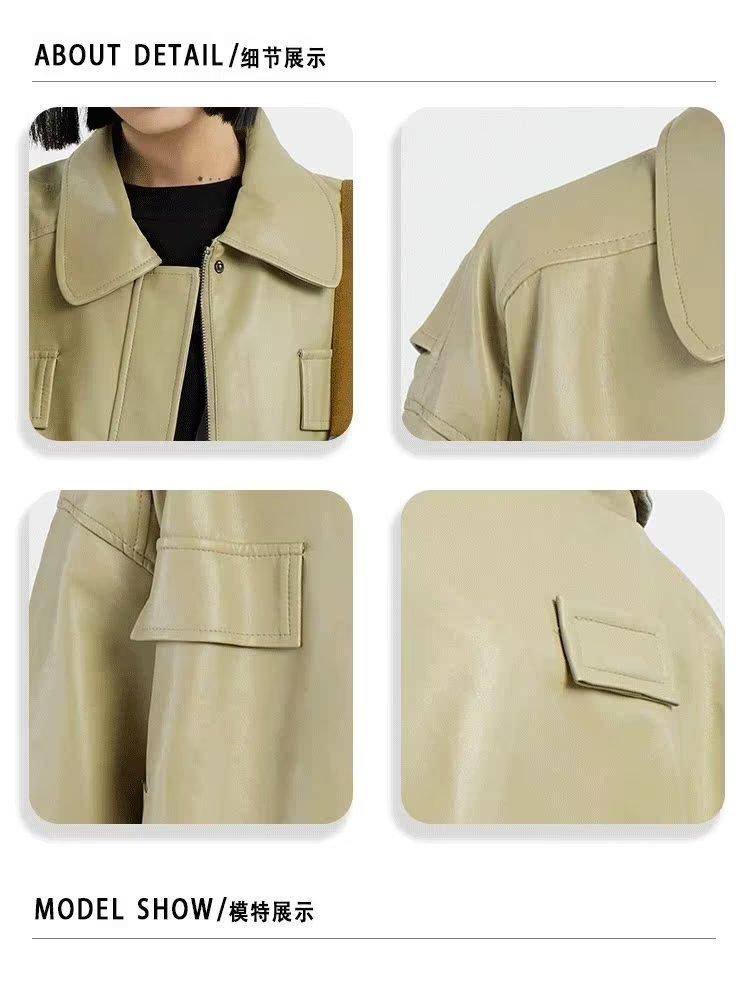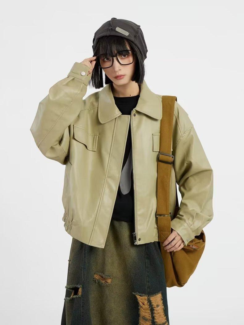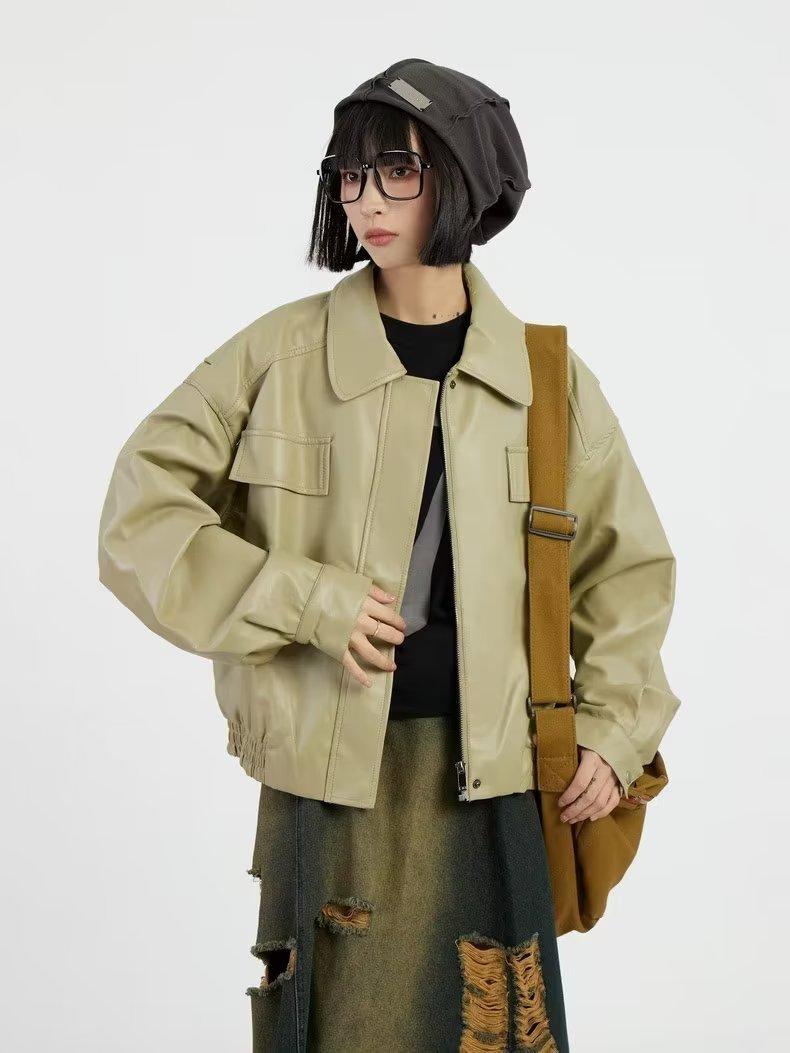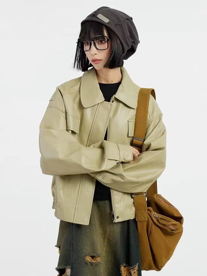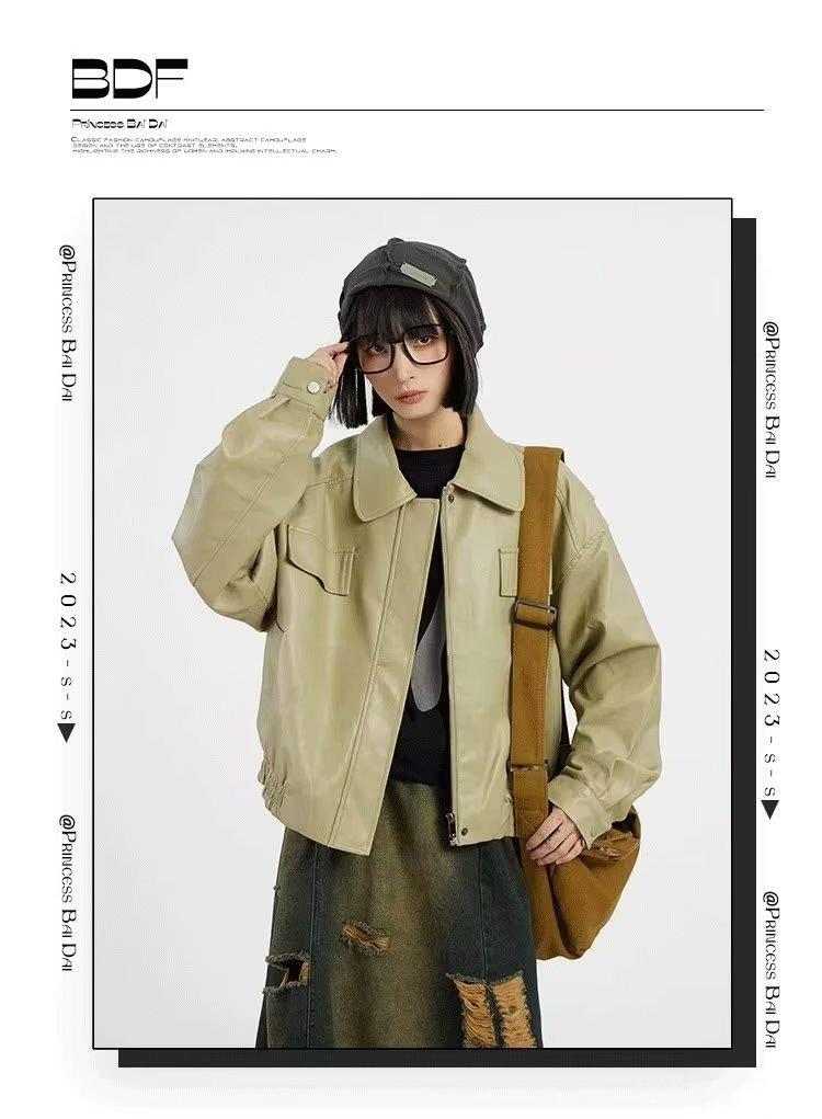 Chaqueta corta de cuero PU estilo motociclista retro americano para mujer, nueva chaqueta de cuero informal holgada y adelgazante para primavera y otoño.