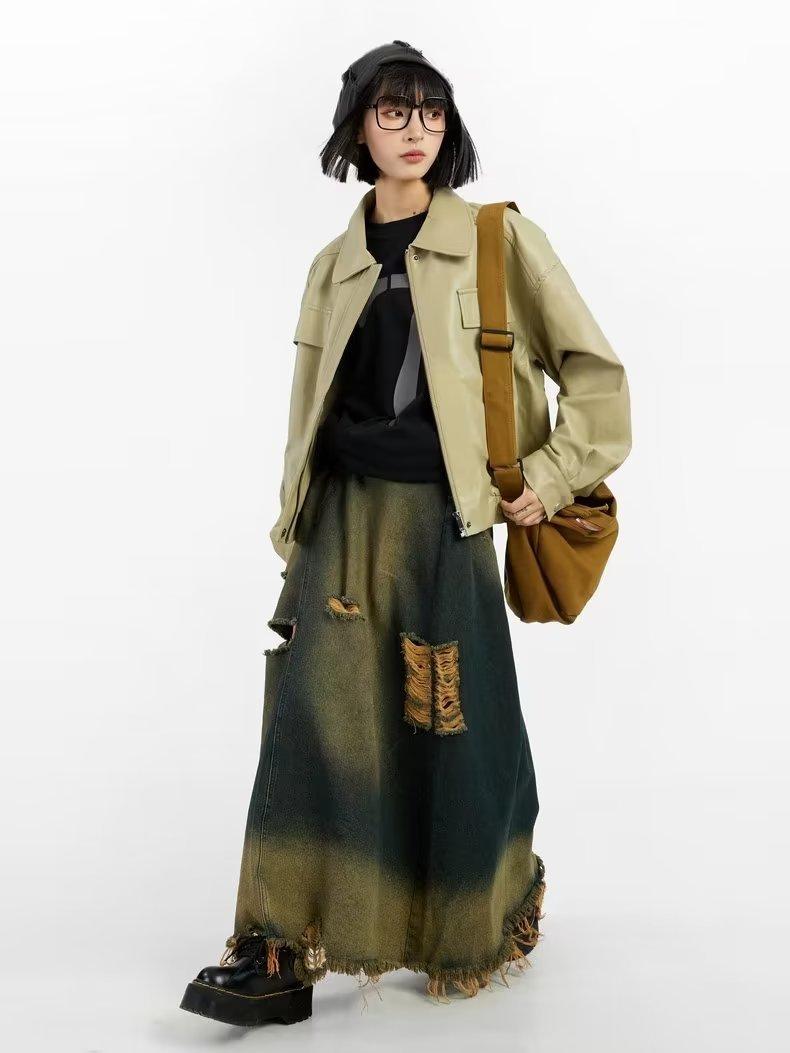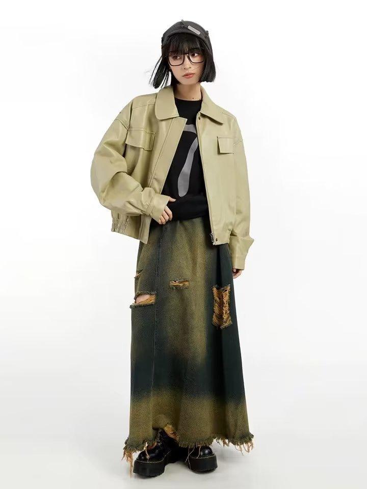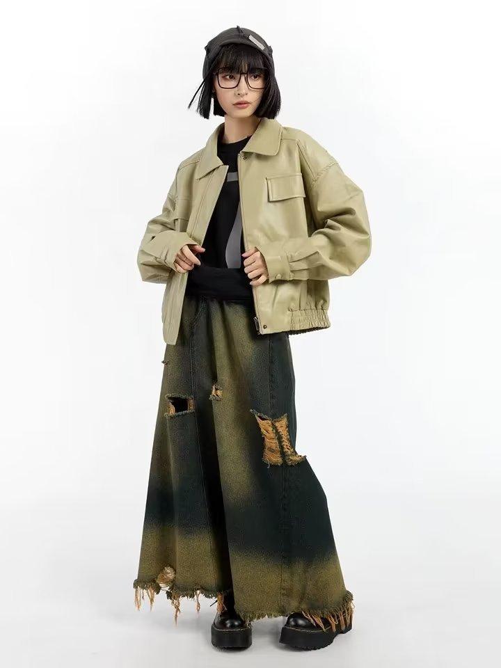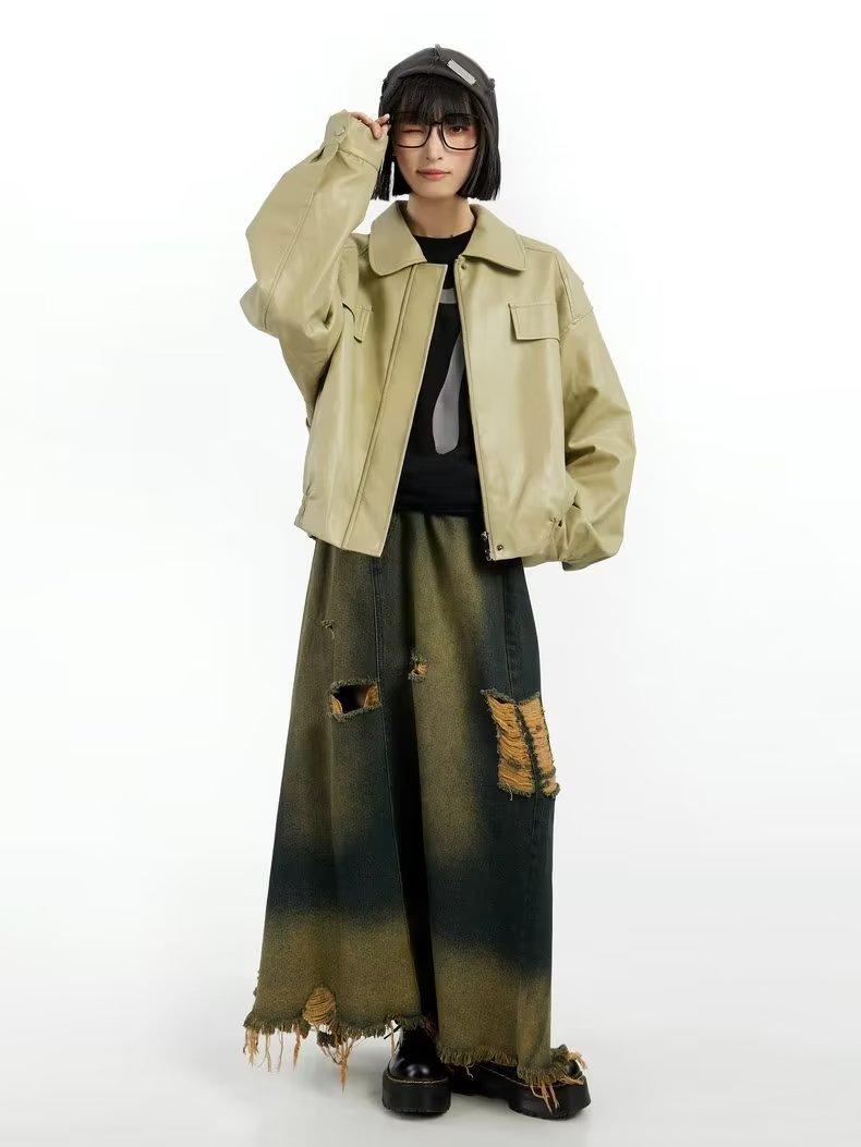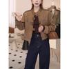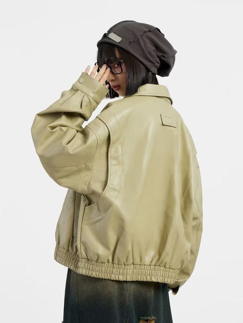 Chaqueta corta de cuero PU estilo motociclista retro americano para mujer, nueva chaqueta de cuero informal holgada y adelgazante para primavera y otoño.