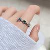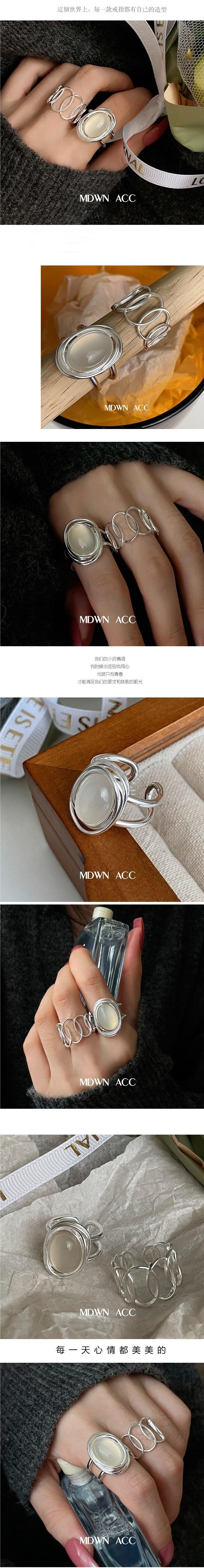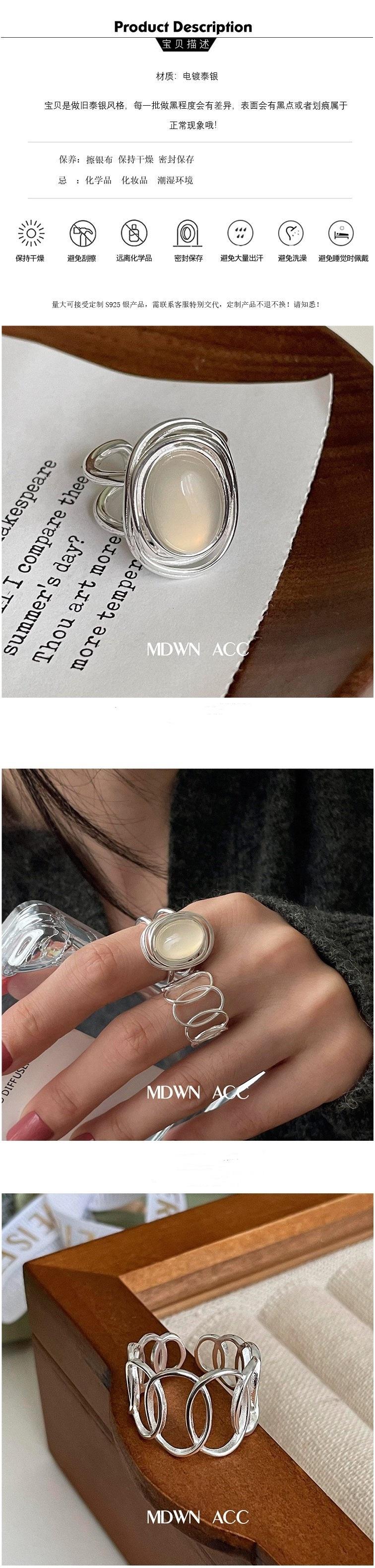 Anillo Geométrico de Círculo Hueco Moda Femenina Distintivo Oval Apilado Zircón Plata S925 Anillo Abierto para Dedo Comida Anillo para Dedo Marea