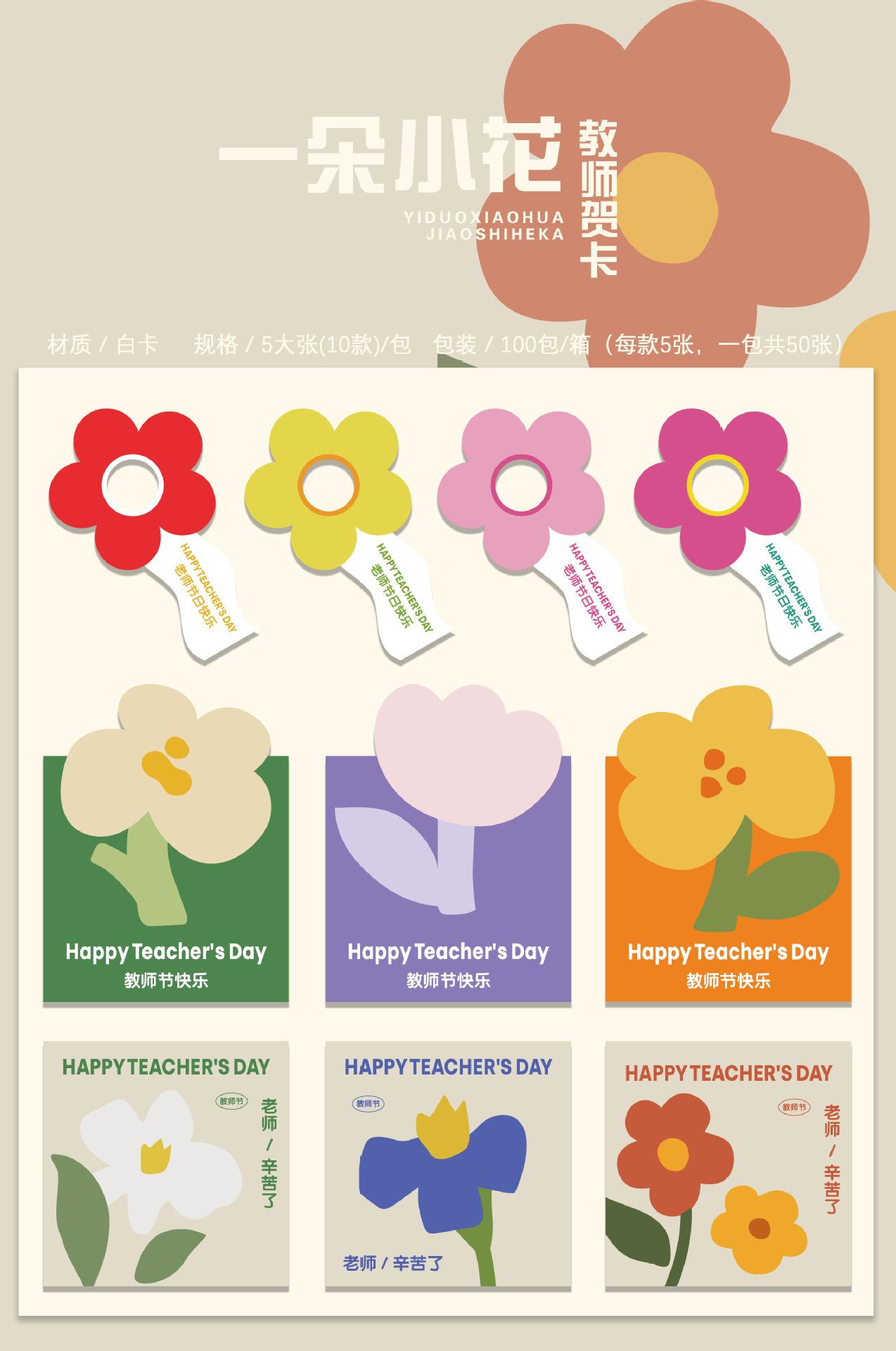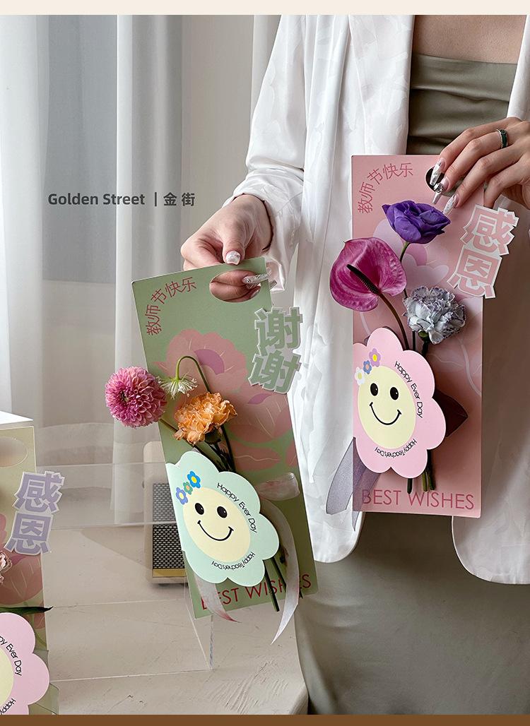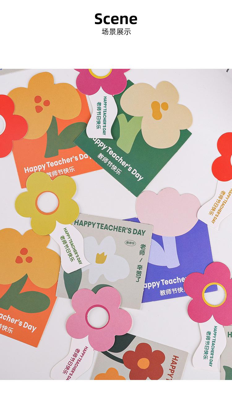 Tarjeta de felicitación con ramo simple de dibujos animados para el Día del Maestro, etiqueta de agradecimiento, caja de regalo de pastel amargo Enxin, tarjeta de felicitación, tarjeta de mensaje