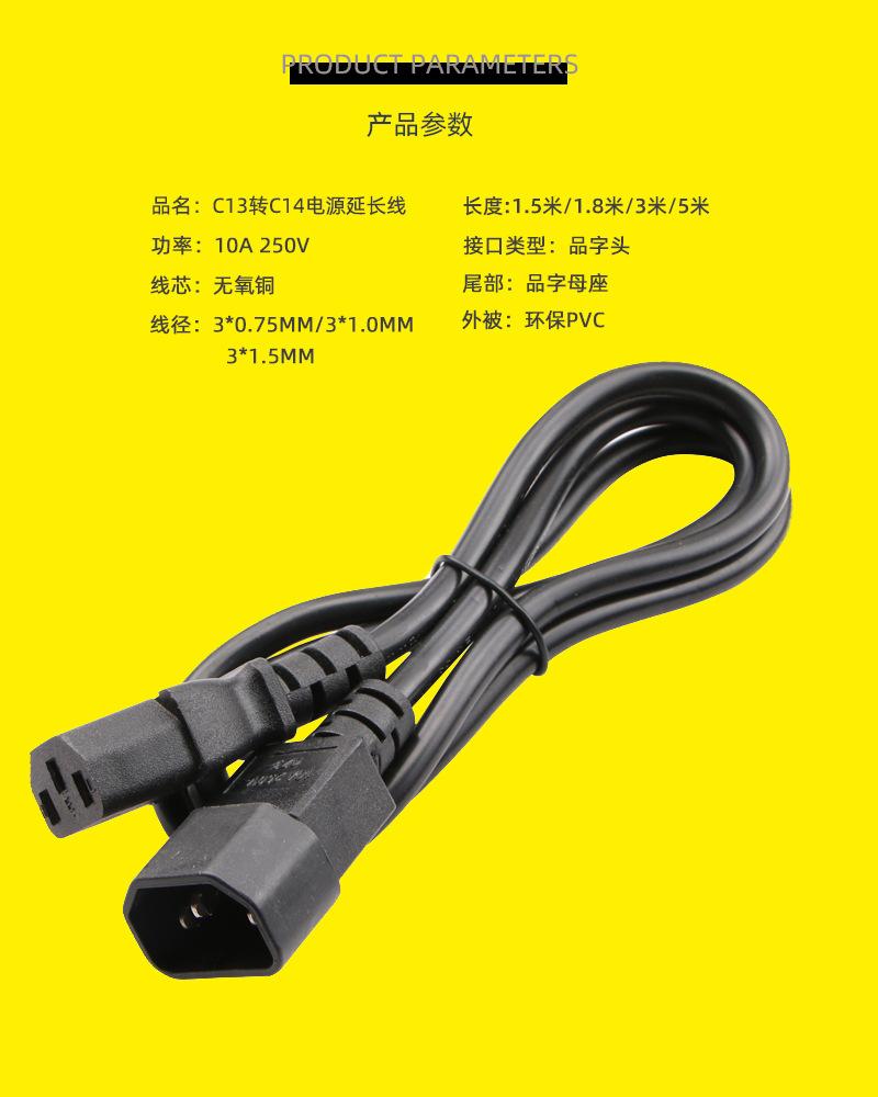 Cable de alimentación de servidor PDU/UPS Cable de extensión de alimentación C13 a C14 Cable de chasis principal de computadora de centro de datos Cable de cobre sin oxígeno