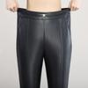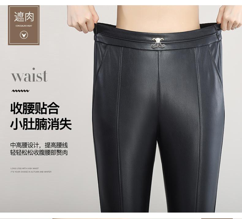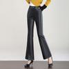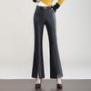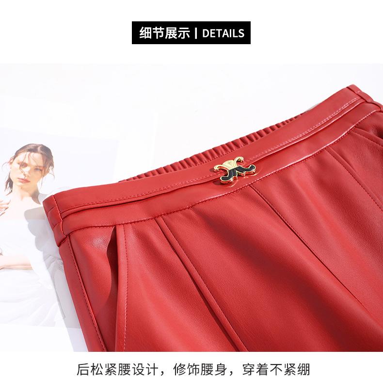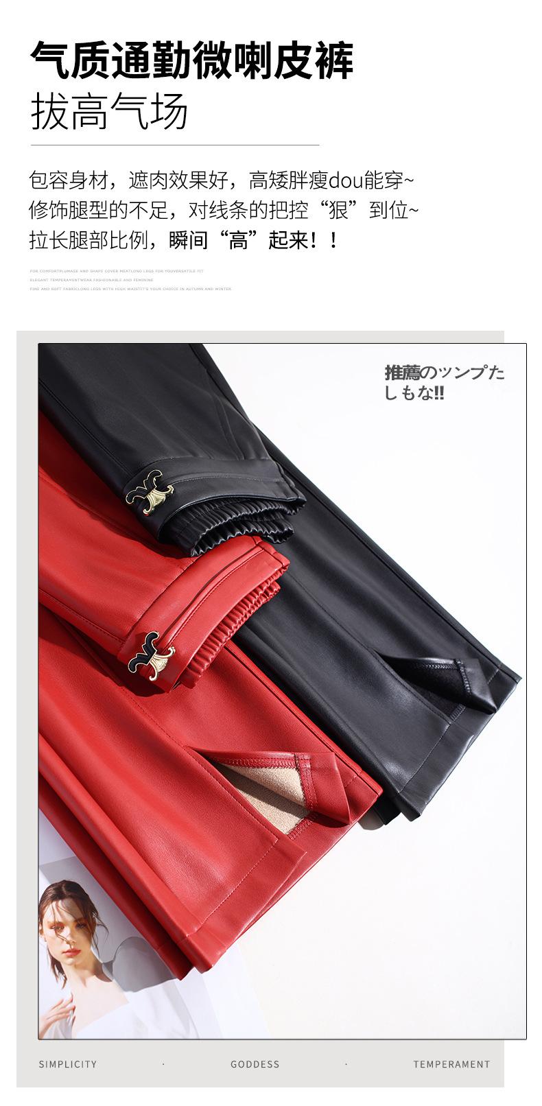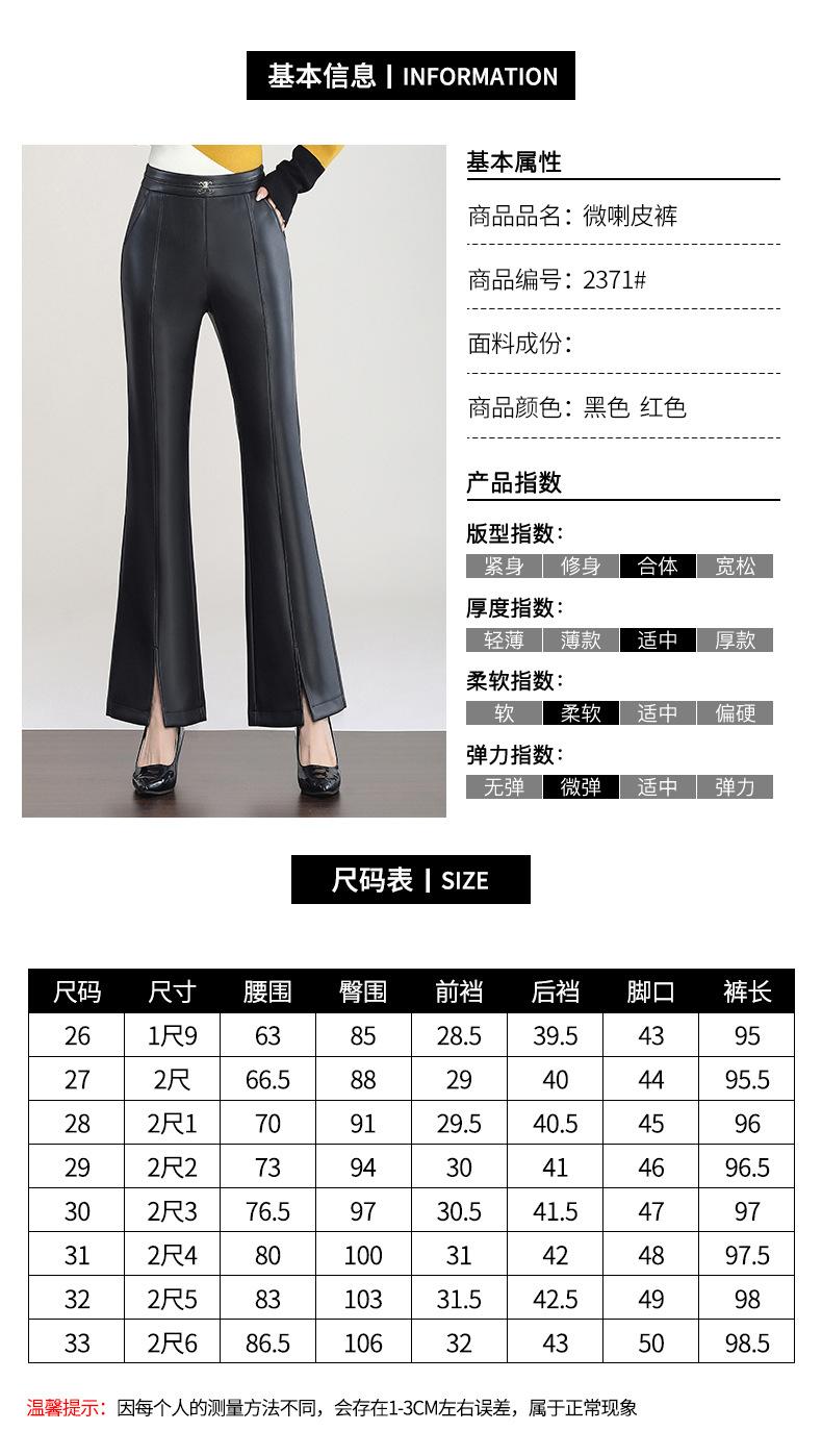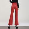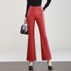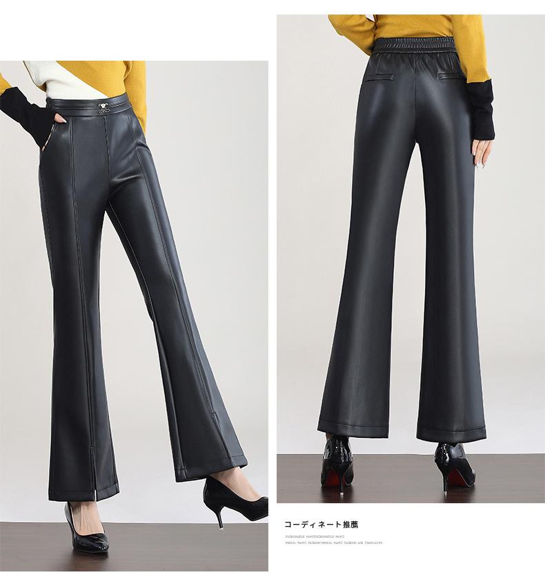 Pantalones de Cuero de Piel de Haining Nuevos de Otoño e Invierno 2025 para Mujer de Cintura Alta, Pantalones Bootcut Casuales de Cuero PU Artificial con Abertura Acampanados