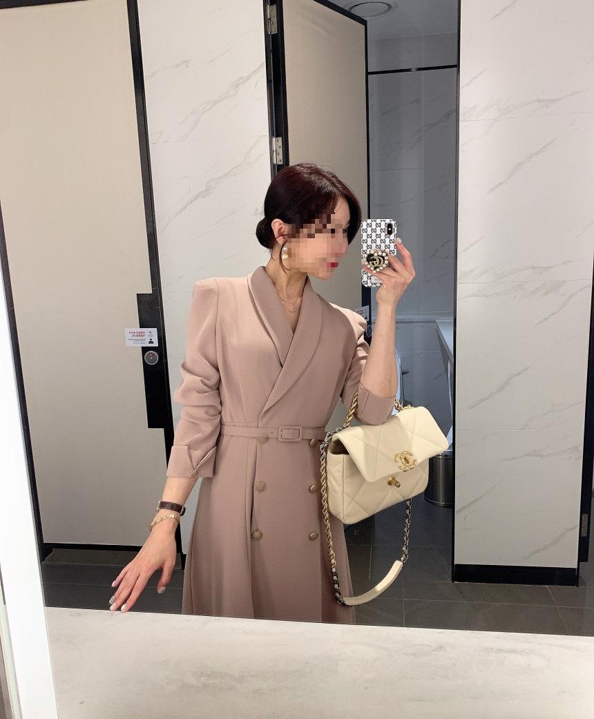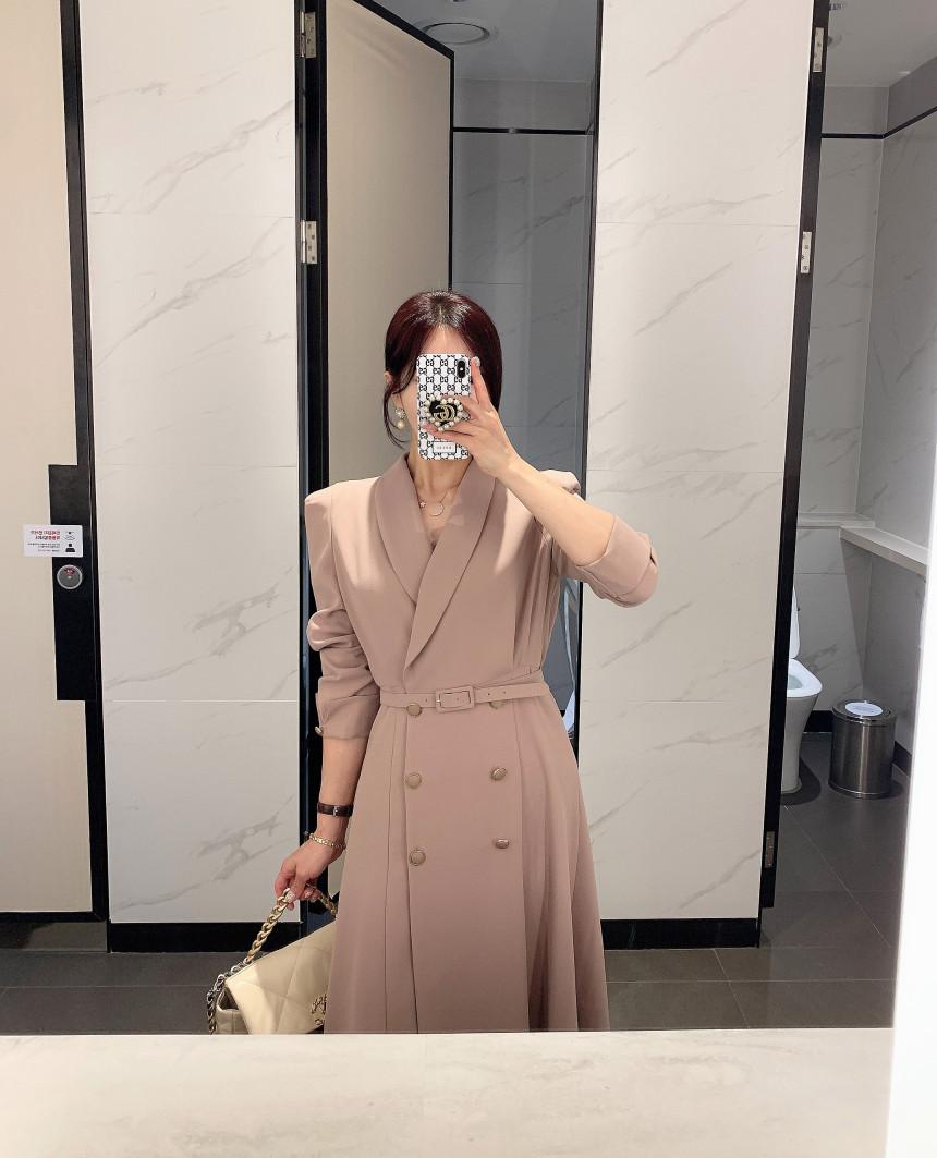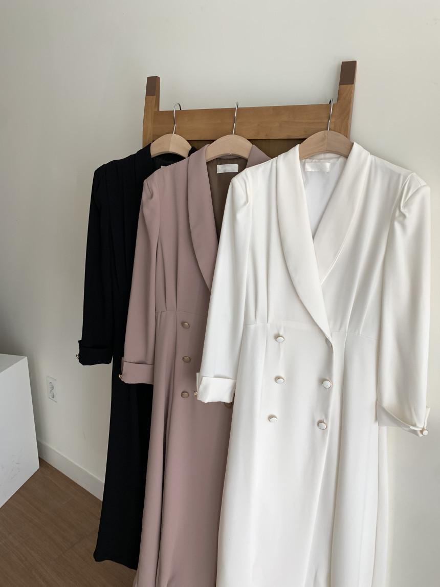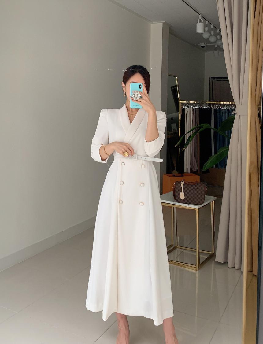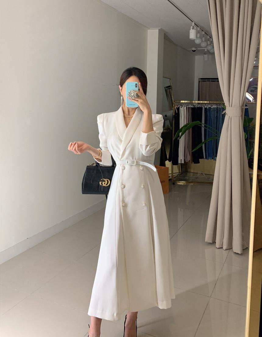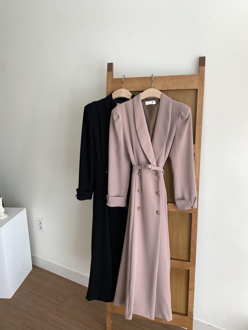 Chaqueta de traje elegante y elegante con cintura ajustada, doble botonadura, cuello en V grande y cortavientos largo