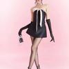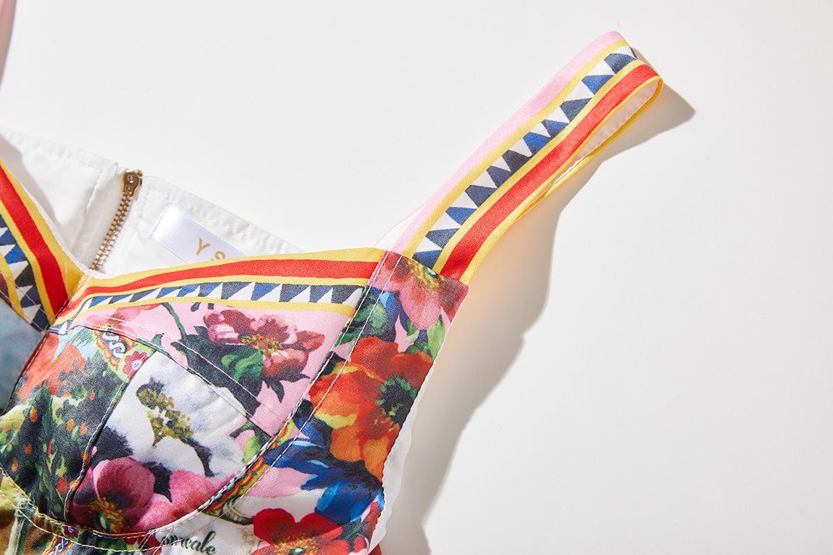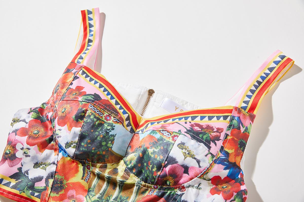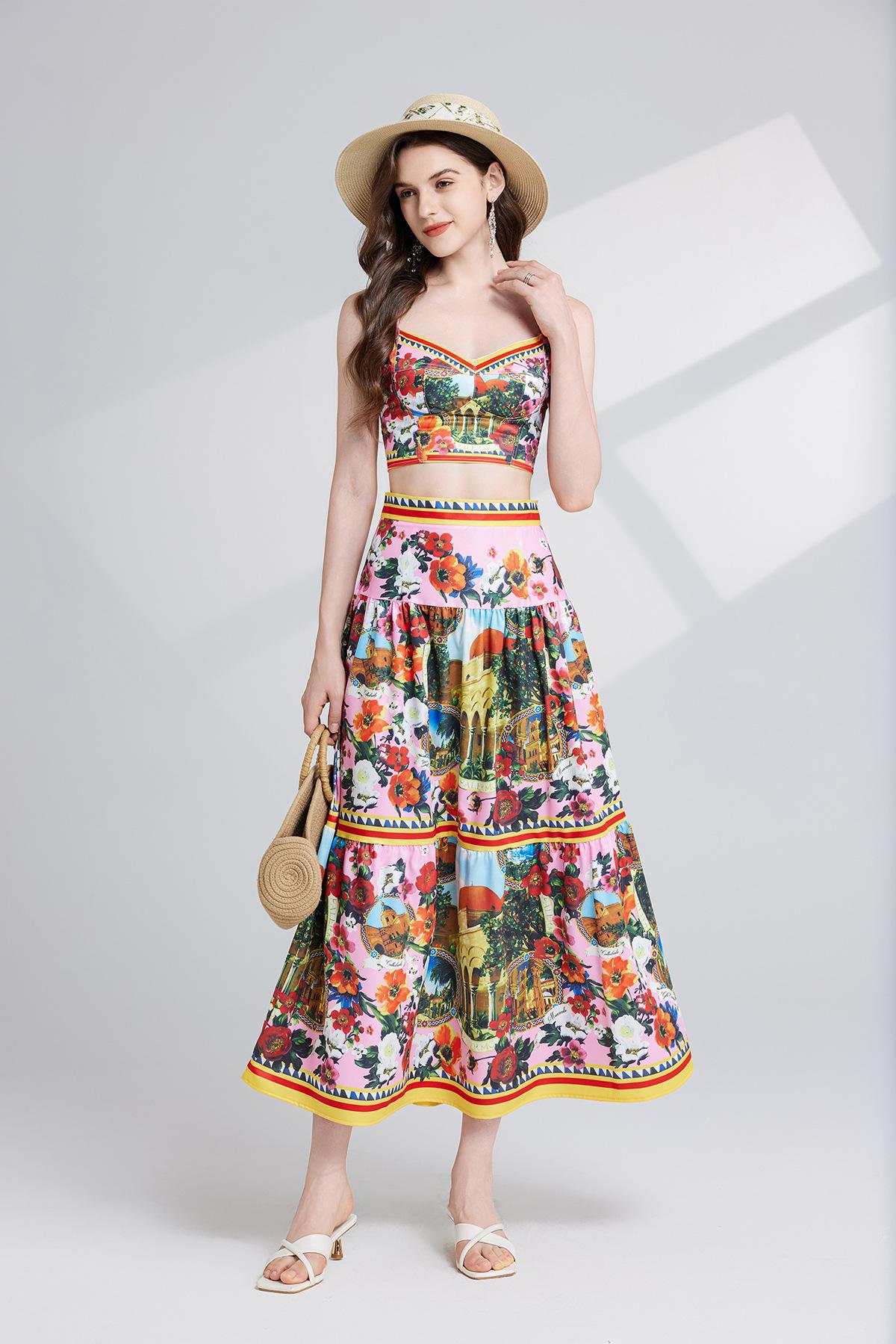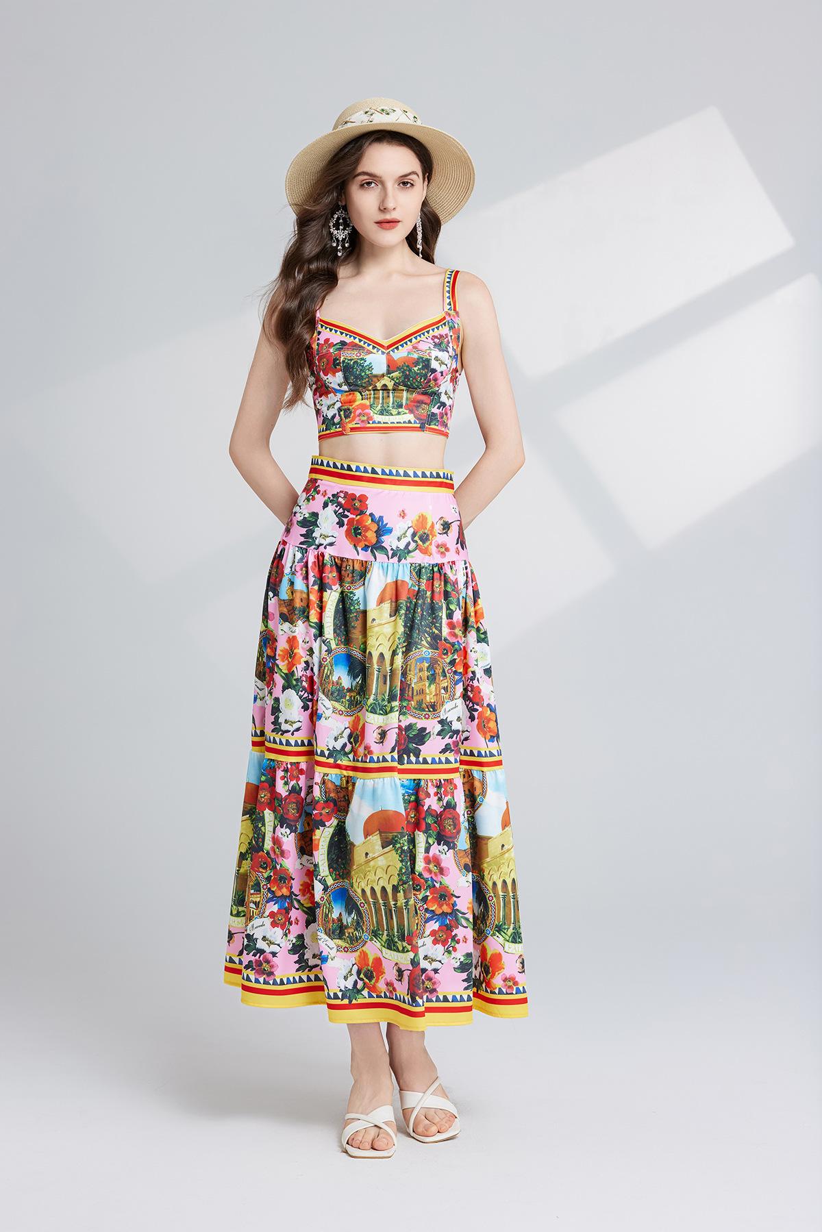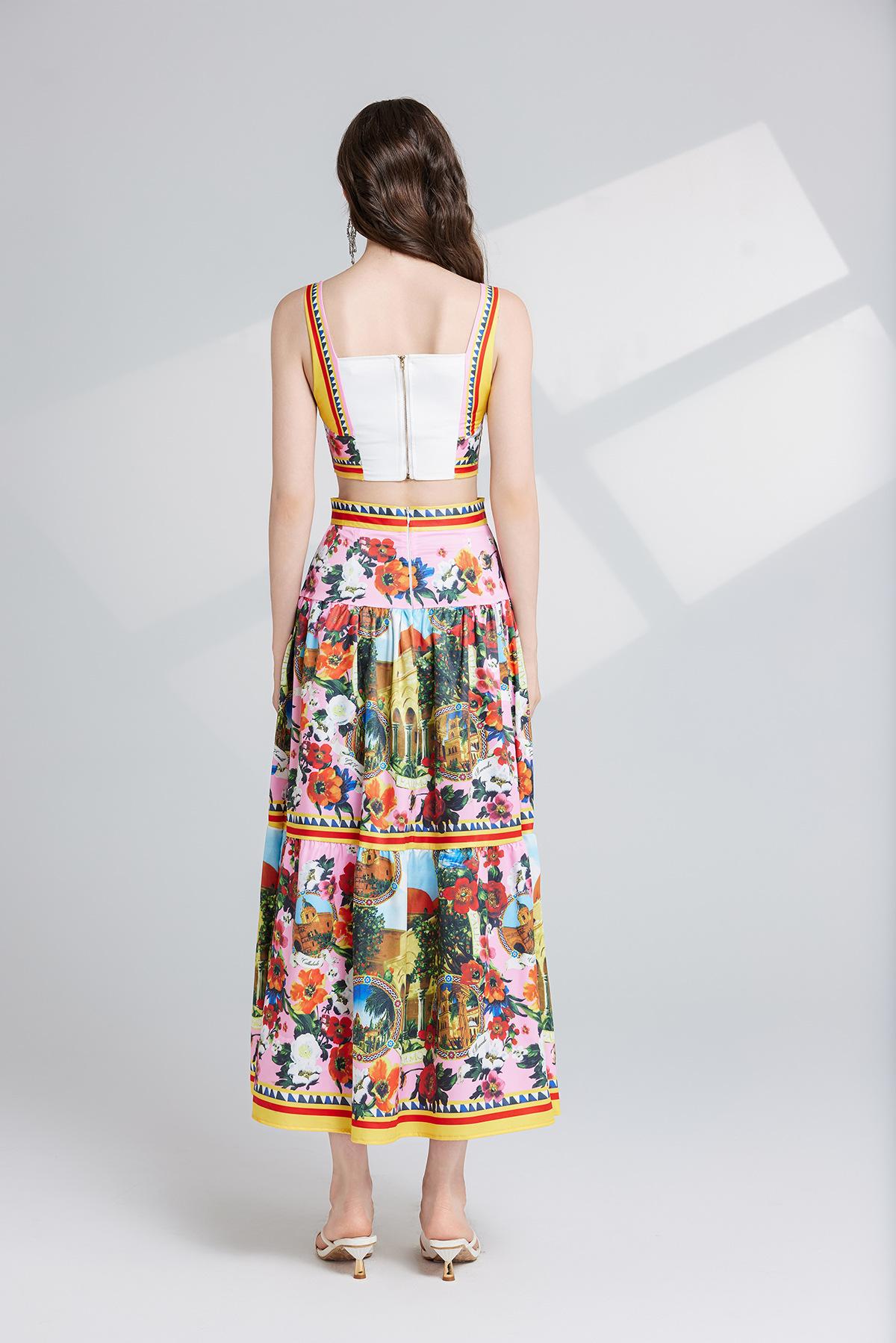 Traje de dos piezas con falda de cintura alta y tirantes de tubo tridimensional con costuras sexys europeas y americanas con almohadillas para el pecho