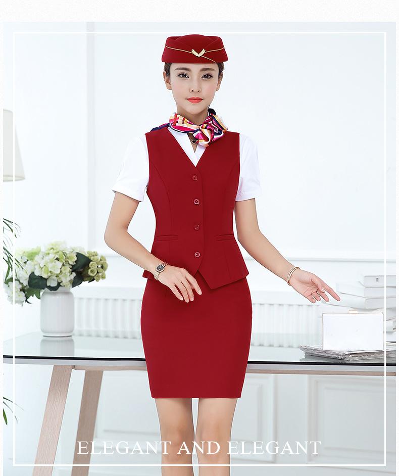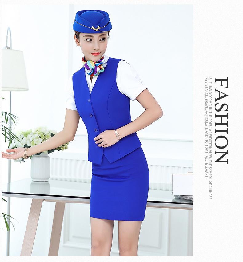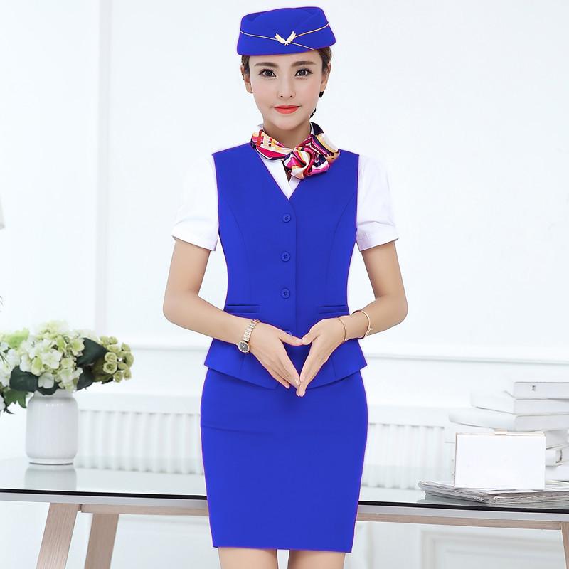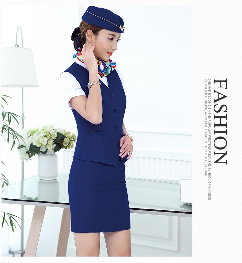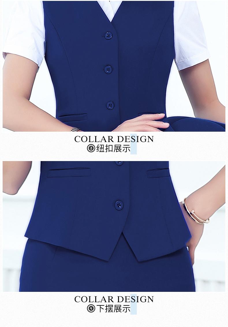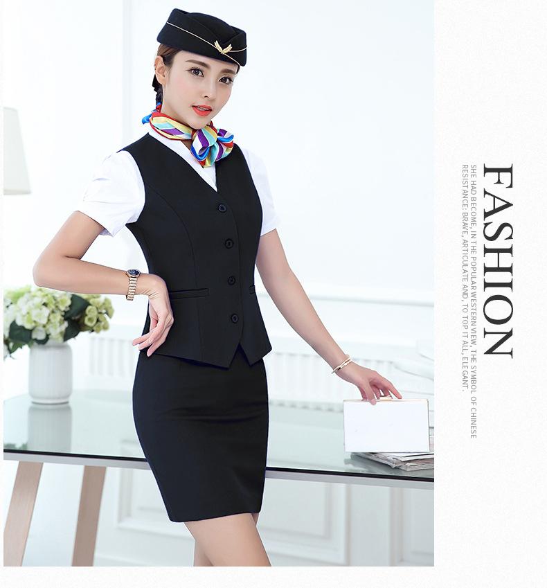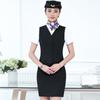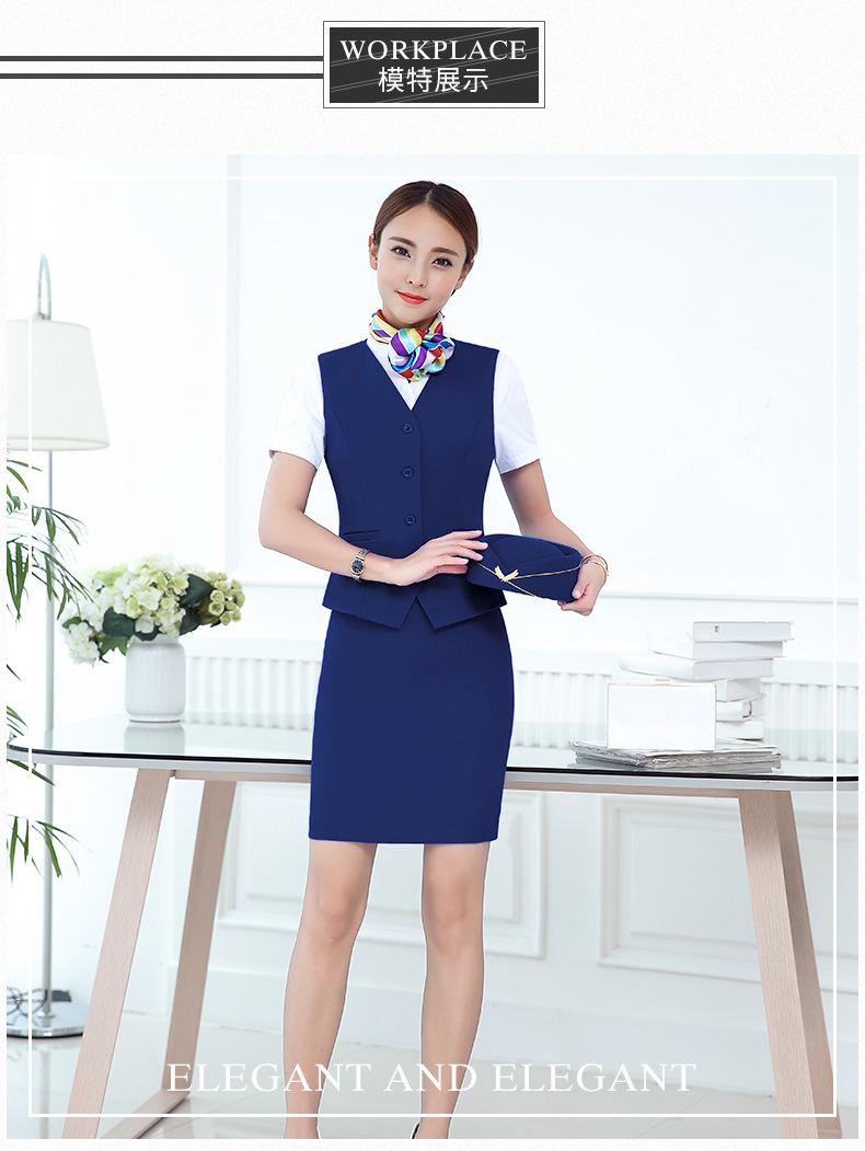 Uniforme de azafata, traje profesional de verano para mujer, chaleco de moda de manga corta, tres piezas, cuello blanco, ropa de trabajo para banco, hotel o oficina.