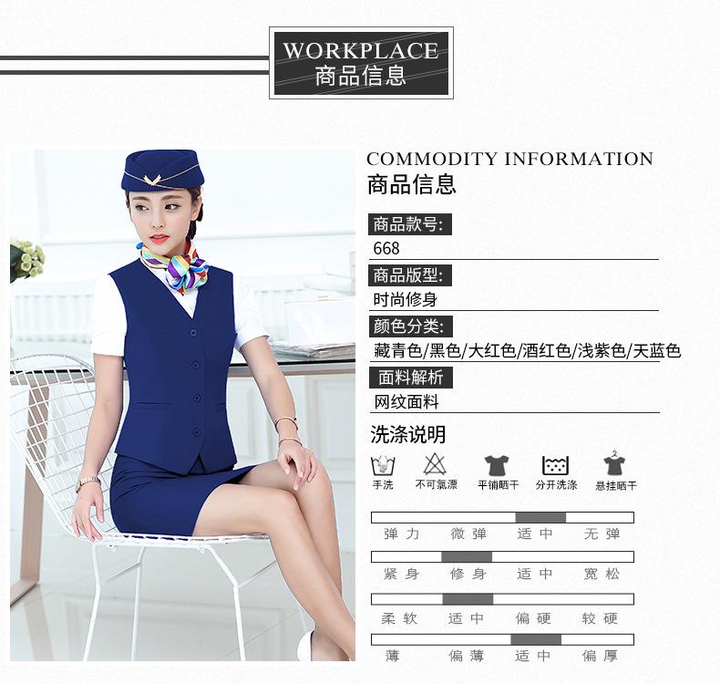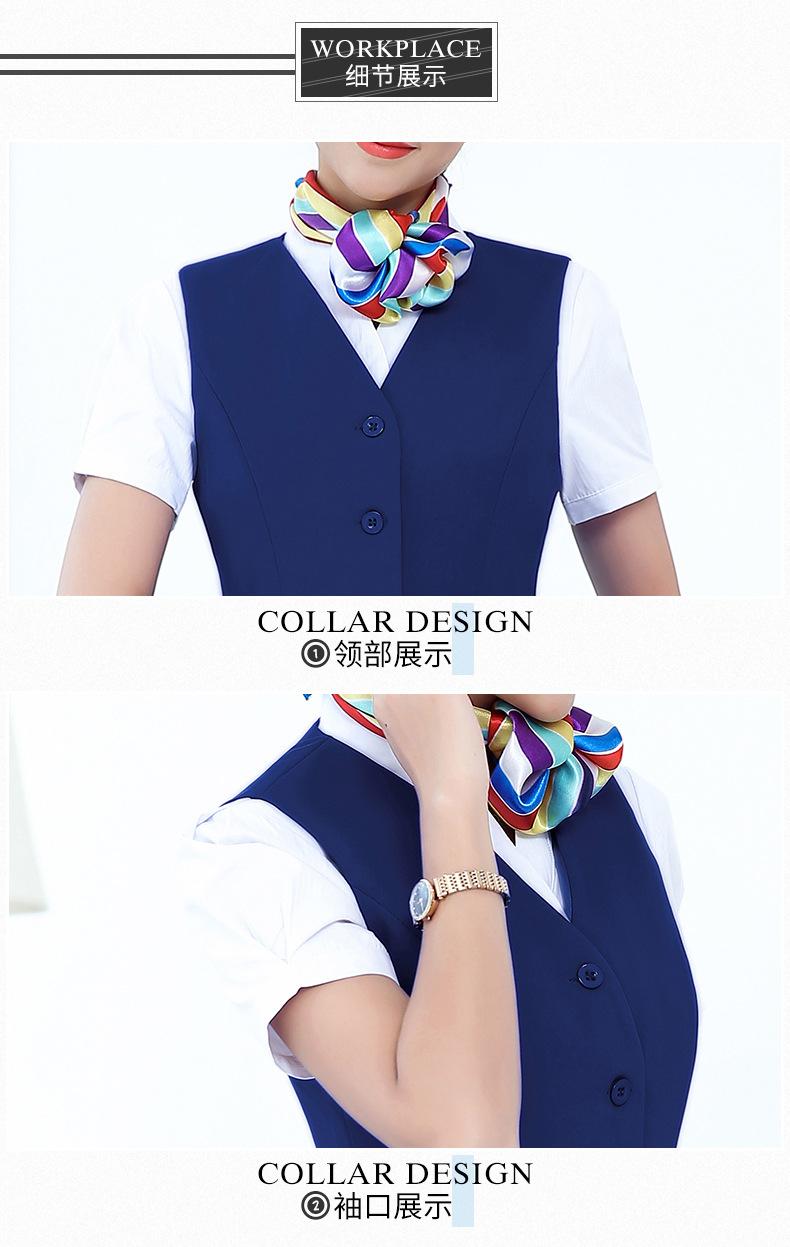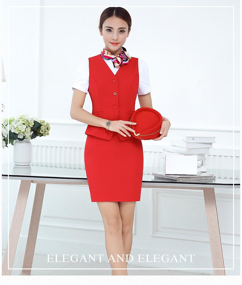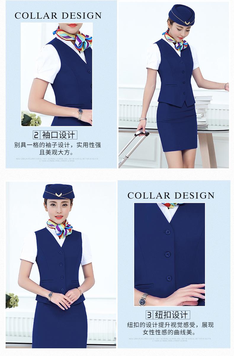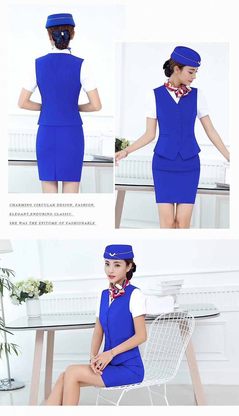 Uniforme de azafata, traje profesional de verano para mujer, chaleco de moda de manga corta, tres piezas, cuello blanco, ropa de trabajo para banco, hotel o oficina.