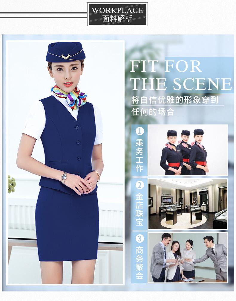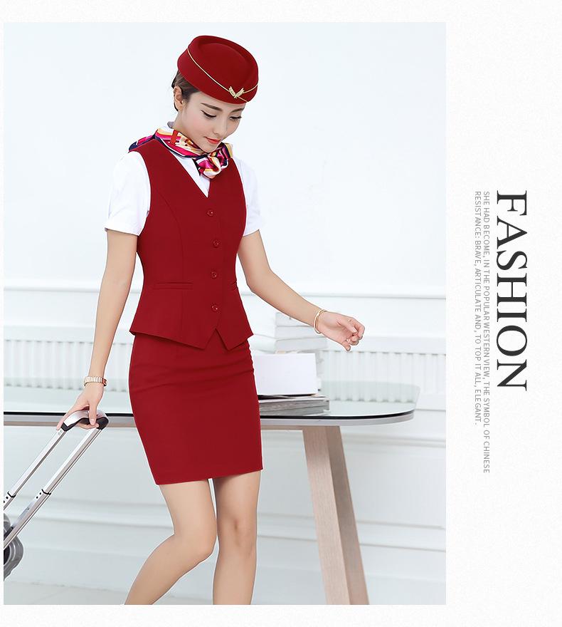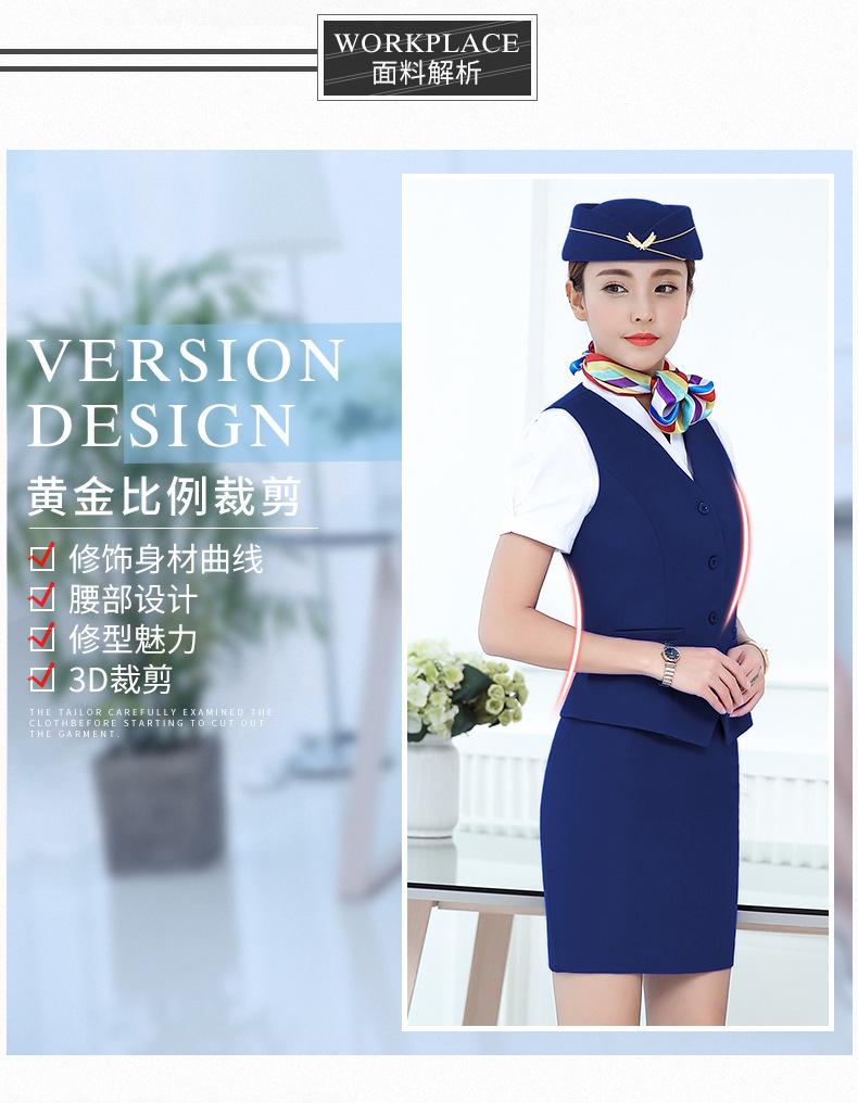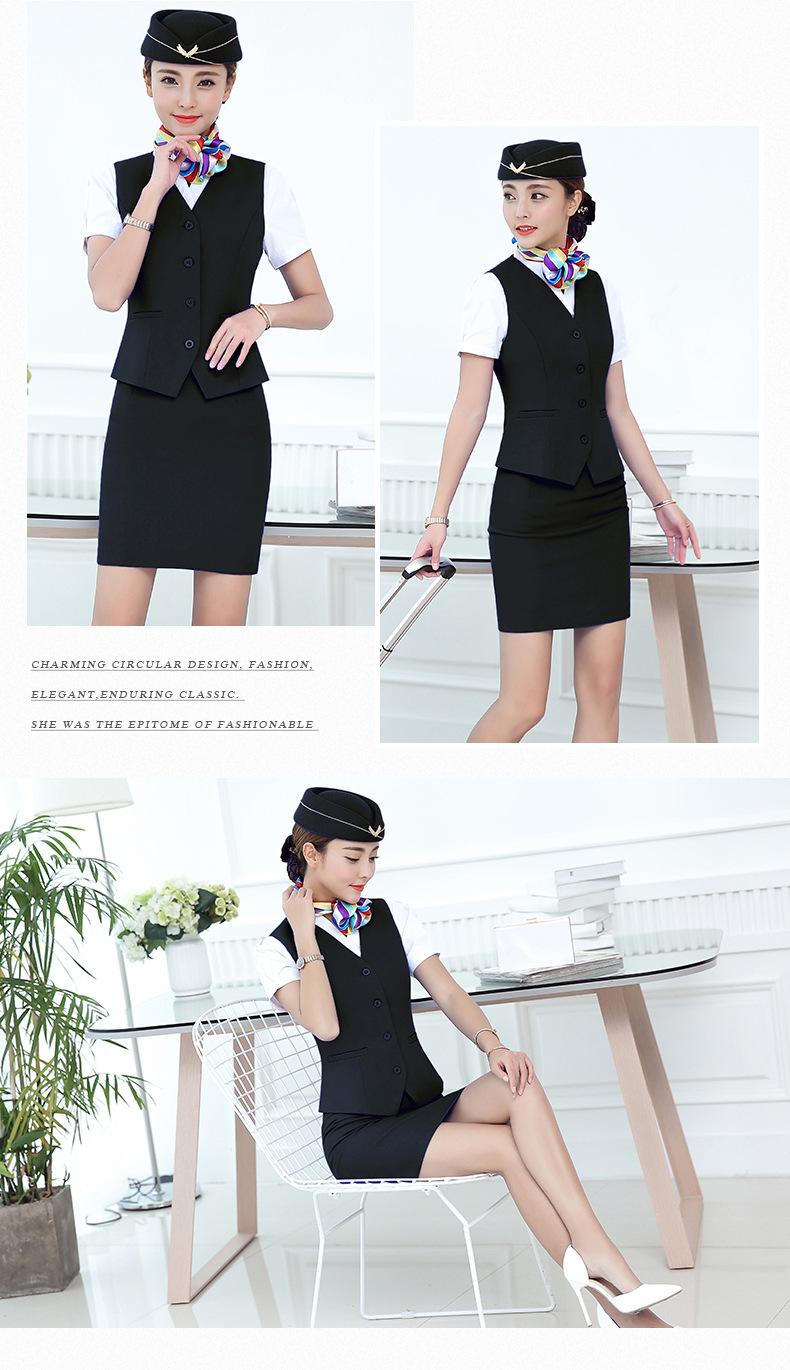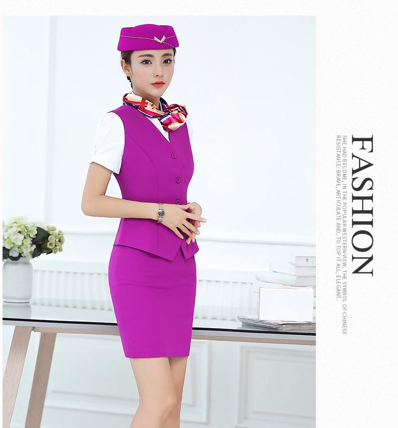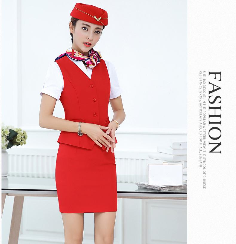 Uniforme de azafata, traje profesional de verano para mujer, chaleco de moda de manga corta, tres piezas, cuello blanco, ropa de trabajo para banco, hotel o oficina.