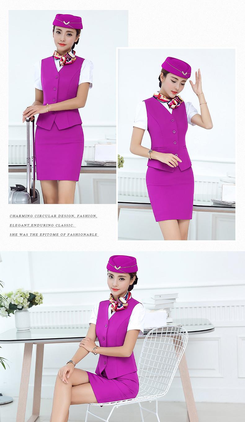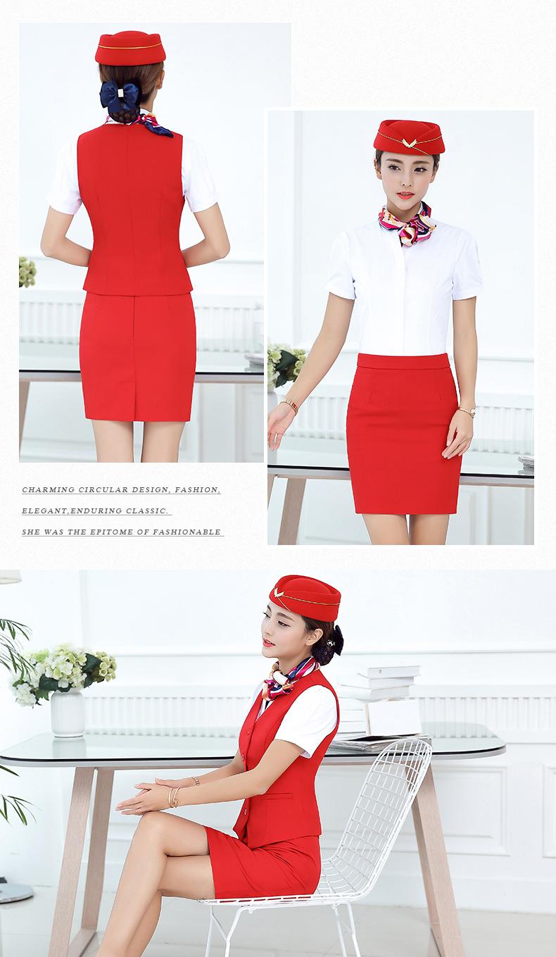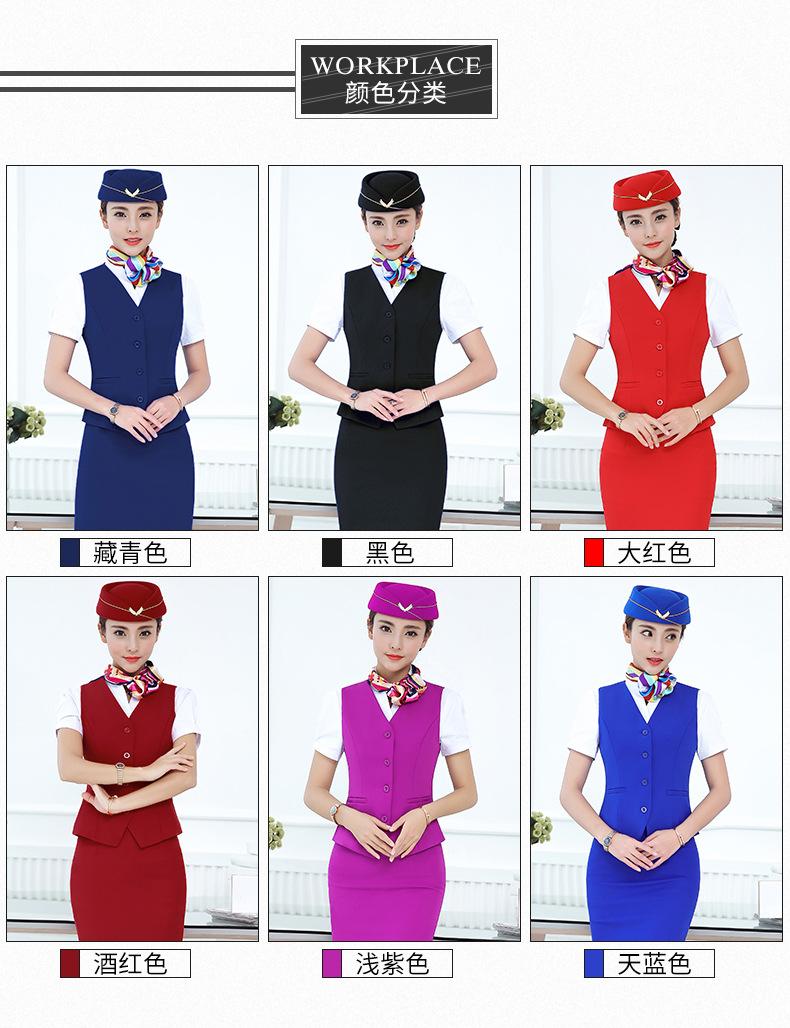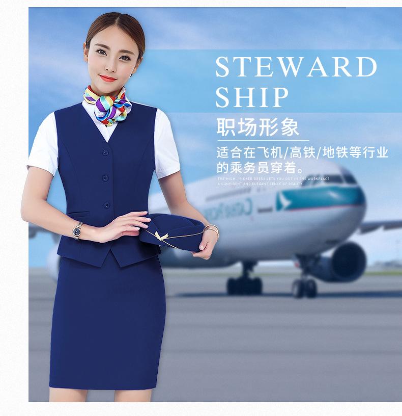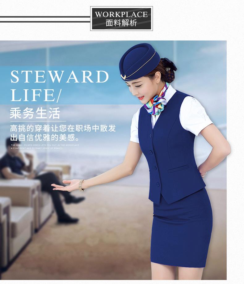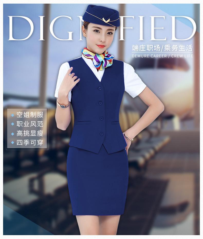 Uniforme de azafata, traje profesional de verano para mujer, chaleco de moda de manga corta, tres piezas, cuello blanco, ropa de trabajo para banco, hotel o oficina.