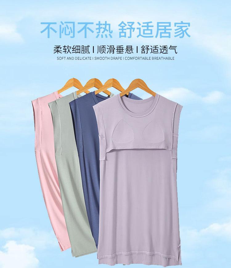 Vestido Delgado Sin Mangas con Almohadillas en el Busto, Copa de Una Pieza, Sin Sostén, Cómodo Camisón, Ropa para el Hogar