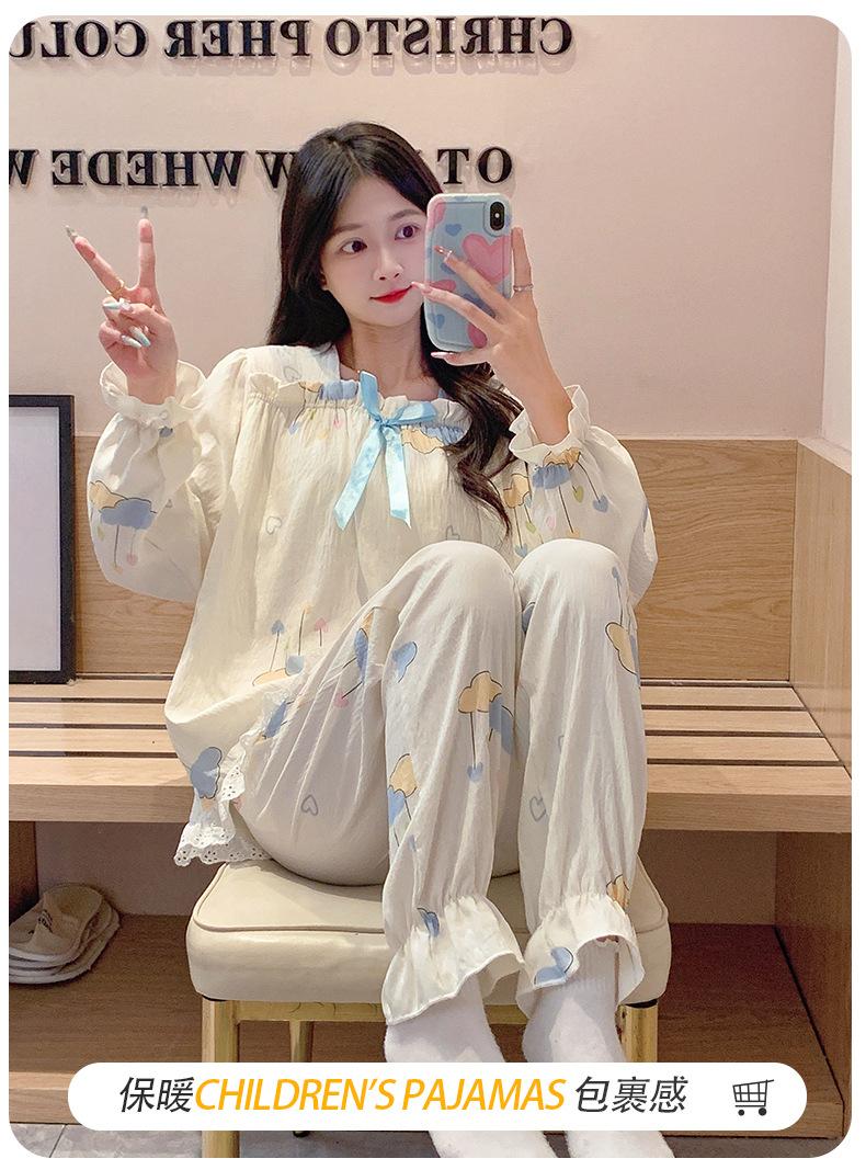 Pijamas de mujer de primavera y otoño de manga larga con dibujos animados bonitos para salir 2024, nuevo invierno, ropa holgada para el hogar, traje de talla grande