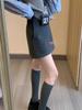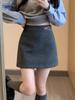 Falda de lana de cintura elástica gris de alta calidad, hasta la mitad de la longitud, para mujer, de primavera y otoño, estilo coreano, de cintura alta, antiluz, estilo A-line, falda a la cadera