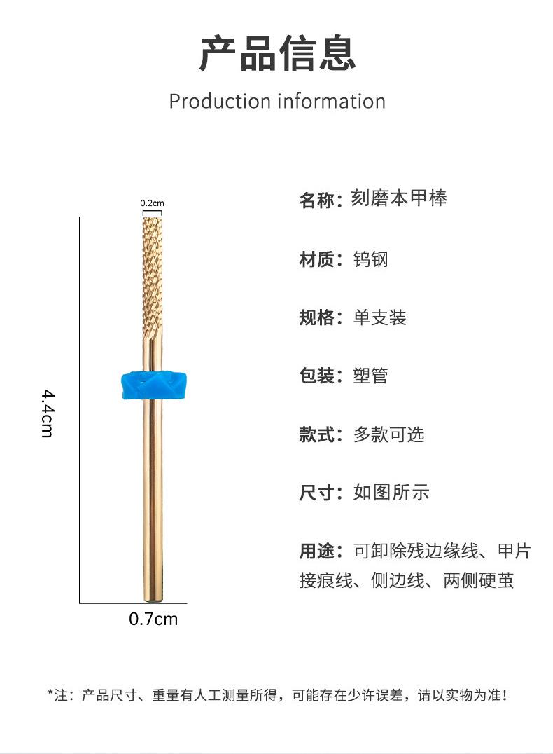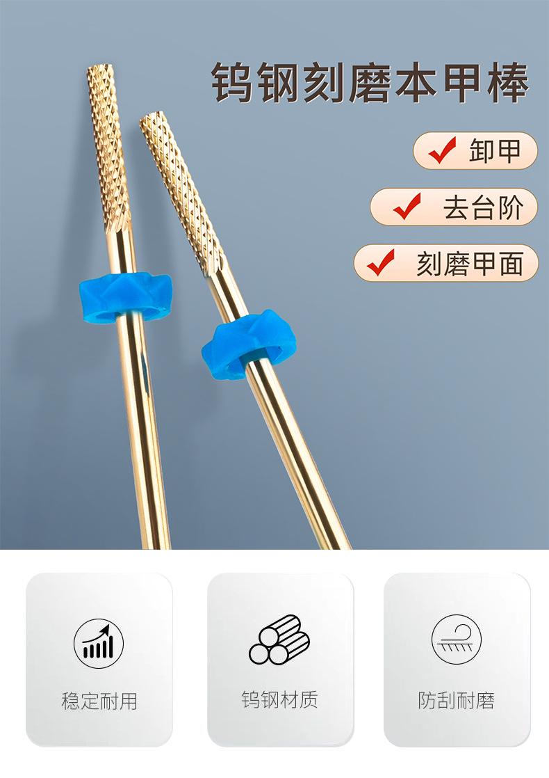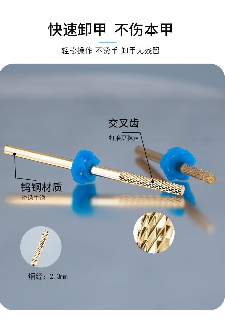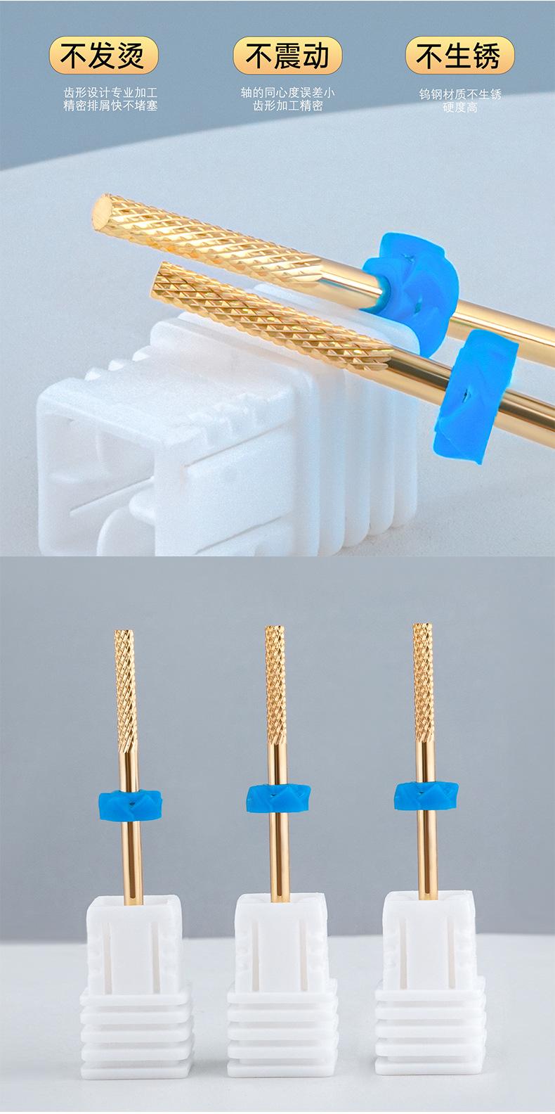 Cabezal de pulido de acero de tungsteno para uñas, varilla de pulido de cabeza plana con baño de oro, descarga rápida de uñas y pasos para eliminar la piel muerta, herramienta para tienda de uñas