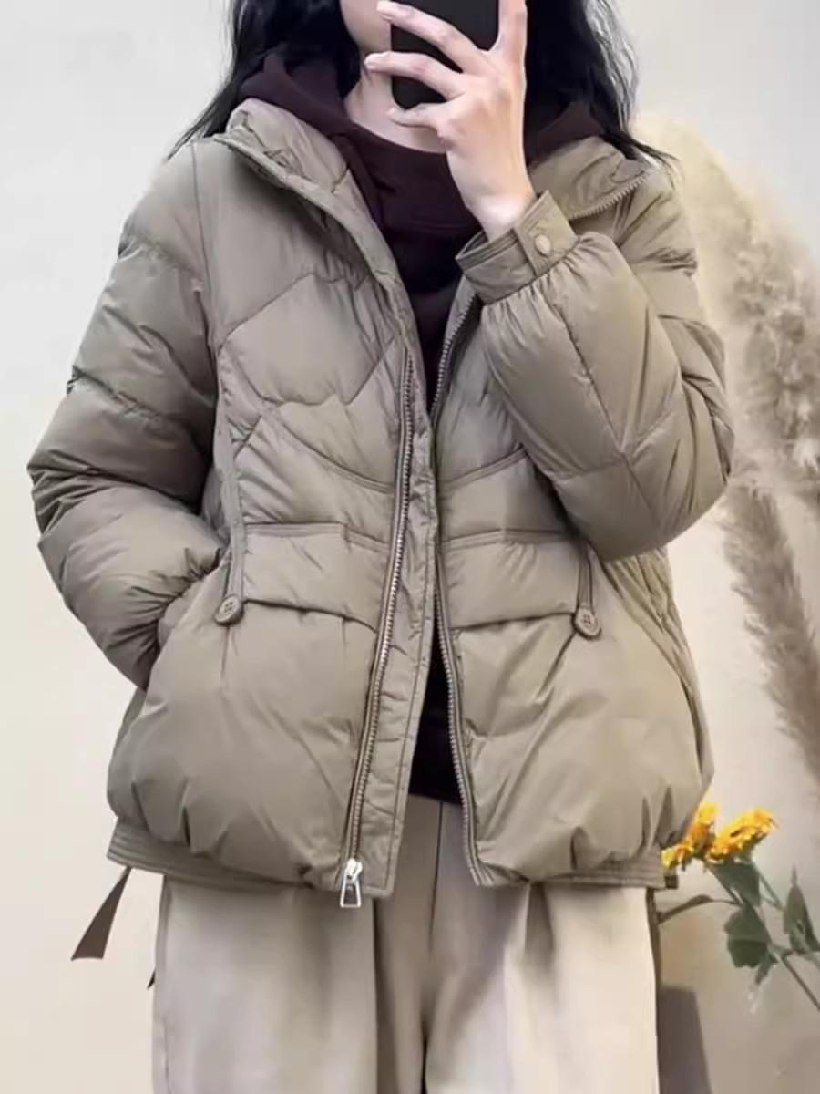 Chaqueta corta acolchada de algodón de plumón china (2025), nueva chaqueta acolchada de algodón de moda para invierno con cuello vertical, cálida y acolchada de algodón.