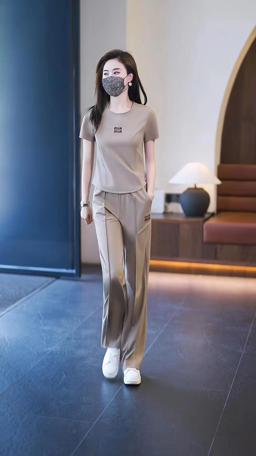 Traje Deportivo de Moda para Mujer de Manga Corta 2025 Verano Nuevo Versátil Adelgazante Look Suelto Casual Traje para Correr Conjunto de Dos Piezas Moderno