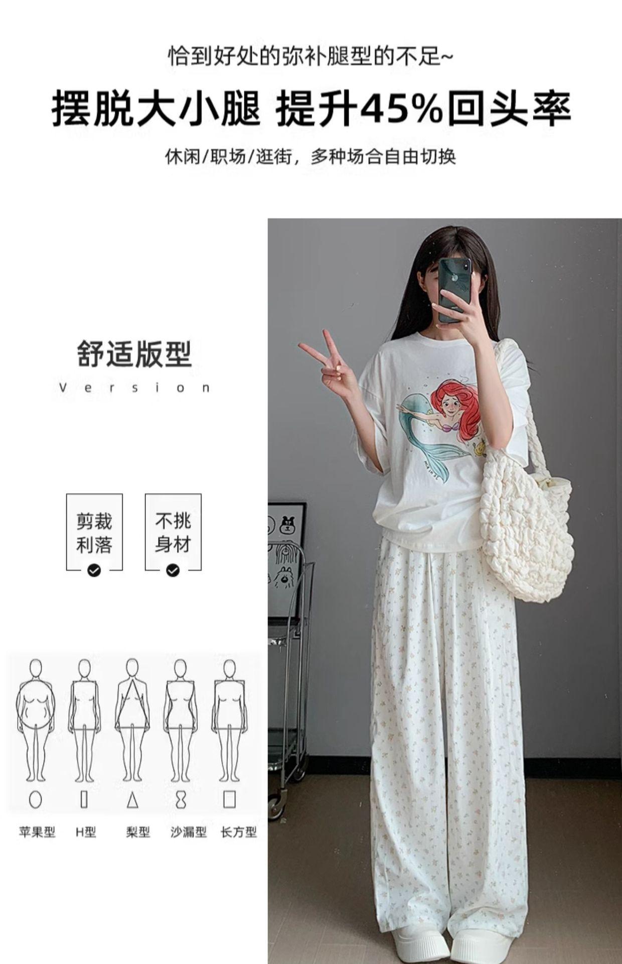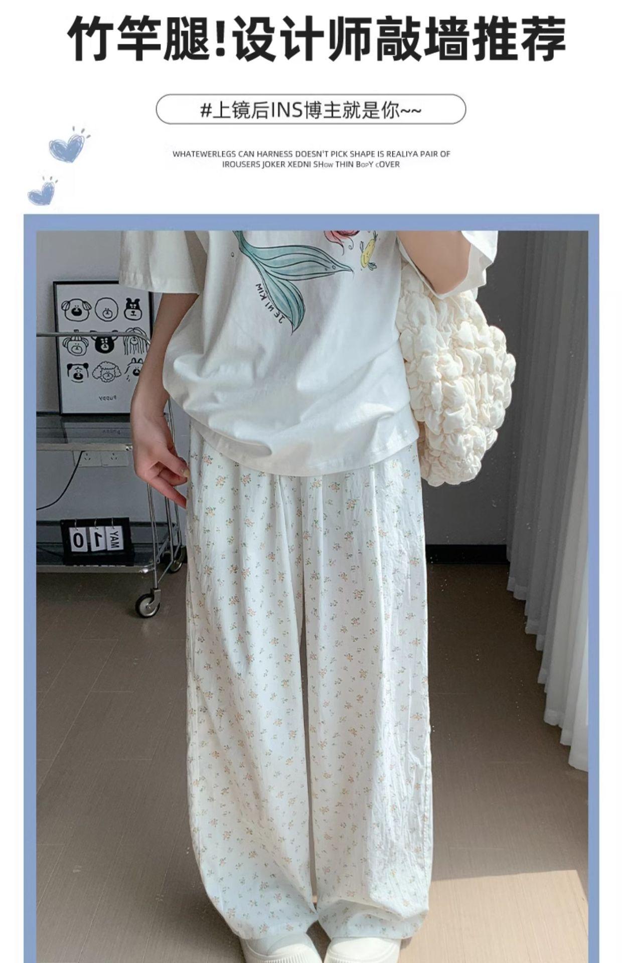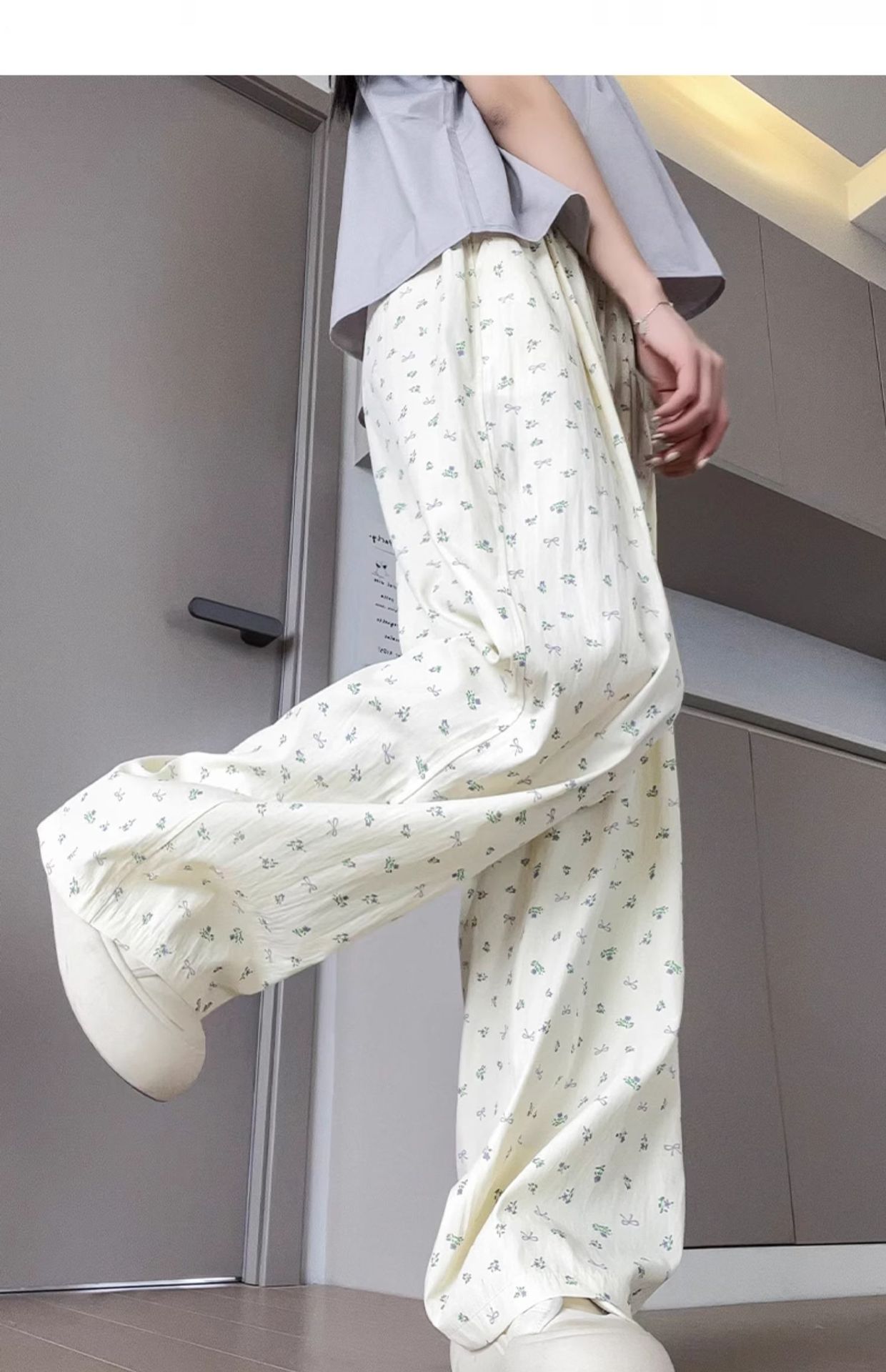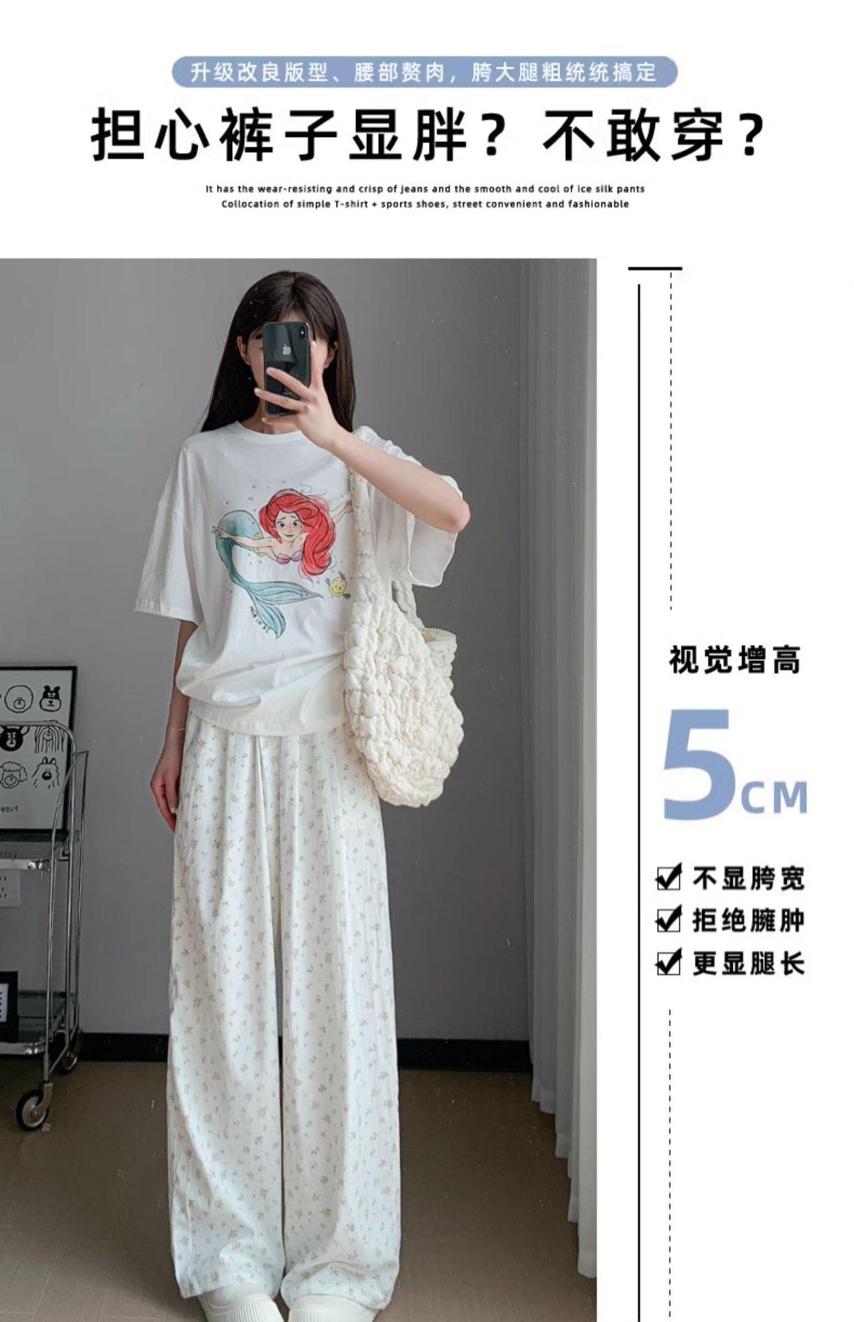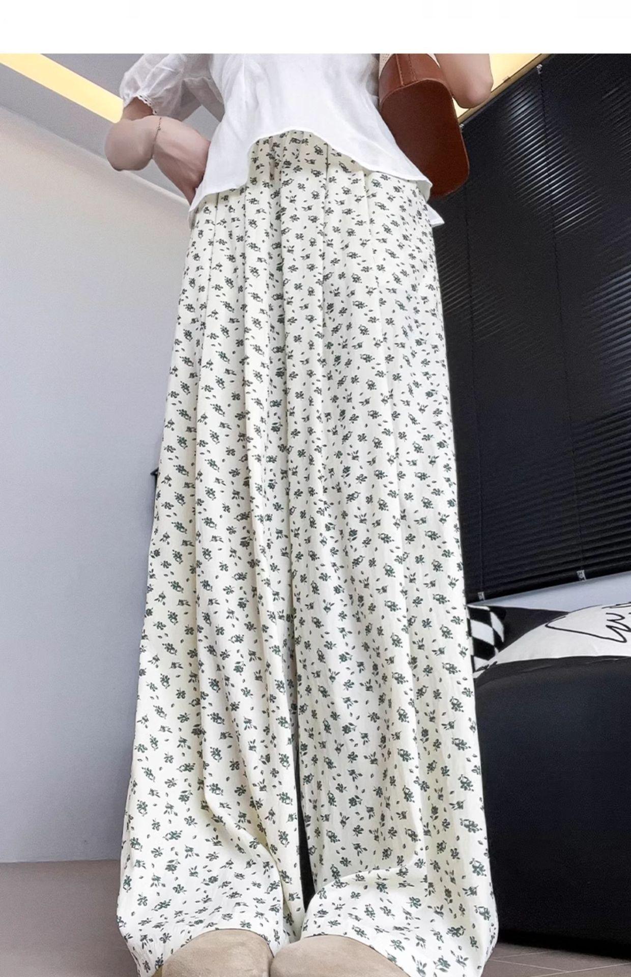 Pantalones Florales Yamamoto de Seda de Hielo Blanco para Mujer Verano Delgados 2025 Nuevo Estilo Casual Estilo Pequeño Textura Arrastrando Pierna Ancha