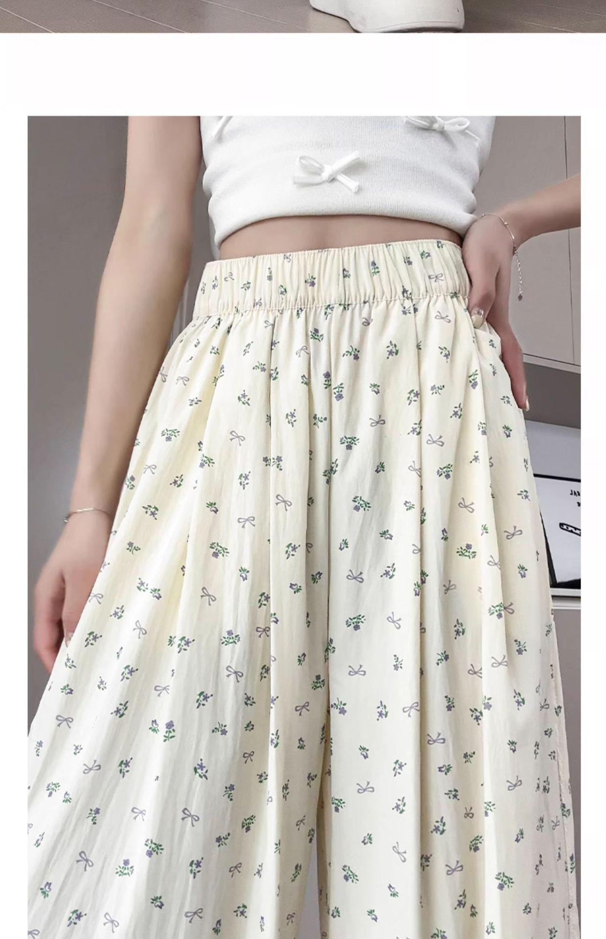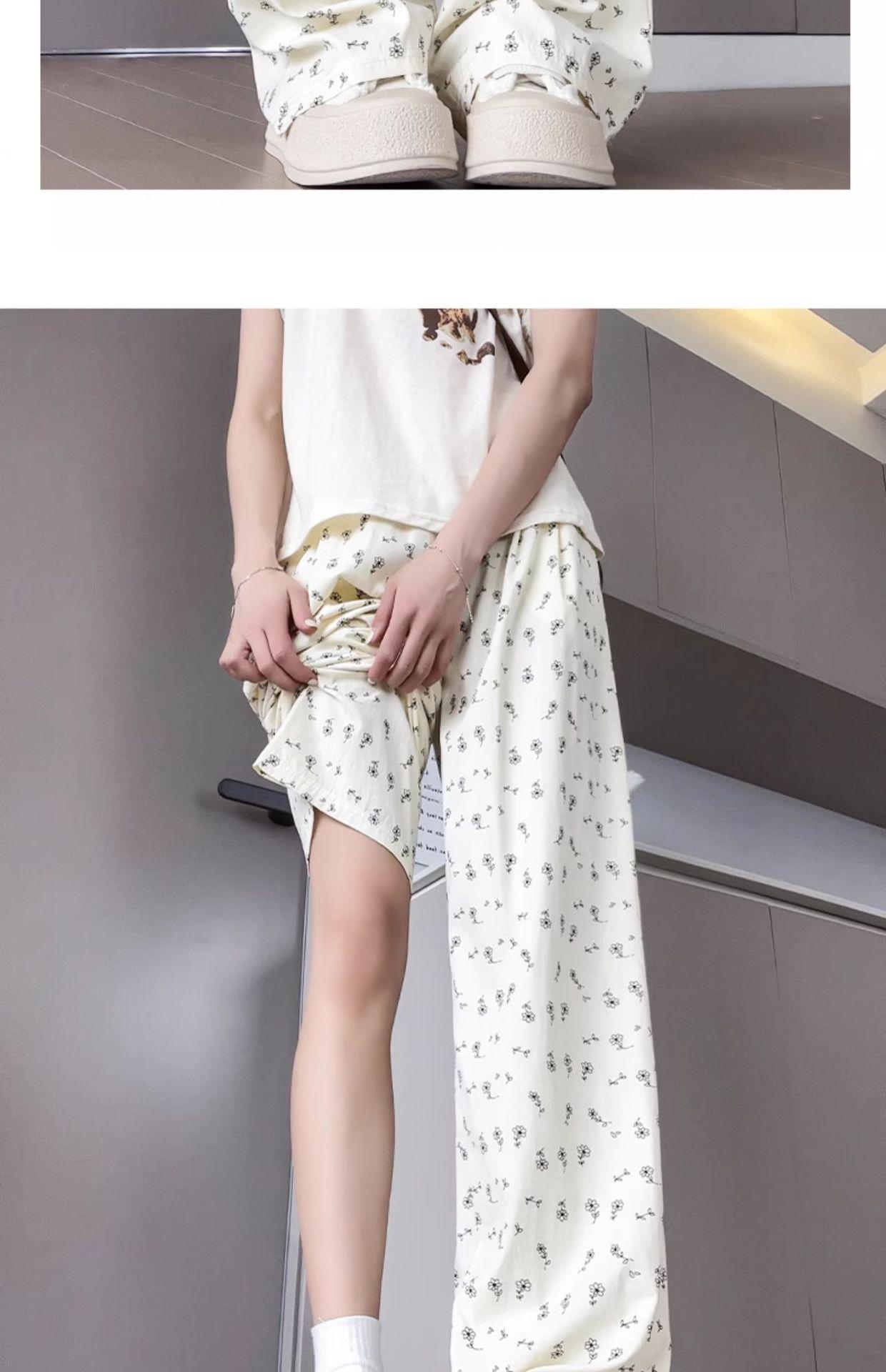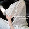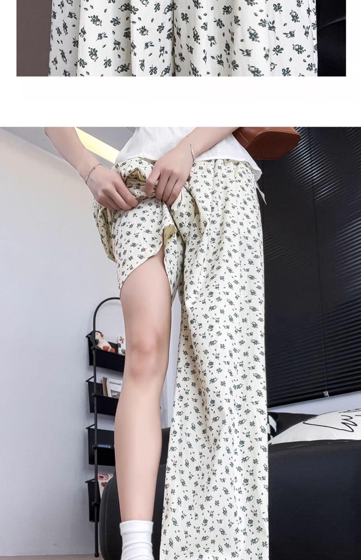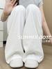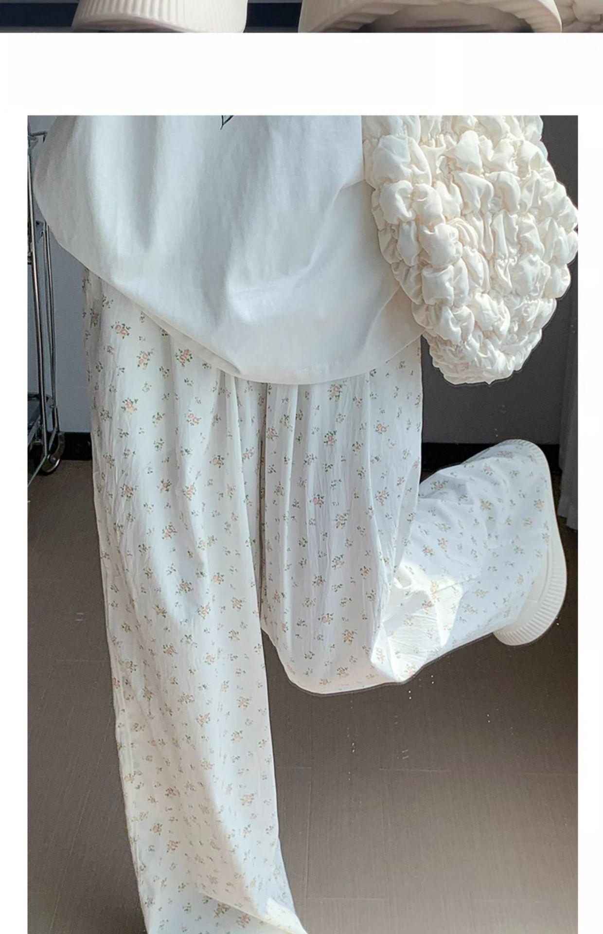 Pantalones Florales Yamamoto de Seda de Hielo Blanco para Mujer Verano Delgados 2025 Nuevo Estilo Casual Estilo Pequeño Textura Arrastrando Pierna Ancha