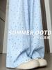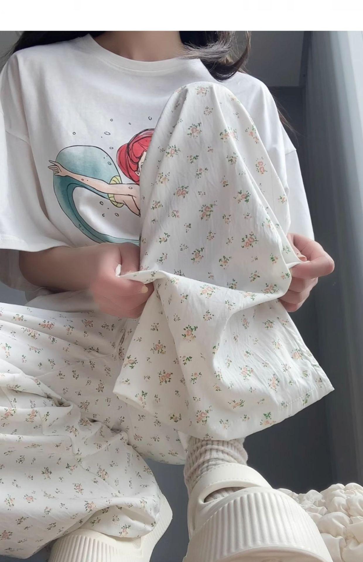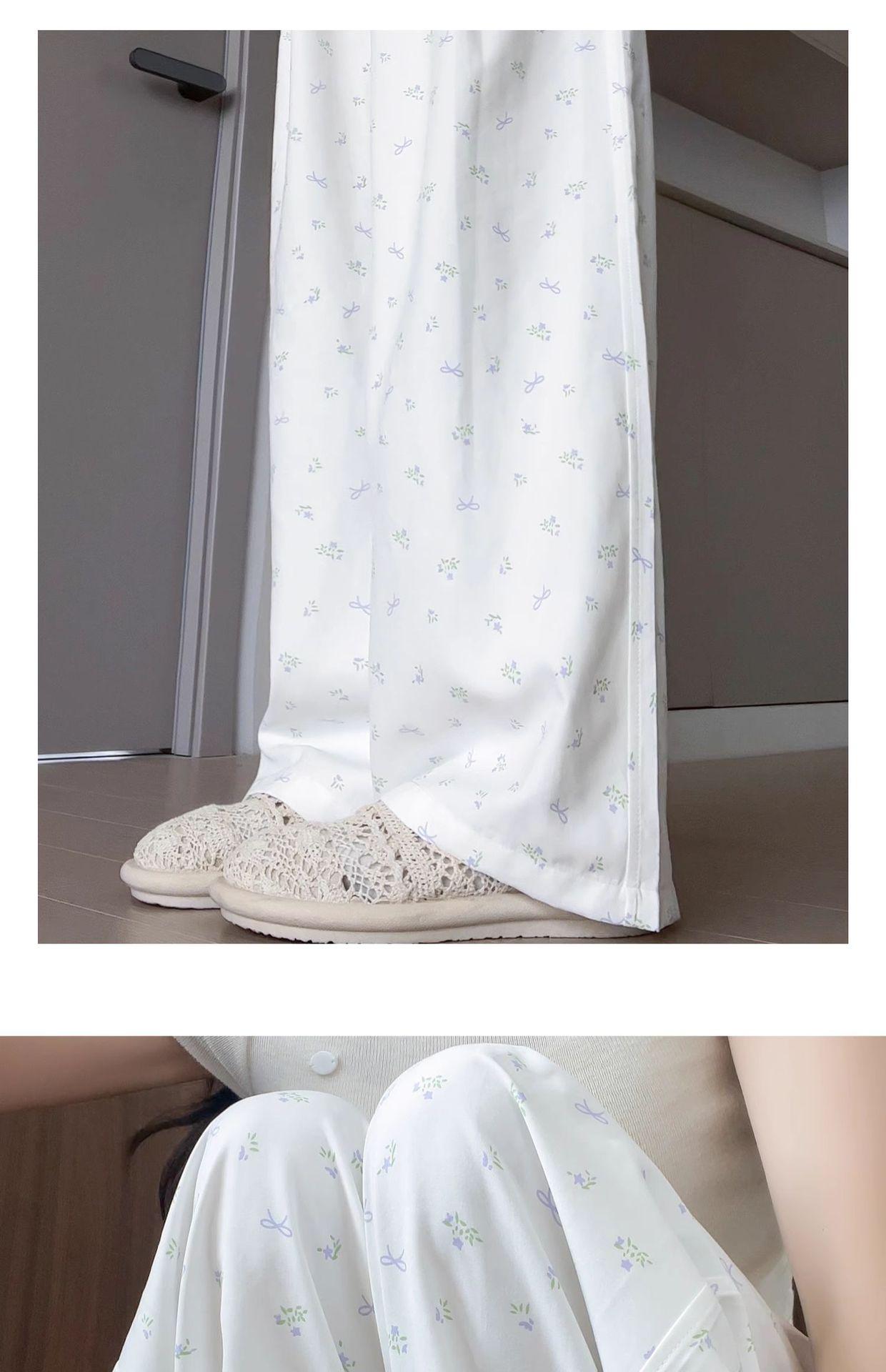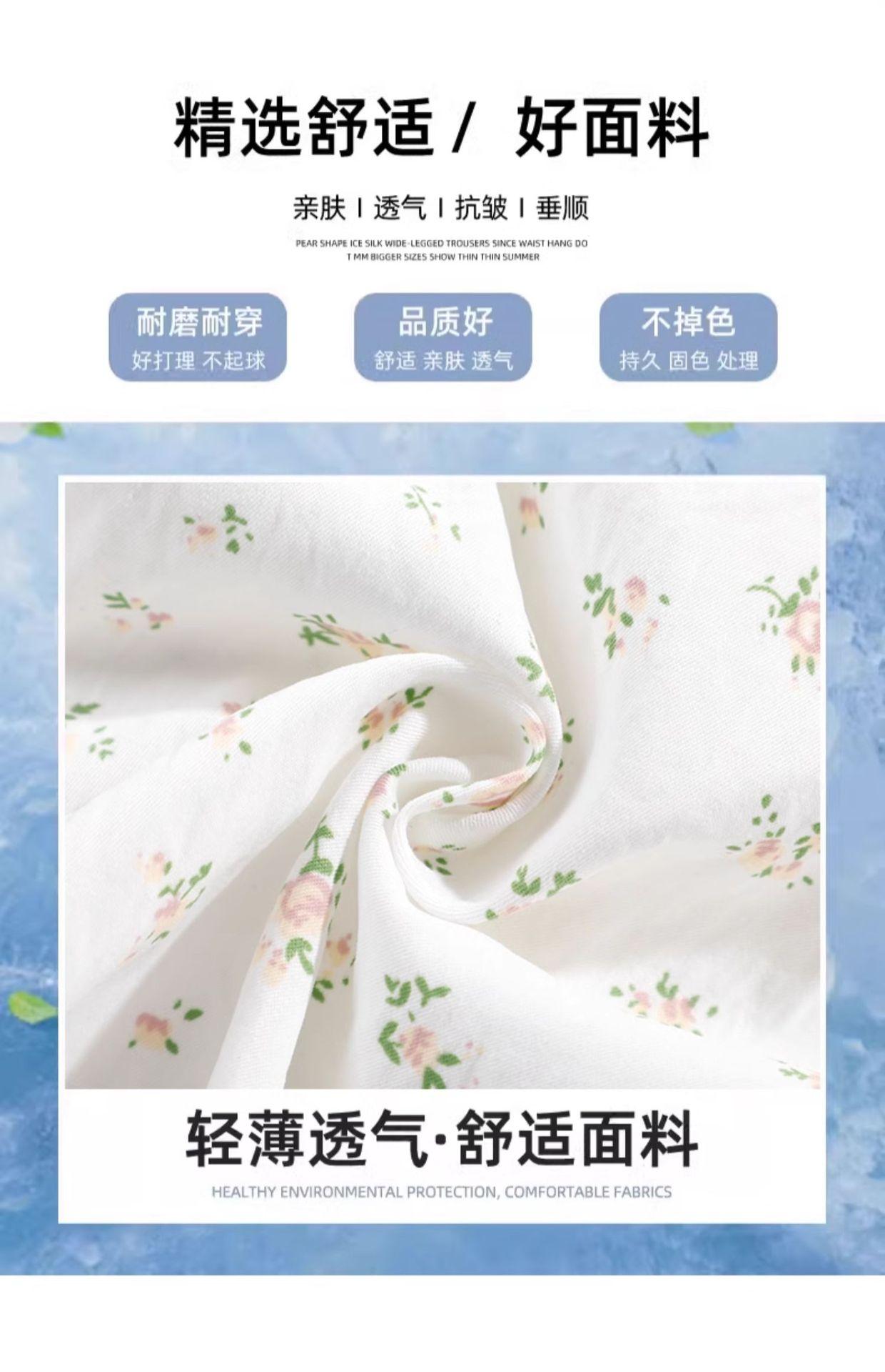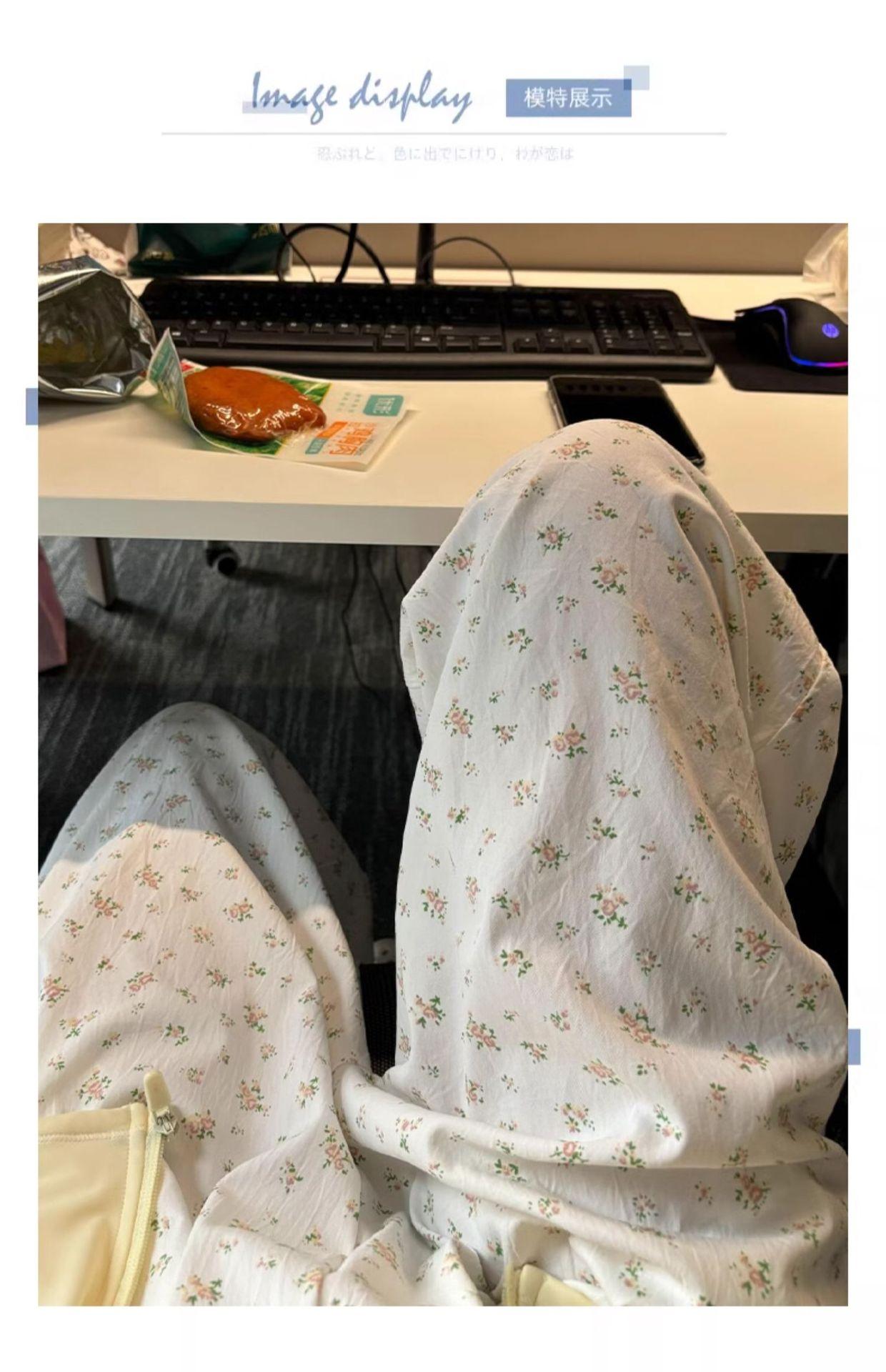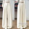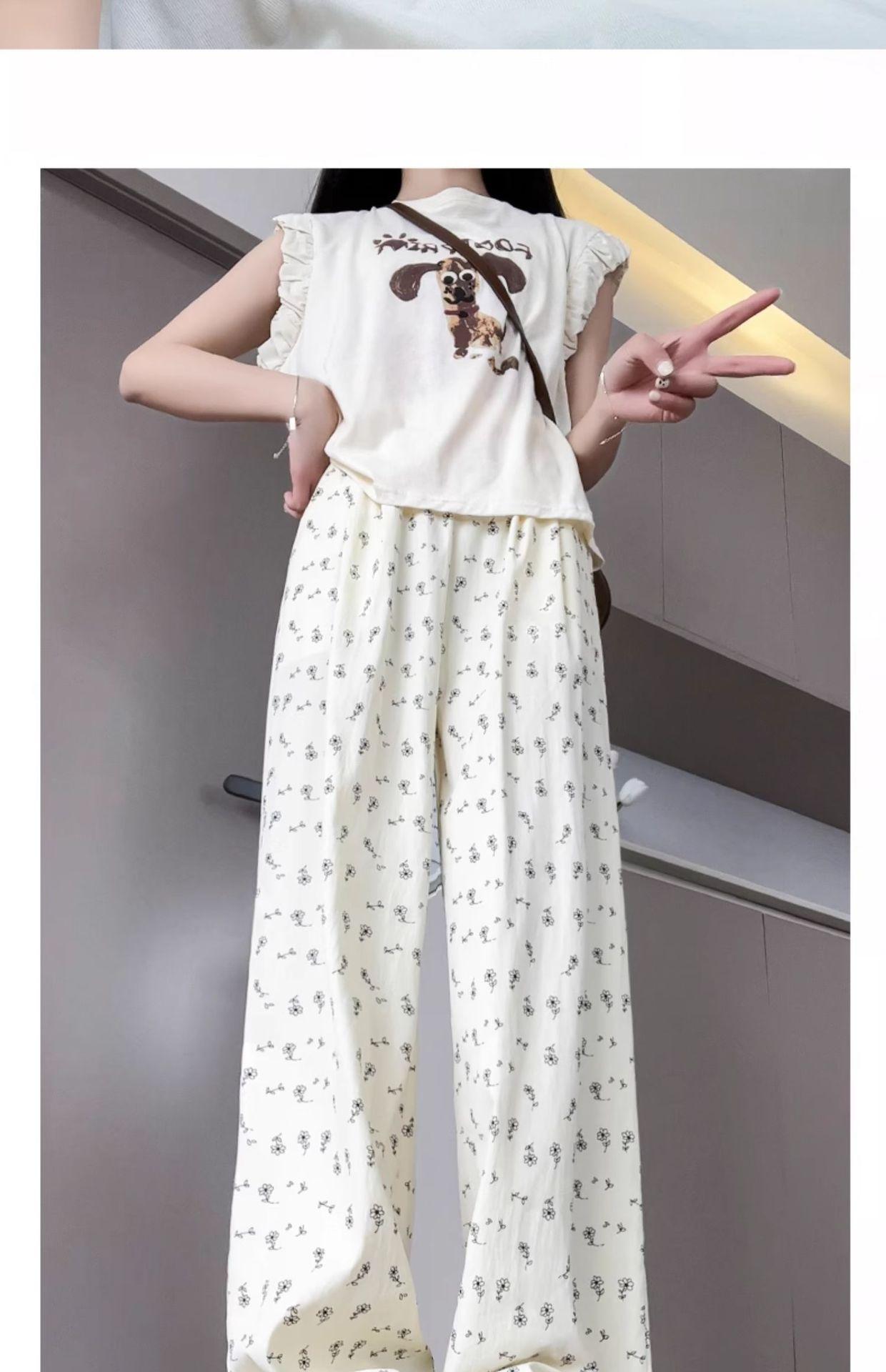 Pantalones Florales Yamamoto de Seda de Hielo Blanco para Mujer Verano Delgados 2025 Nuevo Estilo Casual Estilo Pequeño Textura Arrastrando Pierna Ancha