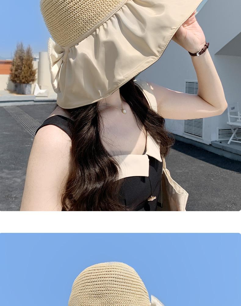 Sombrero de verano para mujer, con ala ancha, tipo chal, con protección para el cuello, para exteriores, con protección contra fugas ultravioleta, estilo pescador con cola de caballo
