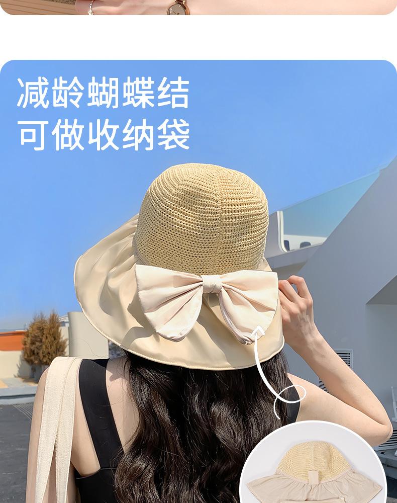 Sombrero de pescador con lazo de encaje de malla, sombrero de protección solar de verano para mujer, sombrero de sol pequeño con ala grande a la moda