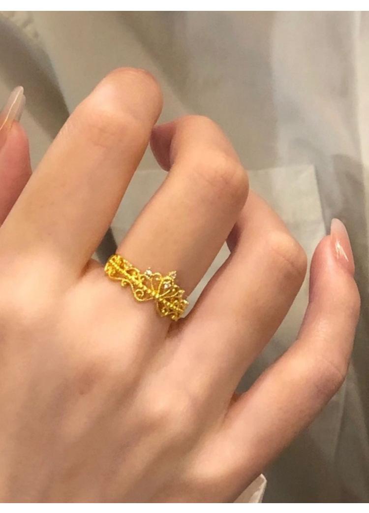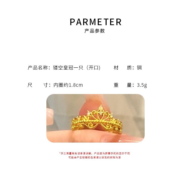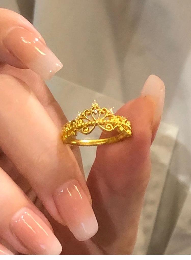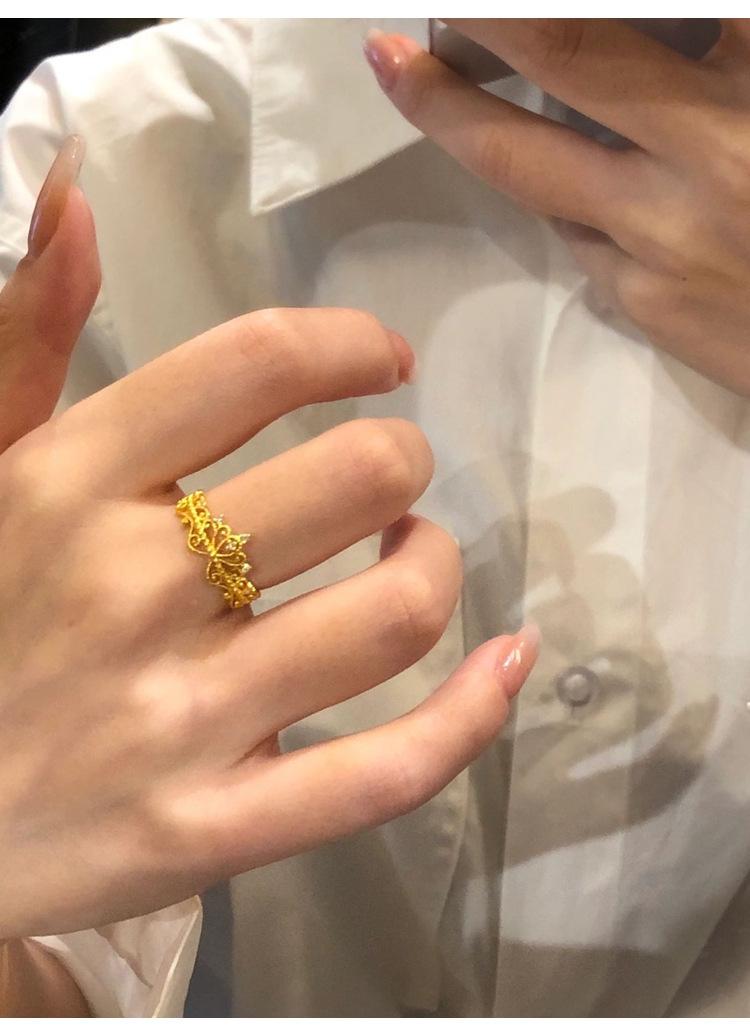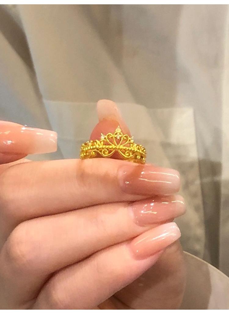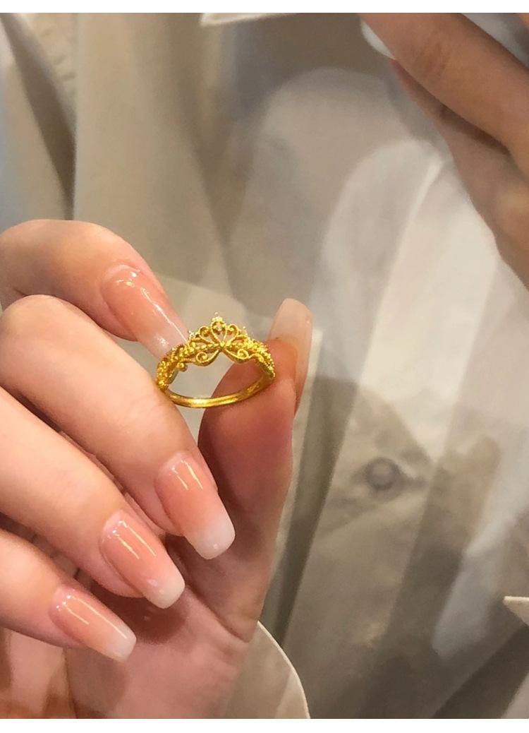 Anillo Corona de Diamantes Pequeños Dorados Estilo Francés para Mujer Anillo de Princesa de Lujo Ligero Diseño Nicho Zircón Ajustable Anillo para Dedo de Dieta