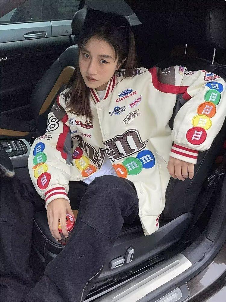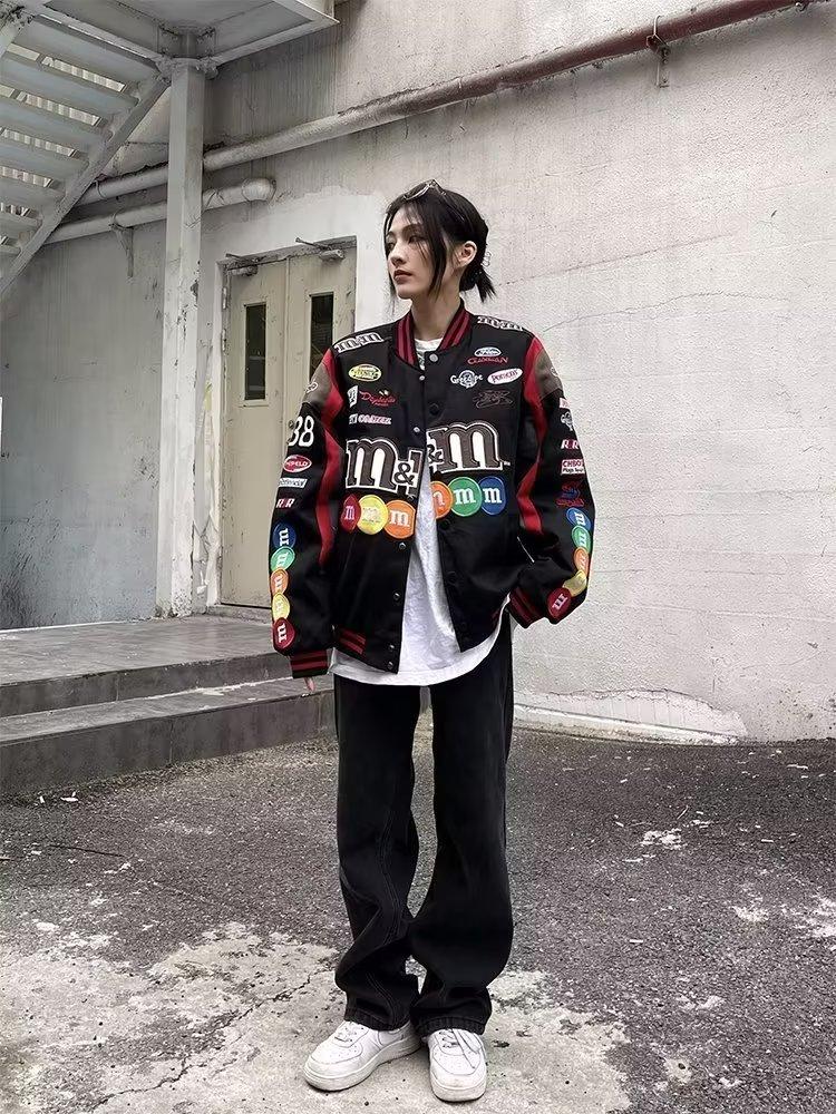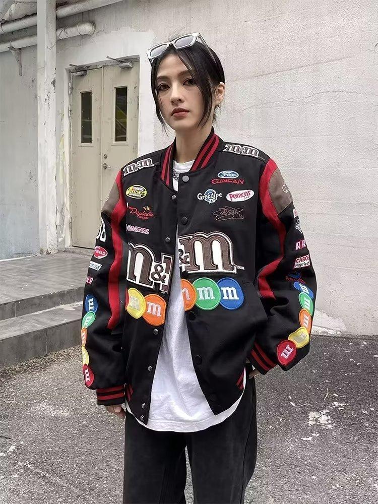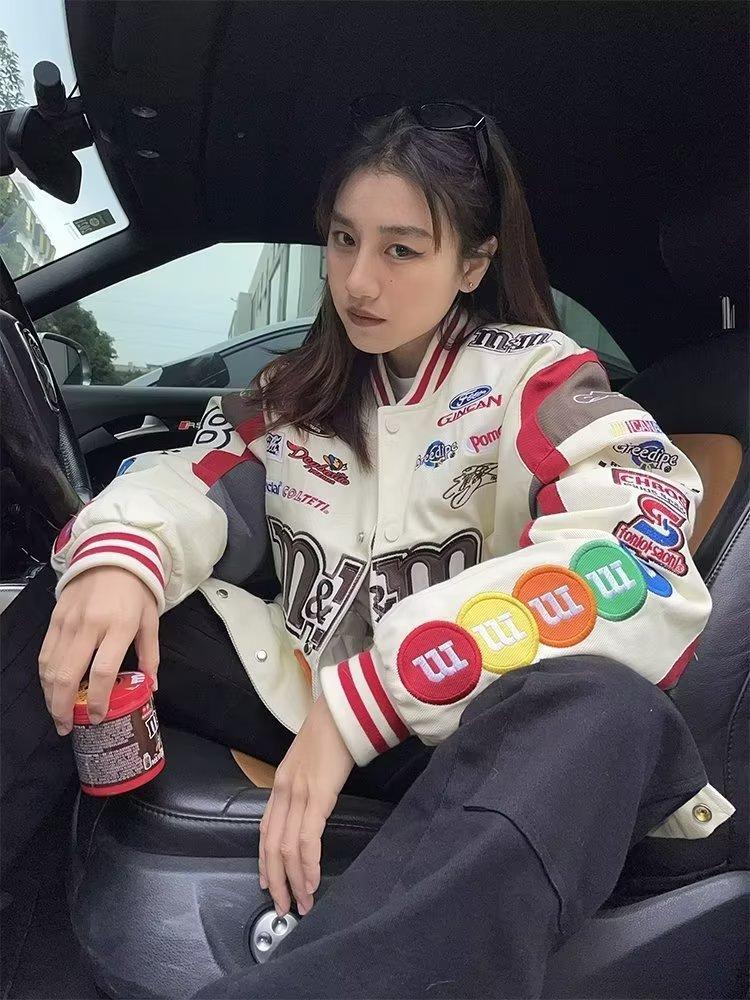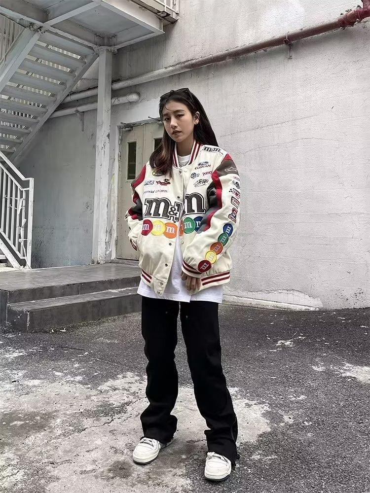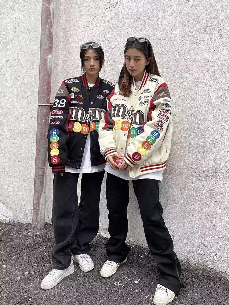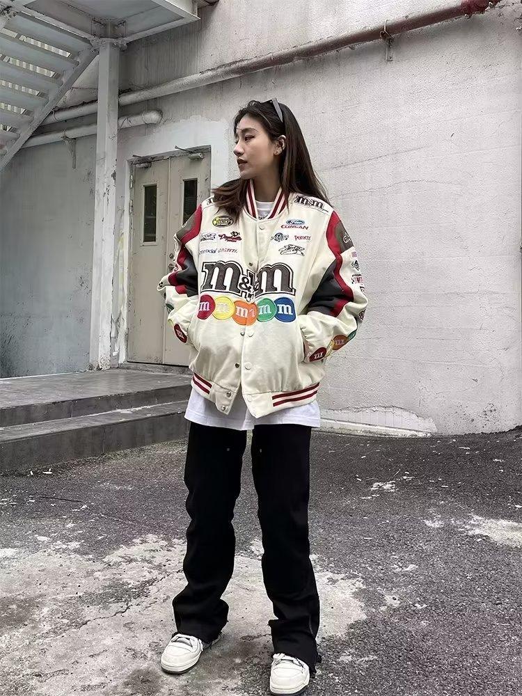 Chaqueta de béisbol con costuras para mujer, nueva primavera y otoño 2023, estilo retro americano, chaqueta bordada de moda para parejas.