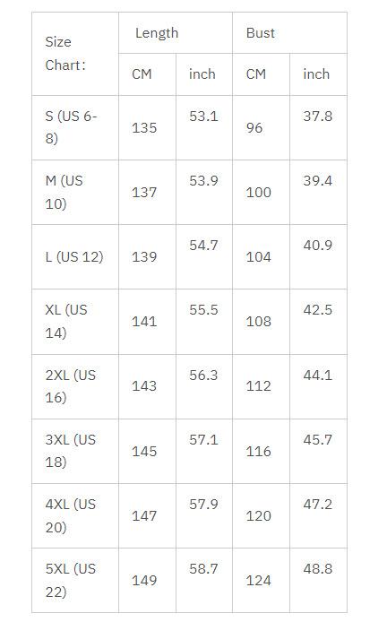 S, M, L, XL, 2XL, 3XL, 4XL, 5XL