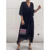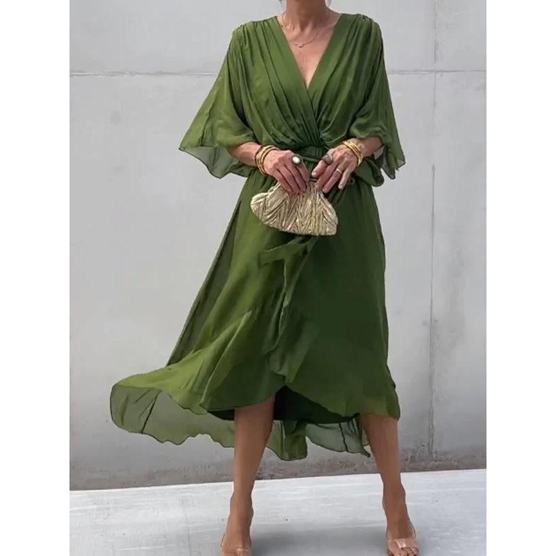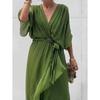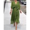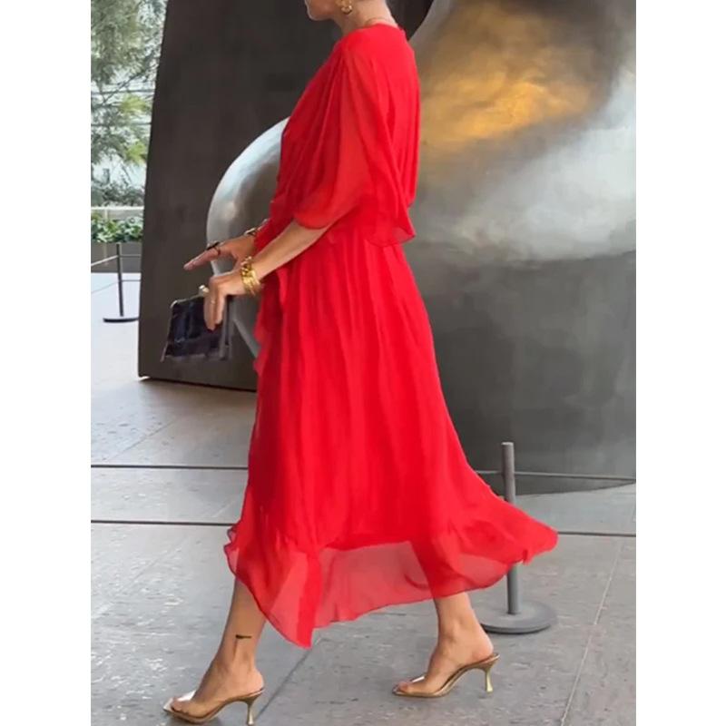 2025 Nuevo Vestido Europeo y Americano para Mujer Transfronterizo Amazon Color Sólido con Cordones Manga Murciélago Vestido Irregular Talla Grande