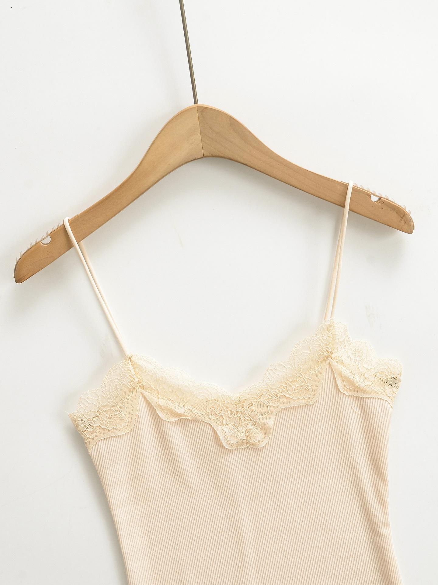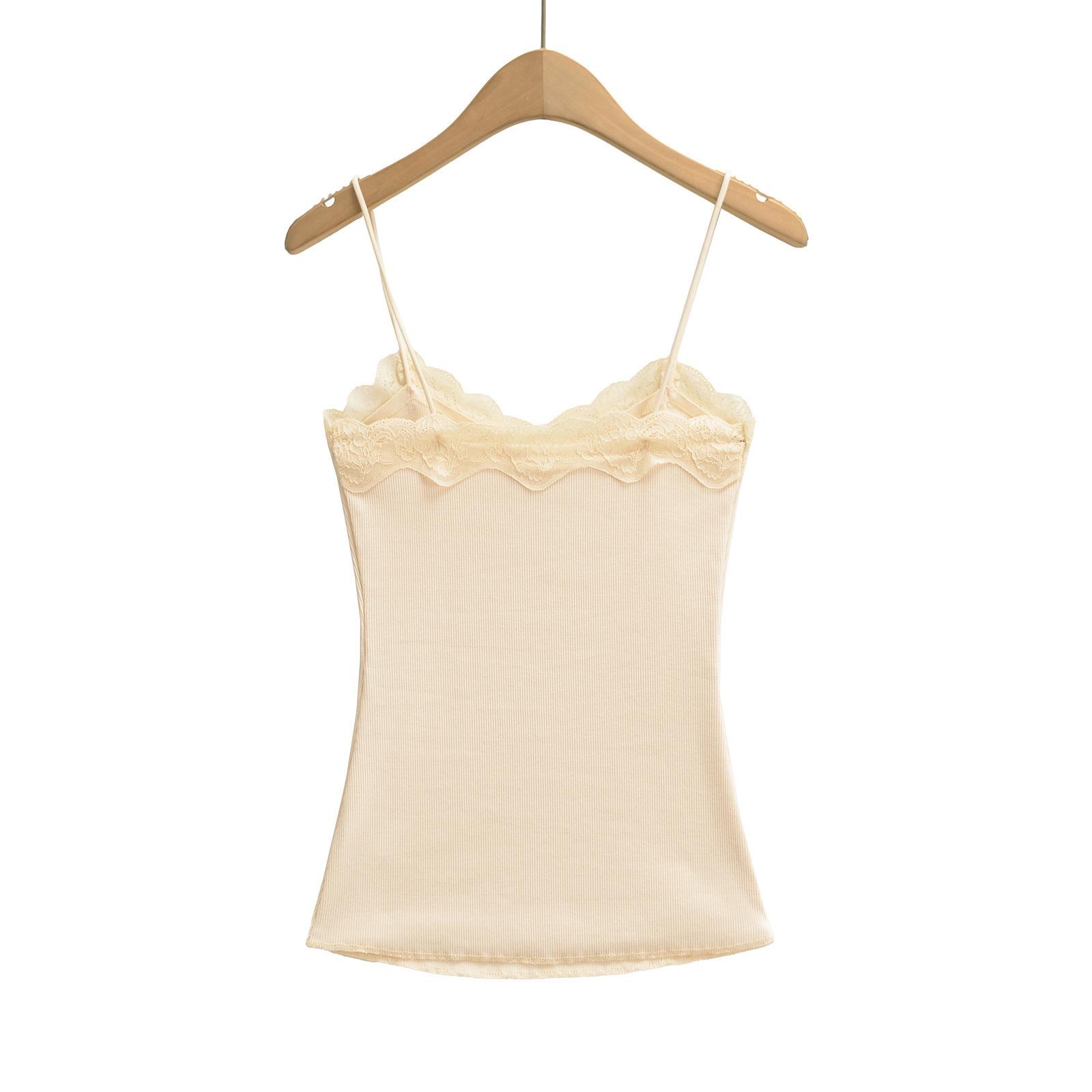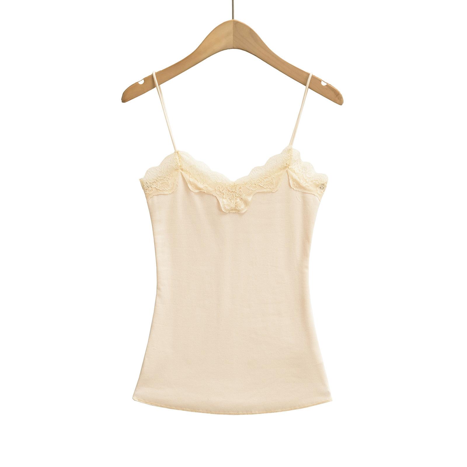 Diseño Sensual Nicho Onda Encaje Puntada Cuello en V Camisola de Mujer Estilo Deseo Puro Ajustado Top Interior Chaleco