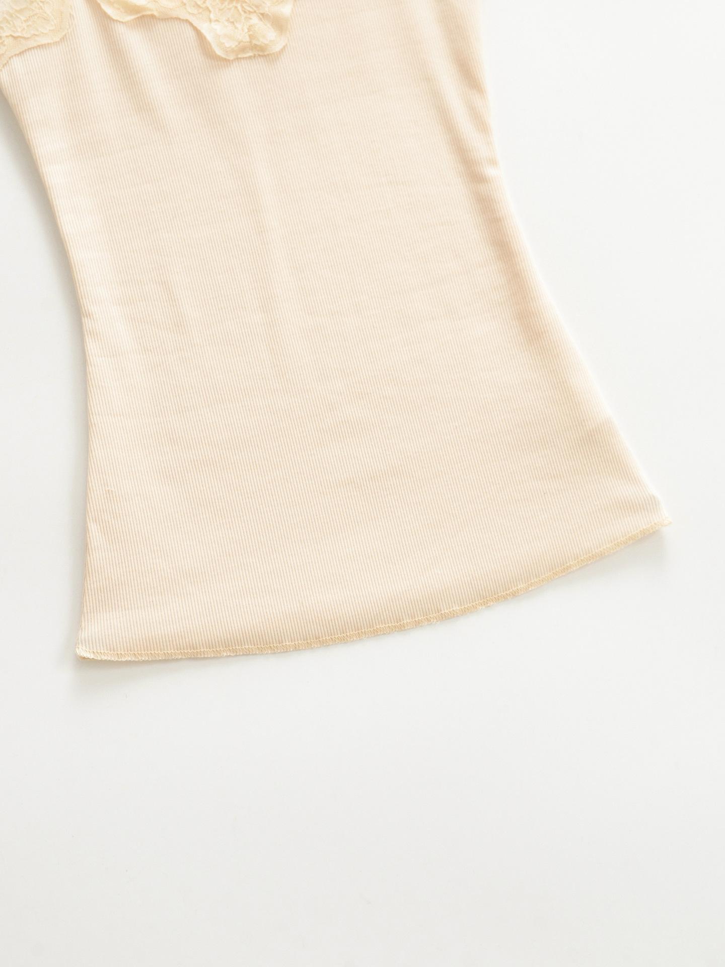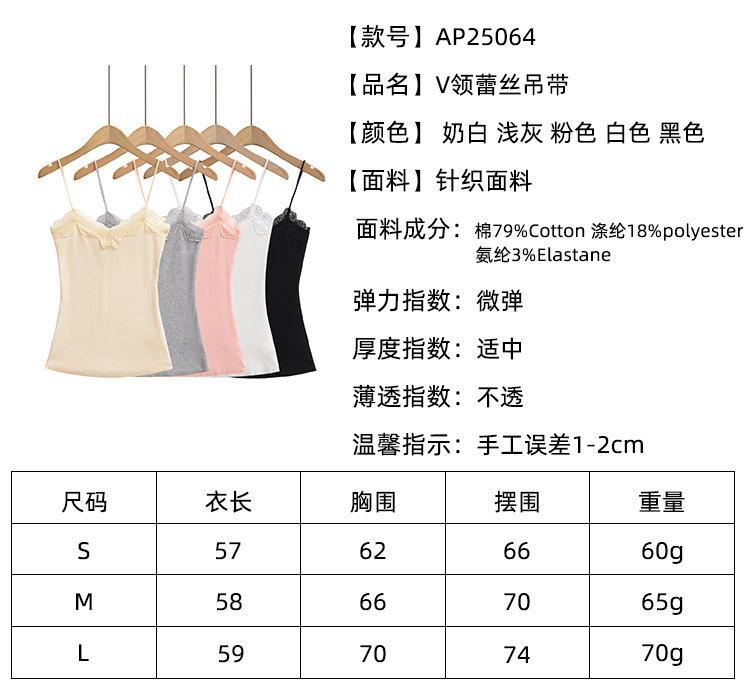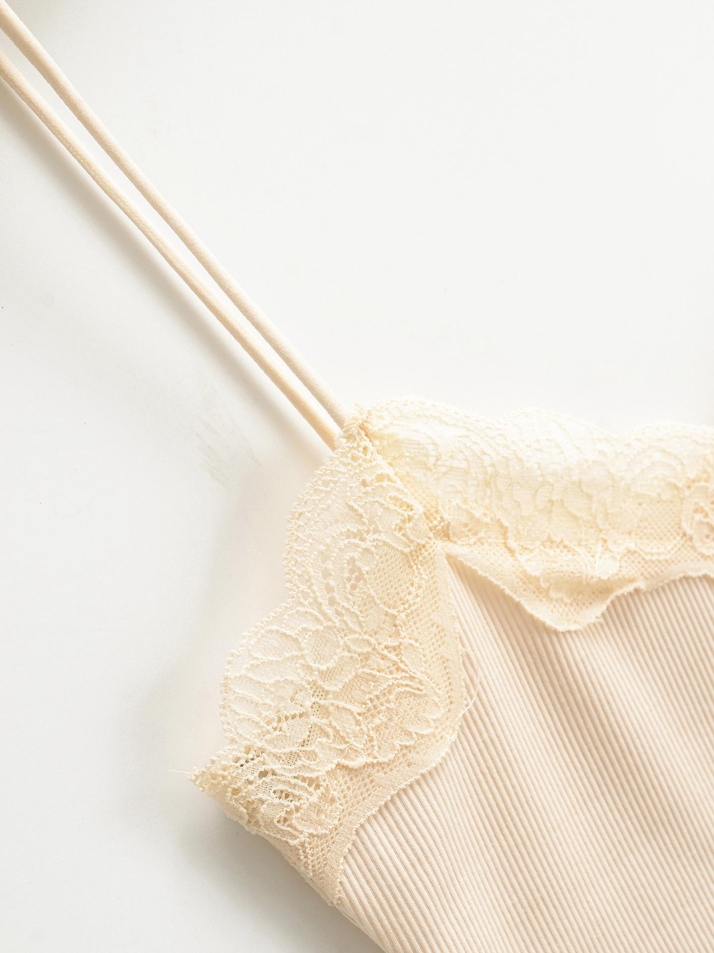 Diseño Sensual Nicho Onda Encaje Puntada Cuello en V Camisola de Mujer Estilo Deseo Puro Ajustado Top Interior Chaleco