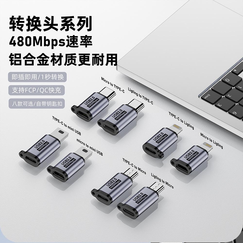 Adaptador V8 mini USB a cable de datos tipo C Adaptador V3 a Lightning tipo T micro