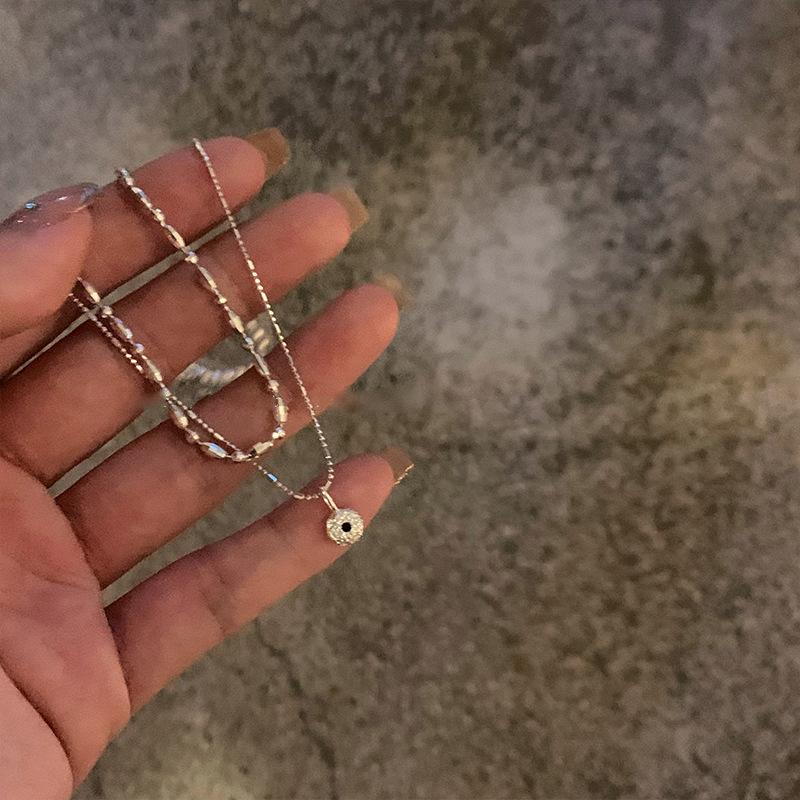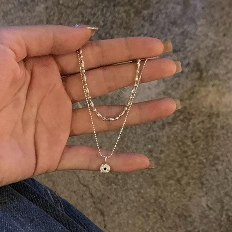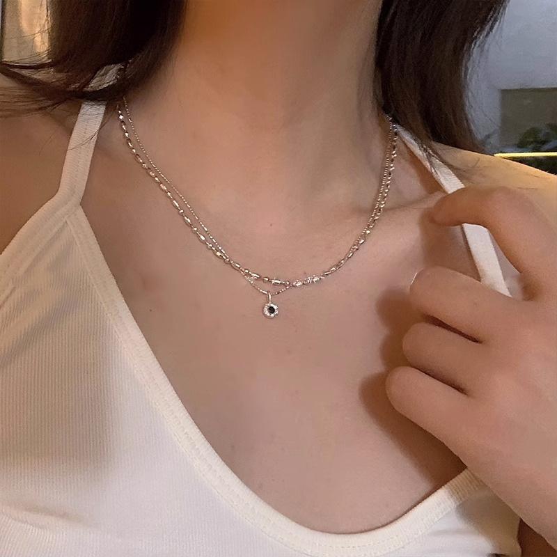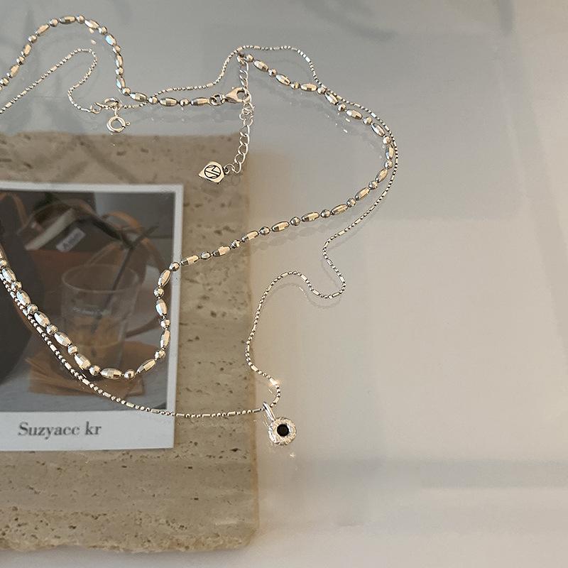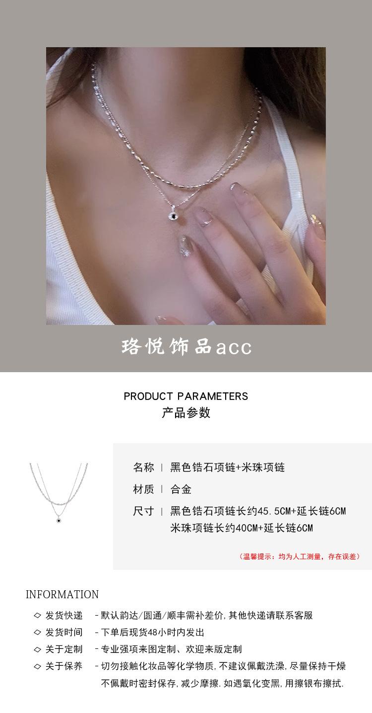 Black zircon necklace, Rice bead necklace, Black zircon necklace + Rice bead necklace