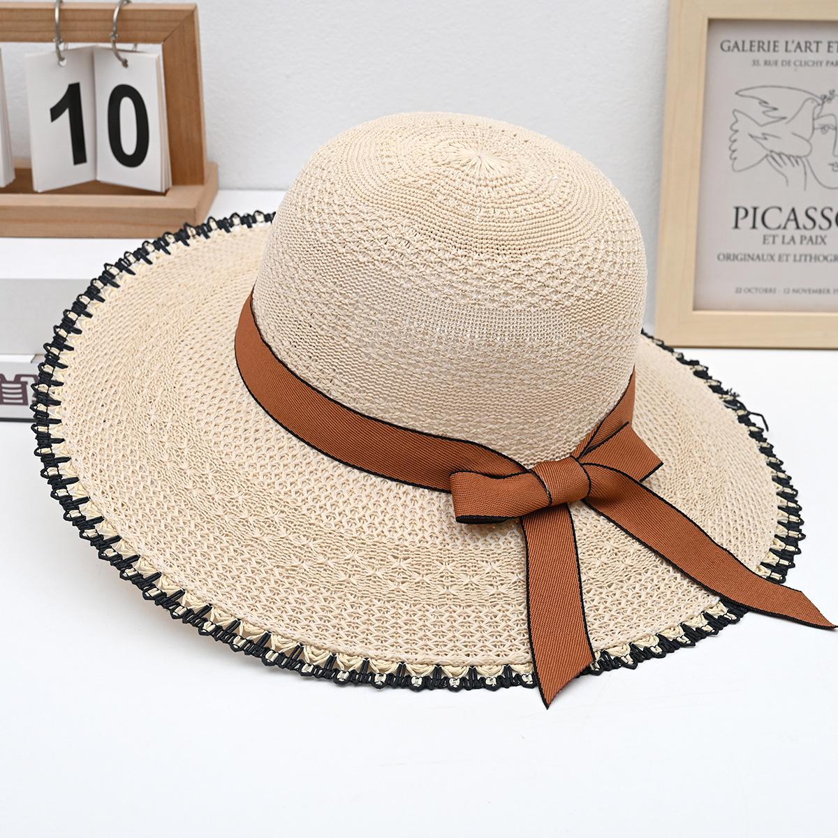Sombrero de paja de verano para mujer, nuevo sombrero de playa con ala grande y protección UV, sombrero para el sol.