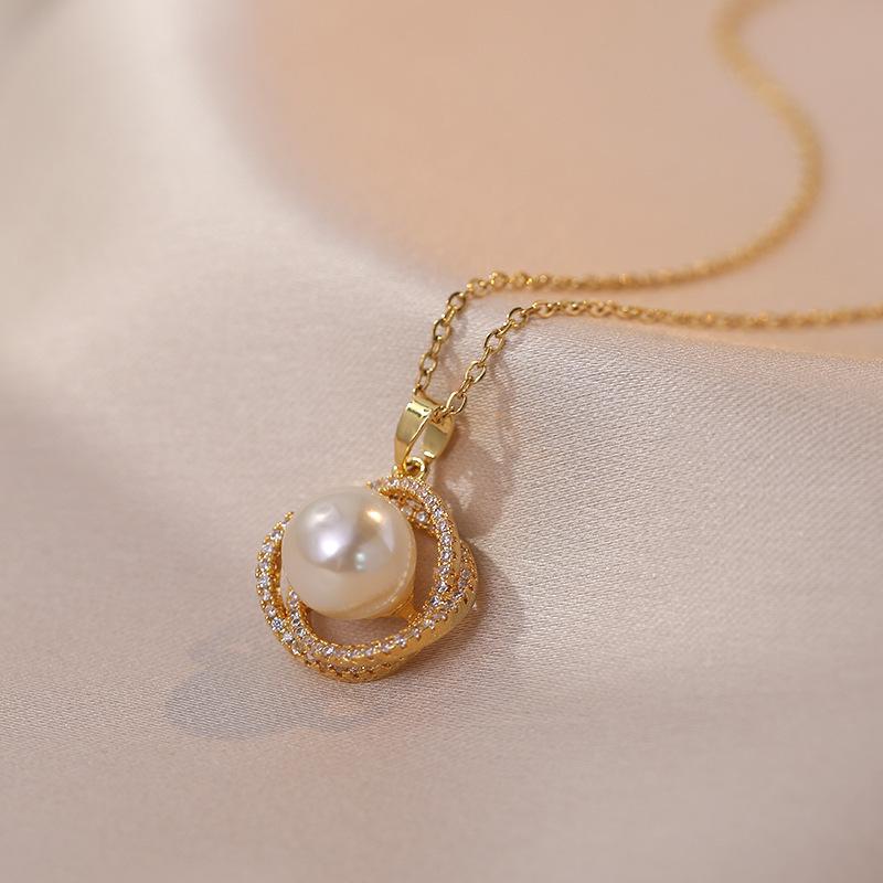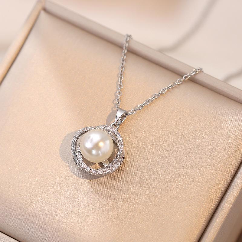 Collar para Mujer Acero de Titanio Zircón Perla Rodeada Diseño Nicho Moda Simple Temperamento Viajero Cadena Clavícula Collar