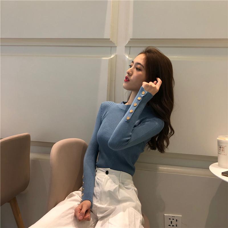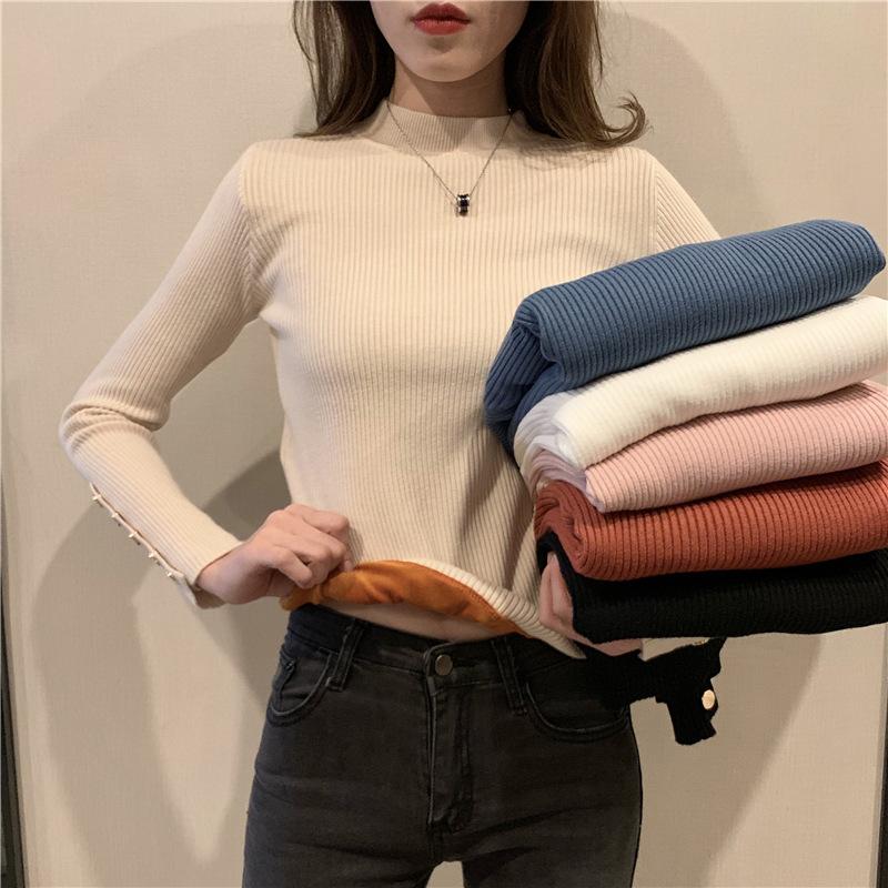 Nueva Camiseta Básica de Terciopelo Grueso para Otoño e Invierno para Mujer 2025 Color Puro Nuevo Cálido Interior Medio Cuello Alto Suéter Tejido