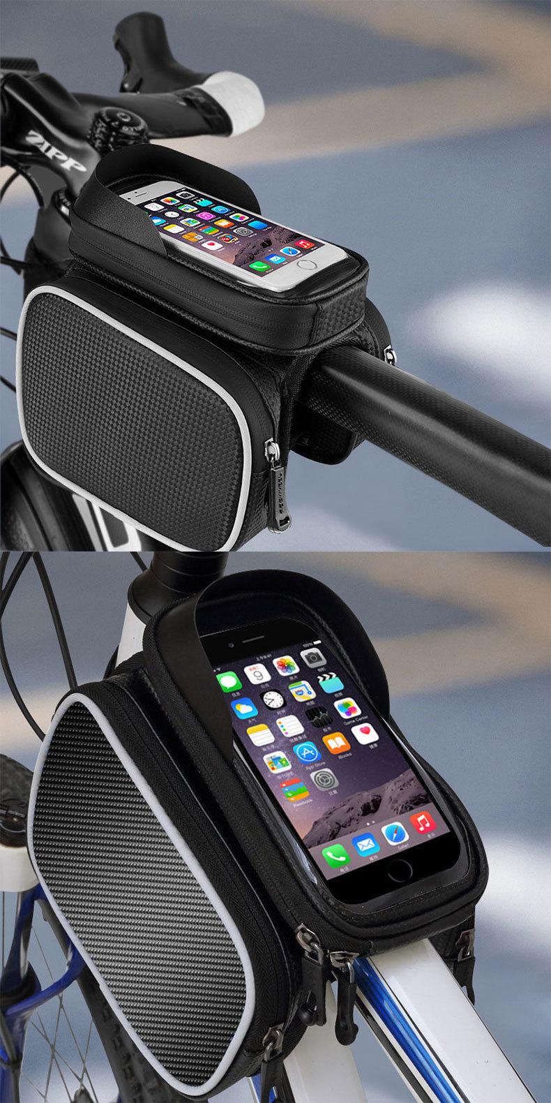 Bolsa de bicicleta de 6,2 pulgadas, impermeable, con pantalla táctil para teléfono móvil, para la parte delantera del manillar, accesorios para equipo de ciclismo de montaña, directa de fábrica