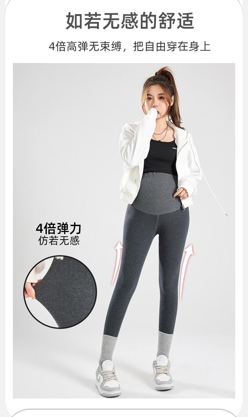 Pantalones de embarazada, atuendo de primavera y otoño 2024, leggings de embarazada con forro polar, pantalones abdominales gruesos, vestido de otoño para embarazadas.