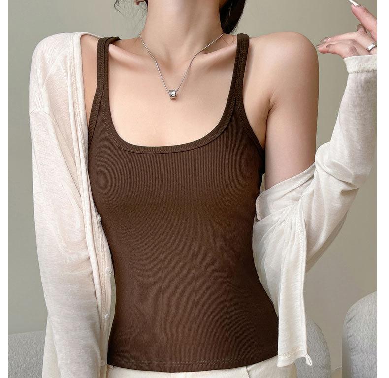 Camisola de Mujer Primavera y Verano Interior 2025 Nuevo Sexy Tirante Fino Sin Mangas Top Básico para Usar Exterior