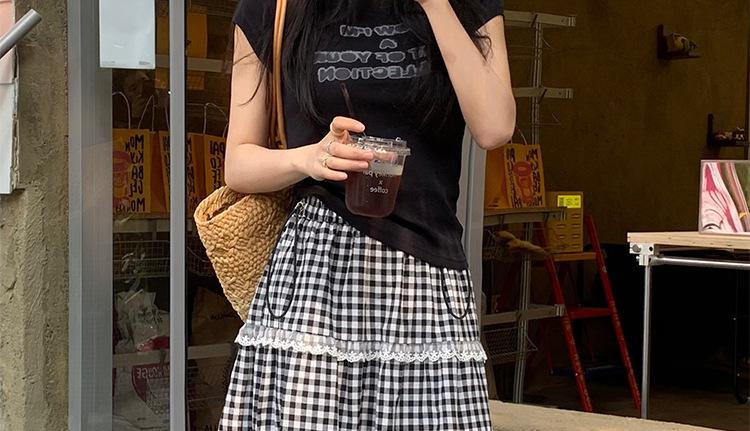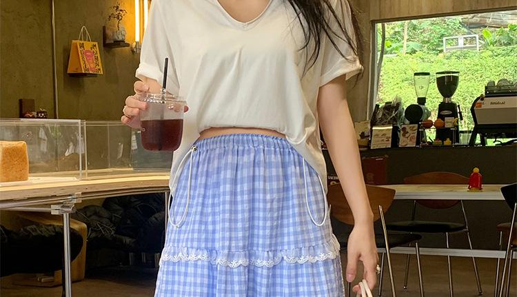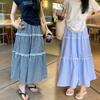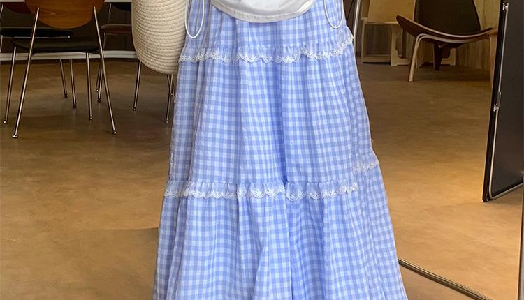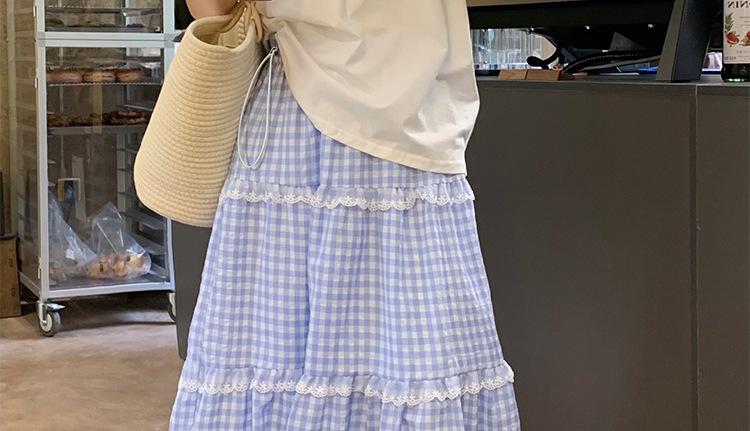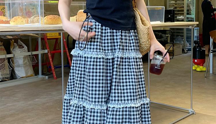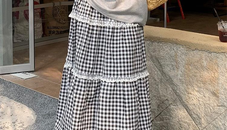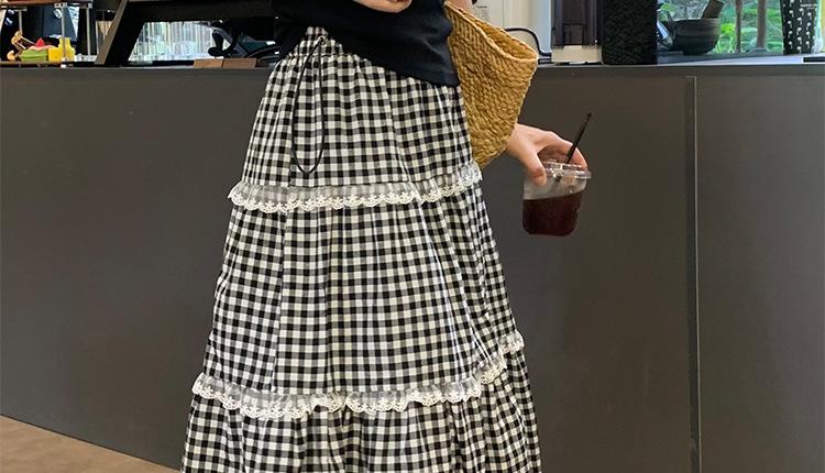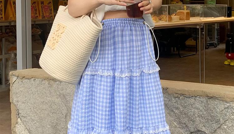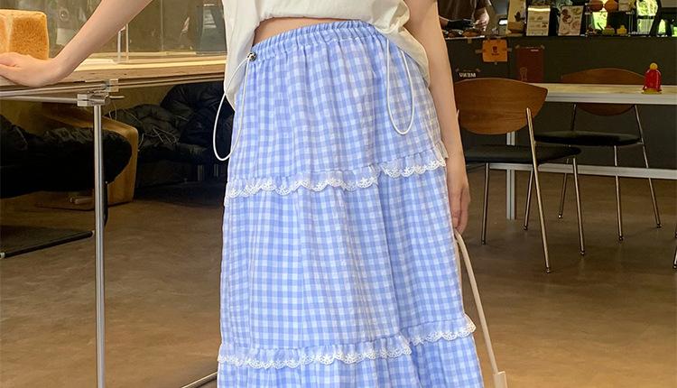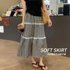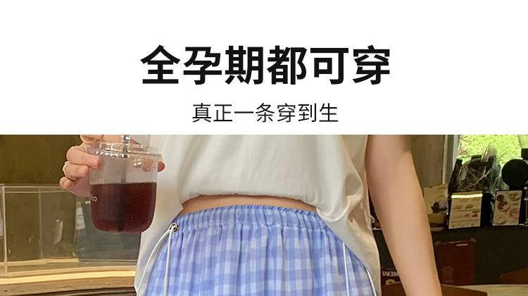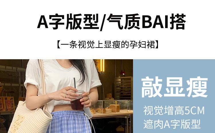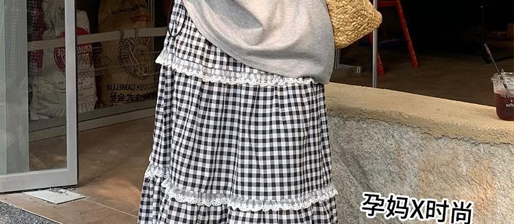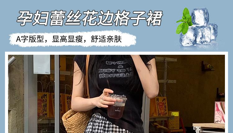 En stock Maternidad Verano Nueva Burbuja Cuadros Falda Casual Adelgazante Encaje Mediados de Longitud Grande Swing A-line Mujeres Embarazadas Paraguas