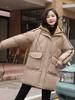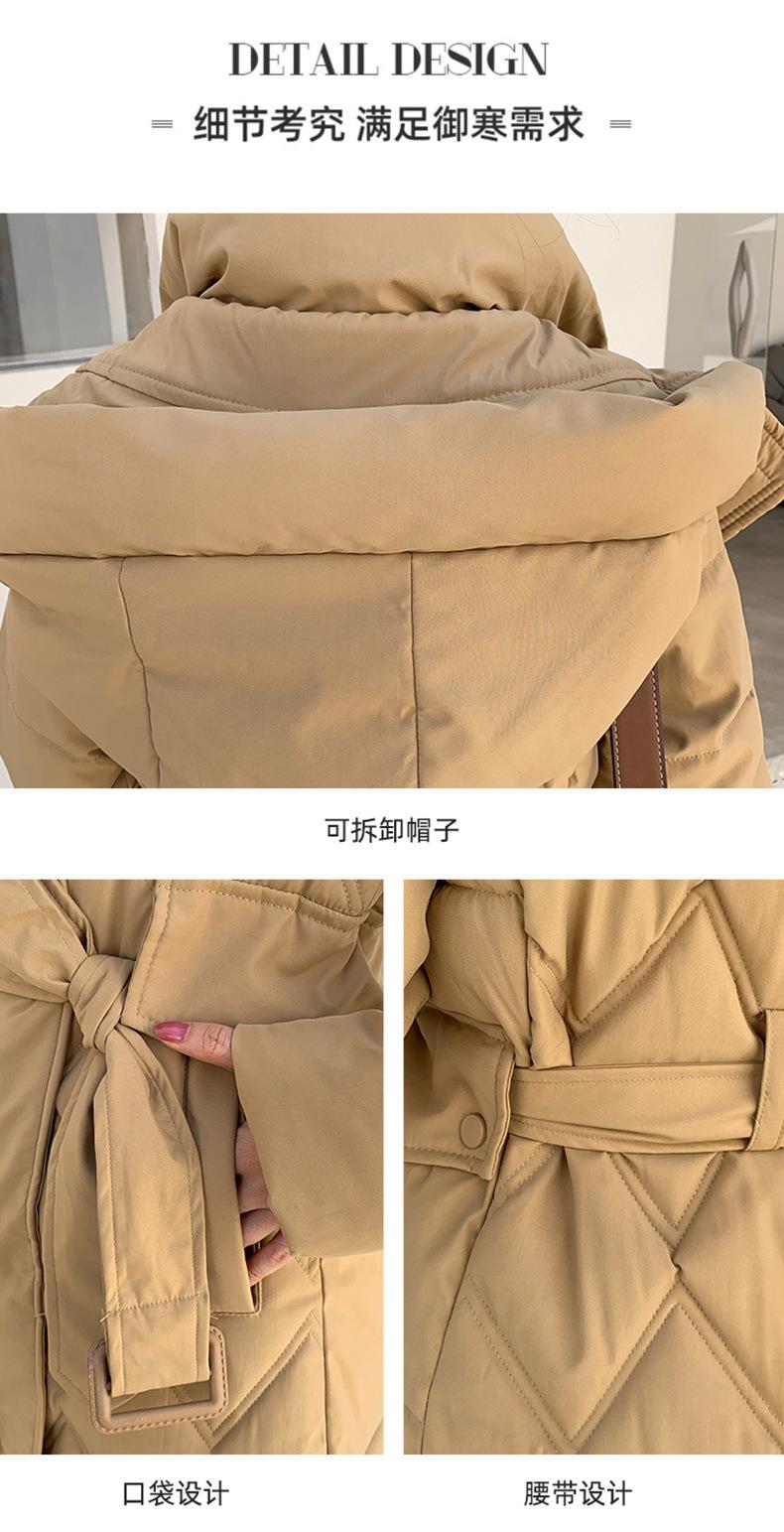 Abrigo de Algodón para Mujer de Largo Medio 2025 Nuevo con Capucha Removible Invierno Engrosado Ajustado con Cinturón Algodón Abrigo Moderno