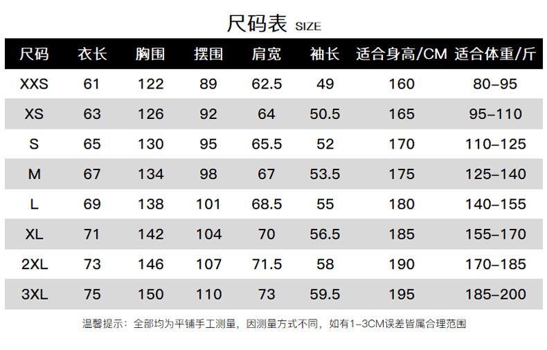 XXS, XS, S, M, L, XL, 2XL, 3XL