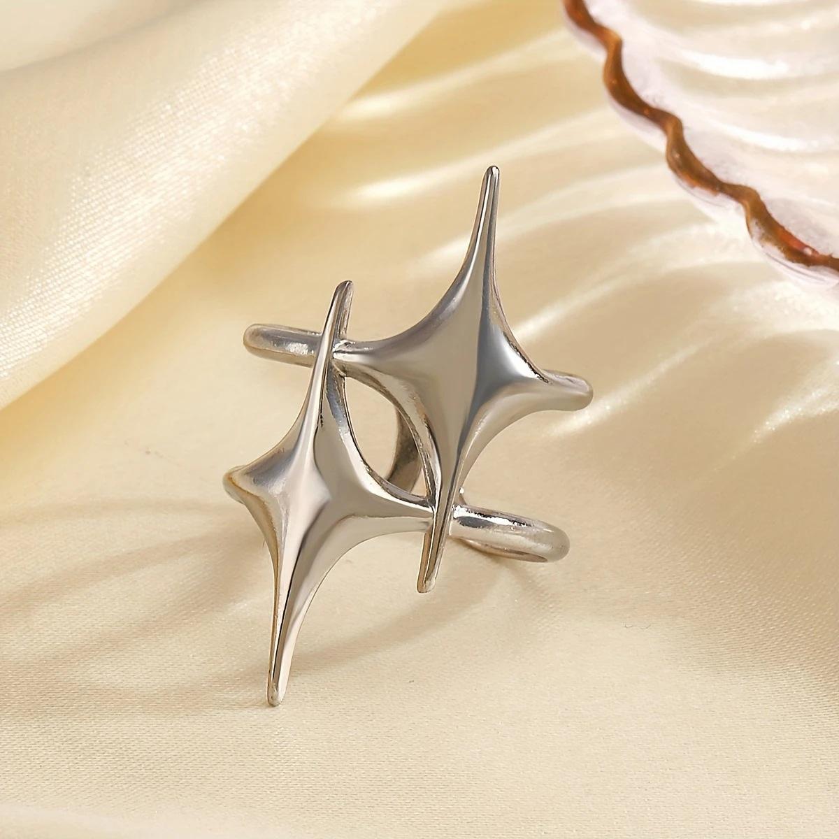 Anillo abierto de acero inoxidable con forma de estrella para mujer, estilo hip hop, ajustable, de oro de 18 quilates, estilo europeo y americano, joyería de verano 2025.