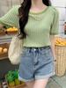 Camiseta corta de mujer con diseño de bordado Love Sense Niche de verano de punto de seda fina de hielo, camiseta de manga corta, cintura alta, moda