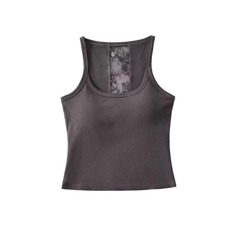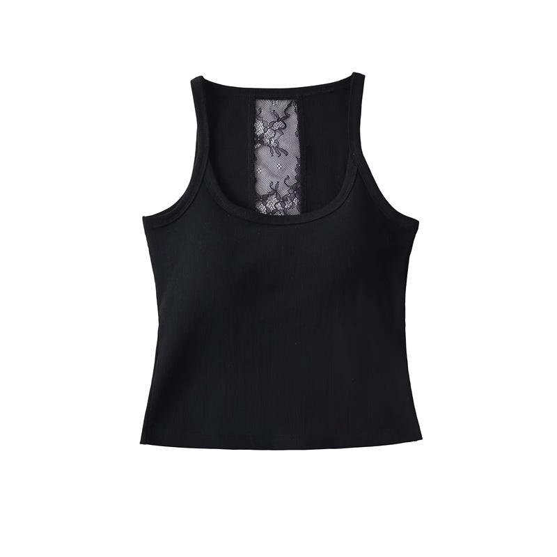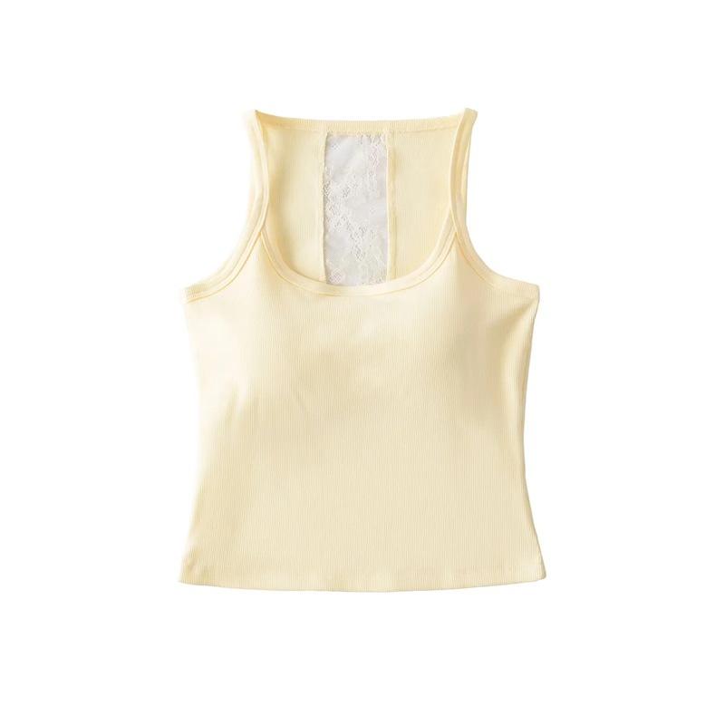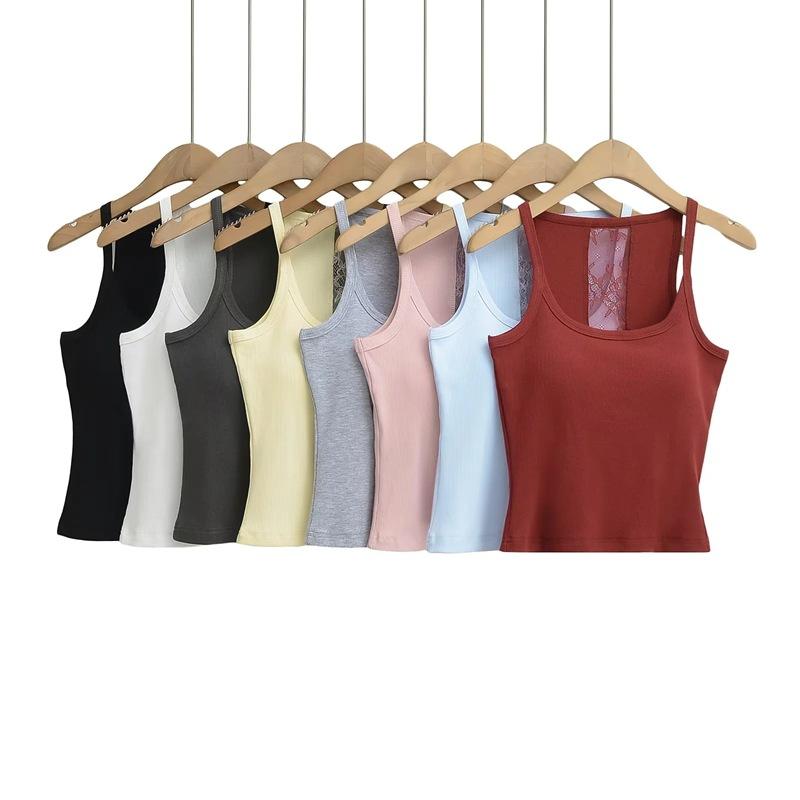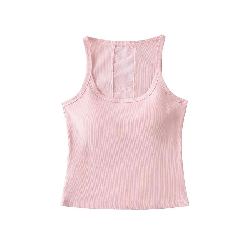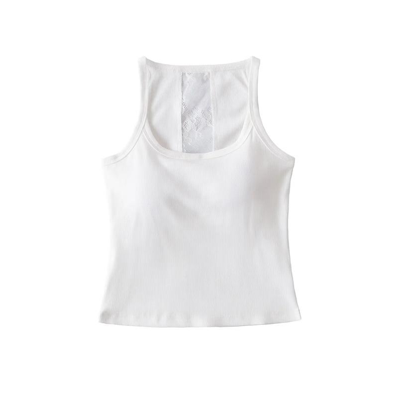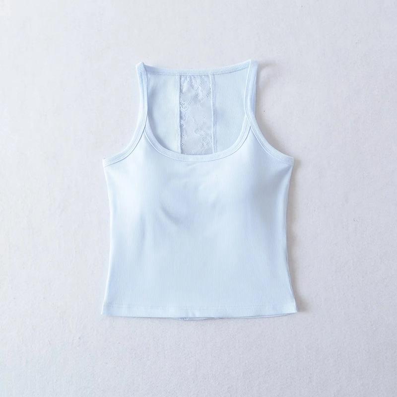 Estilo Americano Primavera y Verano Chica Caliente con Almohadilla en el Pecho Camisola Sexy de Encaje sin Espalda Ropa Exterior Interior Top Slim de Alta Elasticidad