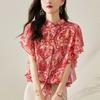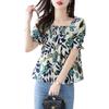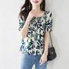 Camisa de gasa con cuello cuadrado, estilo coreano, corta, holgada, con mangas cortas y estampado floral, para mujer, verano 2025