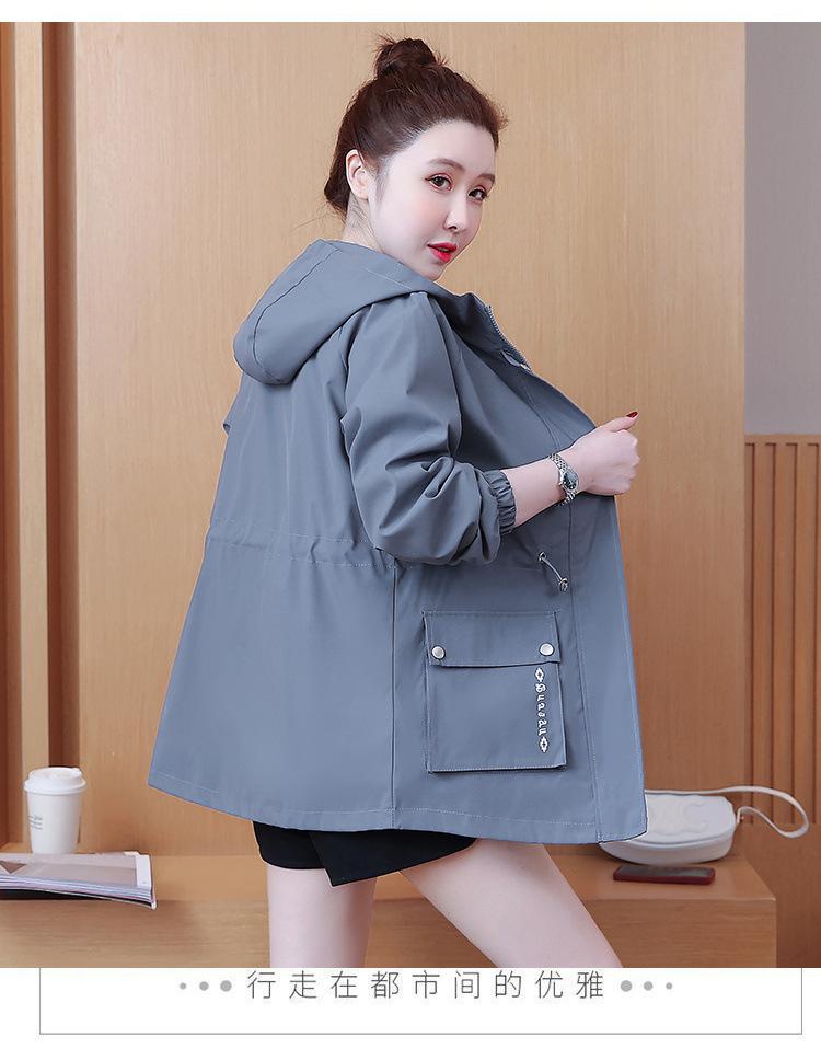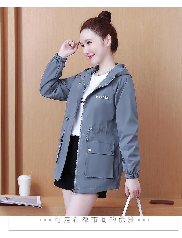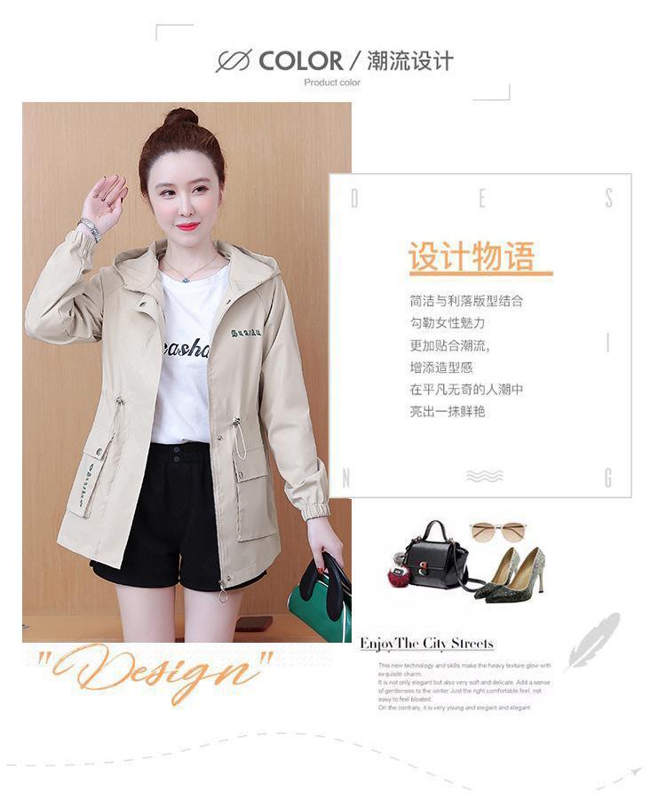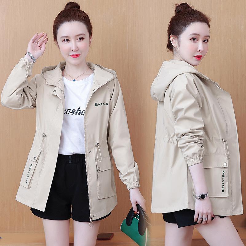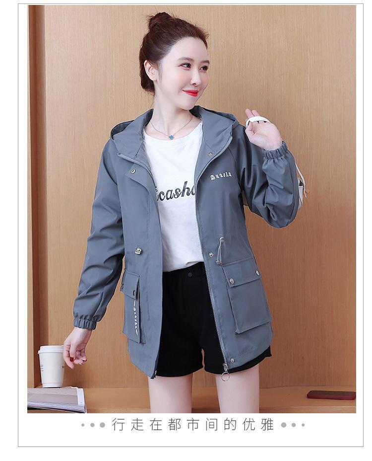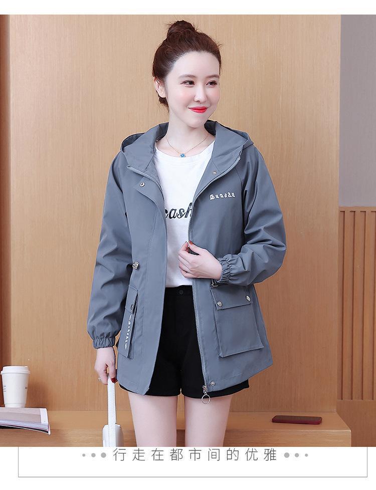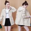 Chaqueta cortavientos para mujer, primavera y otoño 2024, estilo coreano, holgada, estilo occidental, con cintura pequeña, adelgazante, de longitud media, con capucha, a la moda.